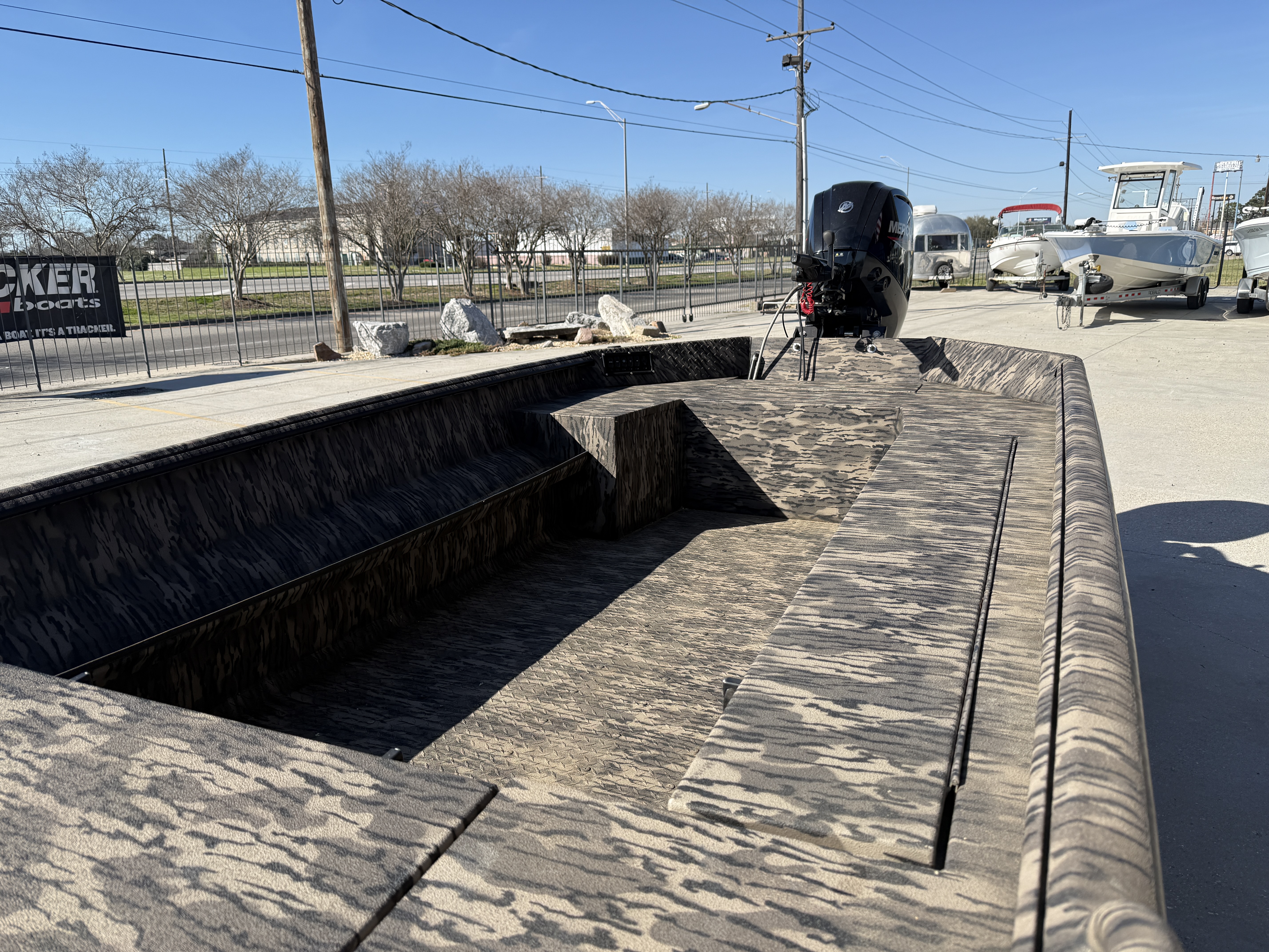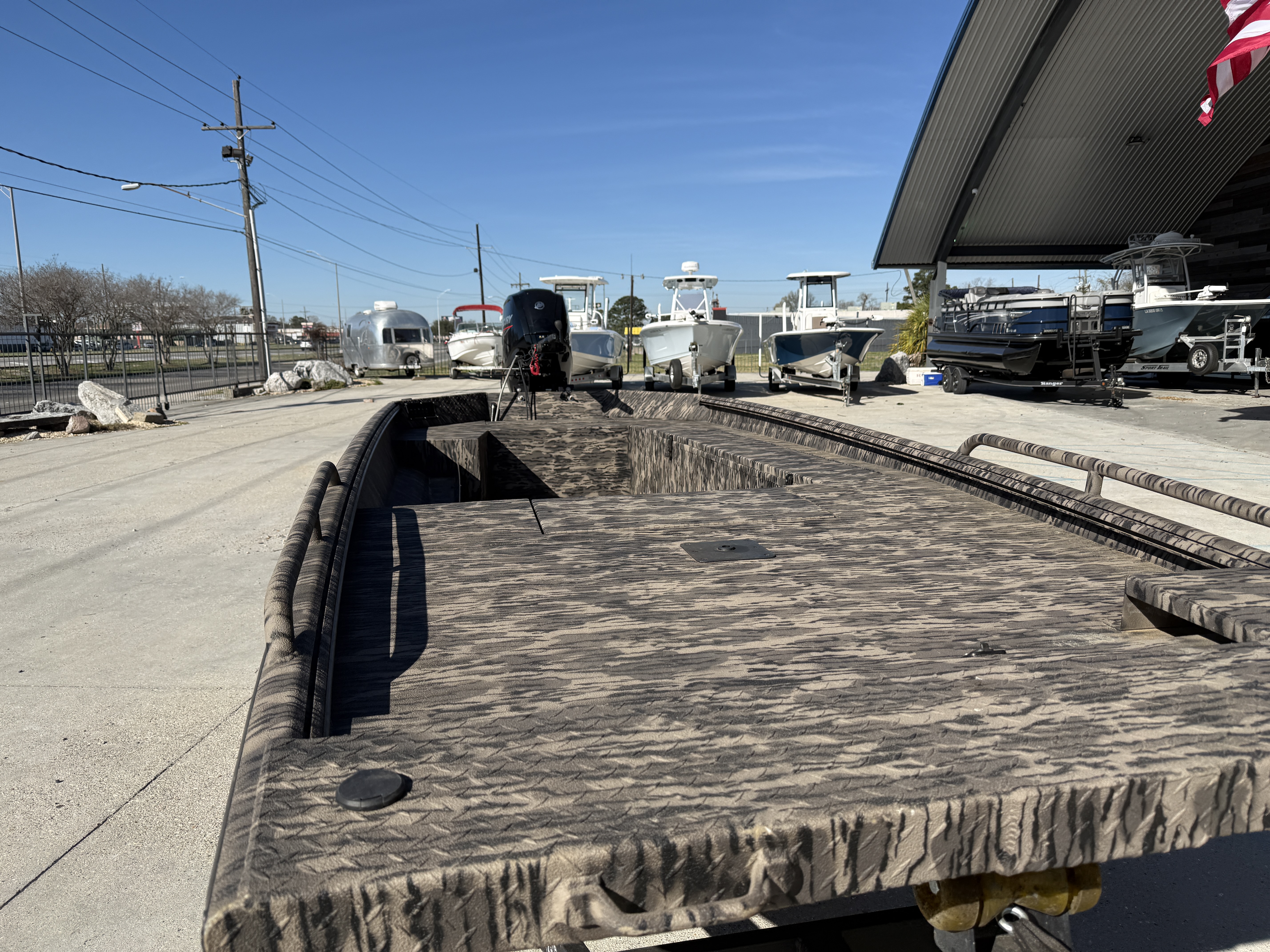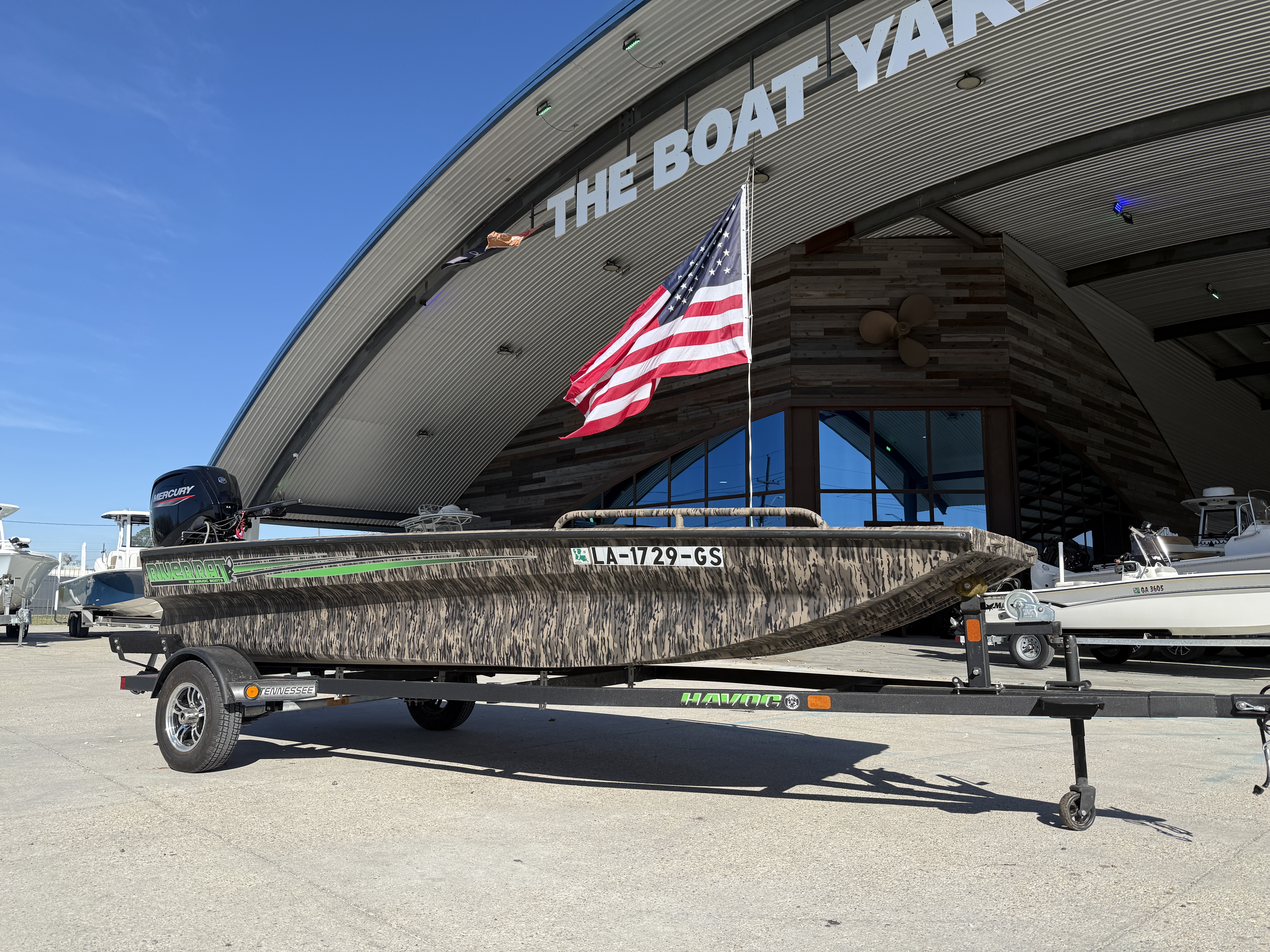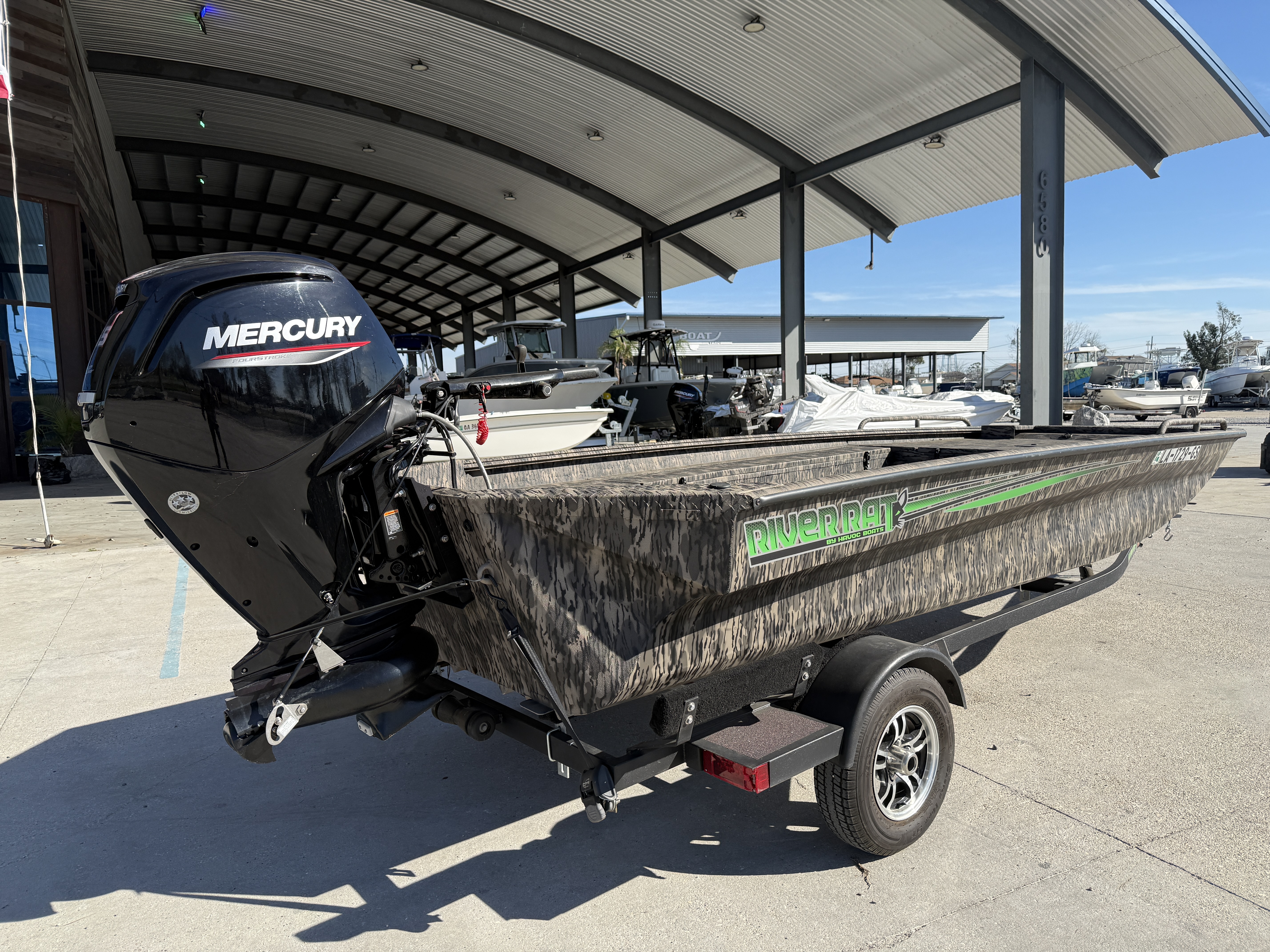 The River Rat is another game changer in the Havoc Boats lineup. It’s our first flat nose, flat bottom model built for a jet motor as well as a prop motor. This heavy-duty hull is built for rocky bottom rivers and can handle larger motors. As you would expect, we’ve considered every detail when it comes to strength and performance. The foundation of the FRR includes our I-Beam longitudinal ribs for superior support between the keels, diamond-plate aluminum floor, and the overbuilt design goes all the way up to the heavy duty T-Lock gunnel rails. The River Rat has been outperforming the competition in jet boat country for years! Length Overall: 204 in. (5200 mm)