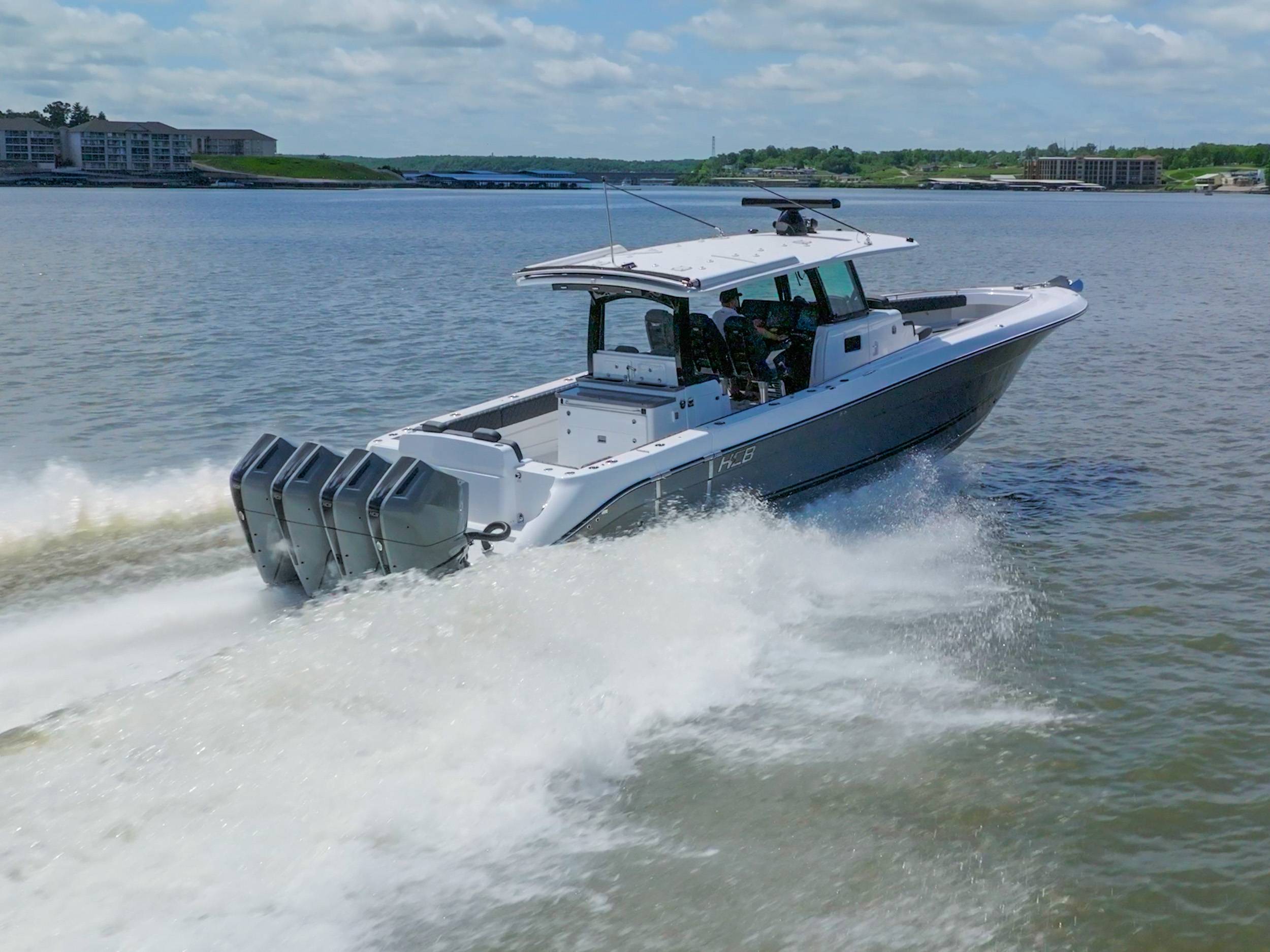 Experience Luxury on Water with the 2024 HCB 42 Lujo Center Console Yacht Description: Now, rule the waterways with our all-new luxurious 2024 HCB 42 Lujo Center Console Yacht. Built for ultimate performance without compromising luxury, this yacht is innovation and elegance personified. The 2024 HCB 42 Lujo is rigged with top-tech advancements, boasting a sleek design that highlights its strong and sturdy structure. Interiors: The spacious indoors epitomize lavish living with an intuitive layout. It features plush seating, a well-appointed helm, and stunning finishes. The yacht defines luxury with its excellent grade fittings and veneers, on-board entertainment facilities, and fully-equipped modern galley (kitchen). Exteriors: Externally, the HCB 42 Lujo is a beauty designed to turn heads. The neat lines, elegant profile, and dynamic curves give it a distinctive look. The yacht's broad beam provides large deck spaces, perfect for relaxation and entertainment, including a swim platform and ample storage for your aquatic gear. Performance: As for performance, it's powered by a reliable and powerful engine, ensuring solid fast cruising and reliable long-range capabilities. The yacht’s hull design delivers a comfortable and stable ride, guaranteeing safe sail even in choppy waters. Options List · Air Conditioning 12 Volt with inverter · Garmin Triple Screens - (2) Outer 12" & (1) Center 16", with GSD · Seating - Transom Foldaway with Cushion and Backrest · Baitwell - Dual, 45 Gallon Each, Pressurized w/Sea Chests and 26 Sounder, Dual 1kw Garmin Airmar B175H Hi /Low Chirp · Custom Audio Stereo System - Garmin Fusion Apollo Head Unit, Sirius XM – Equiped with the following speakers throughout the vessel 6.5" Speakers, - 7.7 " Speakers, 8.8" Speakers, Tweeters – Subwoofers and custom amplifiers. · (2) 2500 GPH Hooker Electric High Flow Primary Pumps and (2) Transducers · 2500 GPH Hooker Electric Variable Speed Back Up Pumps per · Auto Pilot – Mercury Joystick control, Autopilot and Mercury Sky hook. · Baitwell, fully insulated · Garmin/Icon VHF Radio · Bow Rails - Stainless Steel · Grill - Stainless Steel, Removable with Storage Cover · Summer Kitchen - Corian Counter Top, Sink, Storage, 12v volt S/S Refrigerator · Bow Thruster with Helm controls · Forward Gunwale Mounted Coolers - Frigid Rigid, (1) Port, (1) · Cabin - Enclosed Head Compartment with Ceramic Macerating Starboard side, Electric Flush Toilet with pump out and Pull Up Shower. · Television in Cabin - 24" · Hard Top - Over Sized with Custom Painted Frame, Faired · Transom Seat Coolers with Cushion - Port/Starboard, Frigid · Cabin with Galley Sink, 12-volt Refrigerator, Settee Table that Converts to Berth That Sleeps (2) Lights & Handrails throughout · Rigid full insulated , 38 Quart coolers · Transom Door with Heavy Duty Latch. · Cabin - Includes Padded Wall and Ceiling Covering with Sky · Hull Color – Custom color storm Gray Gelcoat – with boot stripe and custom paint motors · Wash Down - Fresh Water, 20’ Retractable Hose Reel, Port, Mid and · Light and 5 Port Lights · Hull Laminate - Hand Laid; Vinylester Resin; Kevlar and Carbon · Cabinetry - Premium Real Wood with Professional Grade Finish Fiber Reinforced. · Wash Down - Raw Water, 20’ Retractable Hose Reel, Starboard, · Dive Door - Starboard Side with Heavy Duty Ladder, Opens · Outdoor Shower - Integrated into Port Side Aft T-Top Mid Ship · Remote Spotlight with Dash Mounted Control · Wash Down - Raw Water, (2) Quick Connect Hose Connections, · Engines- Custom Painted to match hull · Seating - Second Row Sleigh Seat with Arm Rests and Cup holders with storage · Fish Boxes - Fully Insulated Port / Starboard Aft Cockpit, with Holders · Windlass - S/S Anchor, 300' Chain and 100' Rope · Seating Helm - Triple Captain's Chairs with Integrated Helm · Fresh Water Remote Engine Flush System Riser and Storage Below · Garmin Radar xHD2 4', 4kw Open Array · Seating - Contoured Console Front Lounger, and Power table in front bow. · Seating - Bow, U-Shaped · Power Front Table located in the bow Safety Measures: Safety on board the 2024 HCB 42 Lujo has been prioritized, with high-quality life-saving equipment. The yacht is equipped with state-of-the-art navigation and communication systems ensuring a safe and enjoyable journey. This 2024 HCB 42 Lujo Center Console Yacht is the epitome of marine craftsmanship, bringing together design, comfort, and performance in a single, stunning package. Get ready for the sailing experience of your dreams with this luxurious floating palace.