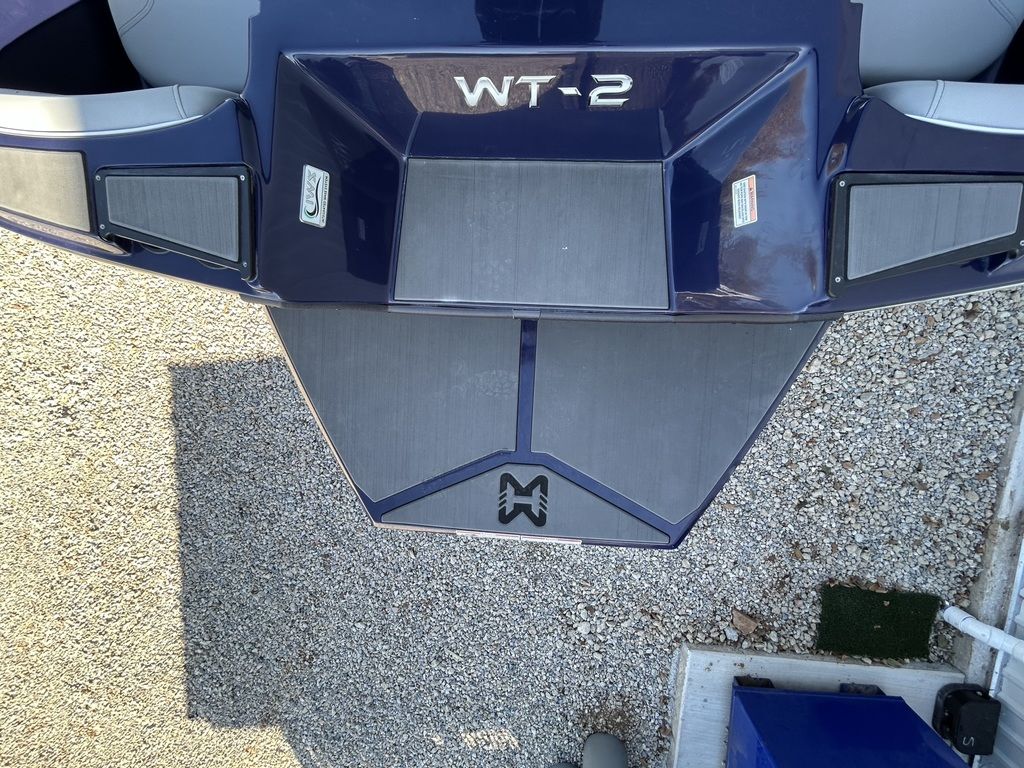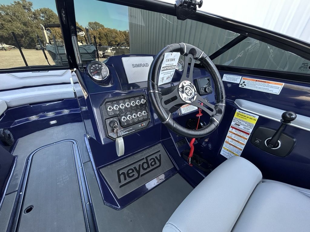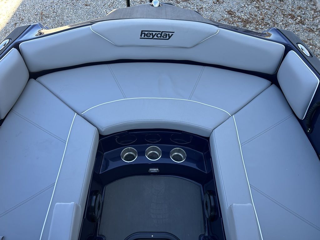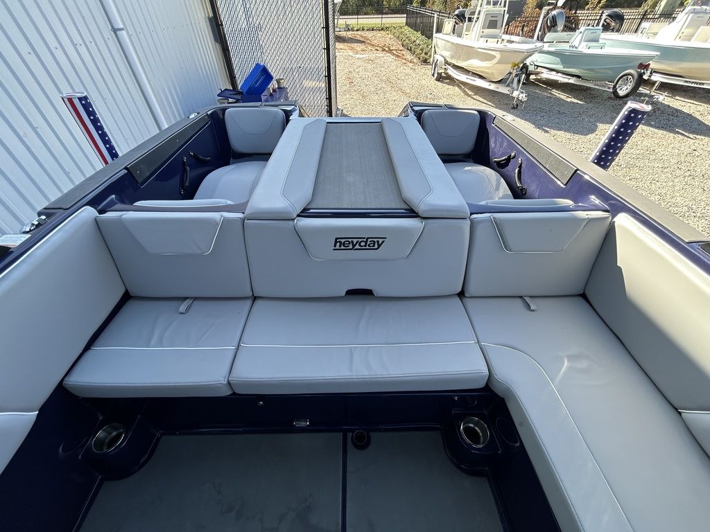 The WT-2DC offers a dual console layout with full windshield and wraparound cockpit seating. The massive bow seating area is complete with port and starboard adjustable armrests. This model features a walkthrough to the swim platform with a transom step for getting ready between rides. There’s plenty of storage thanks to a spacious ski locker and under seat base storage. And of course, it has Heyday’s signature ‘Heyday Hangout Zone’ seats that get passengers closer to the action and conceal even more storage below