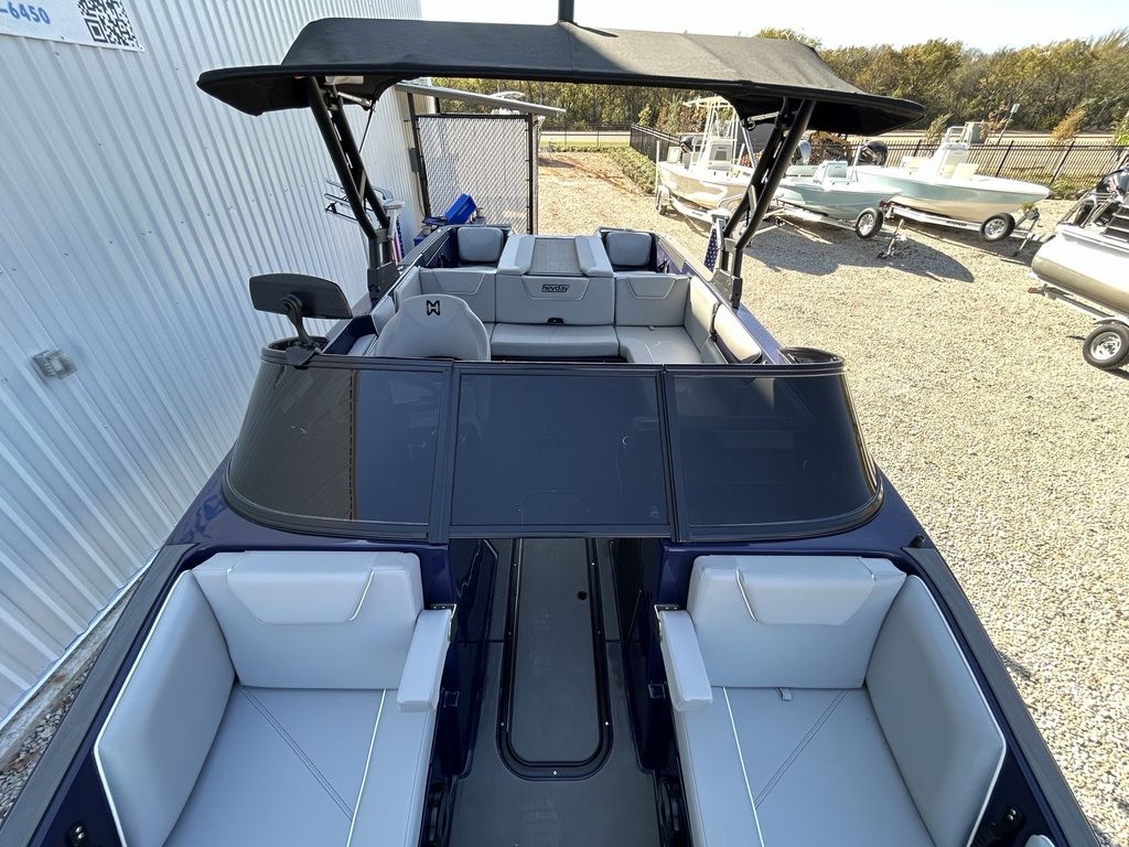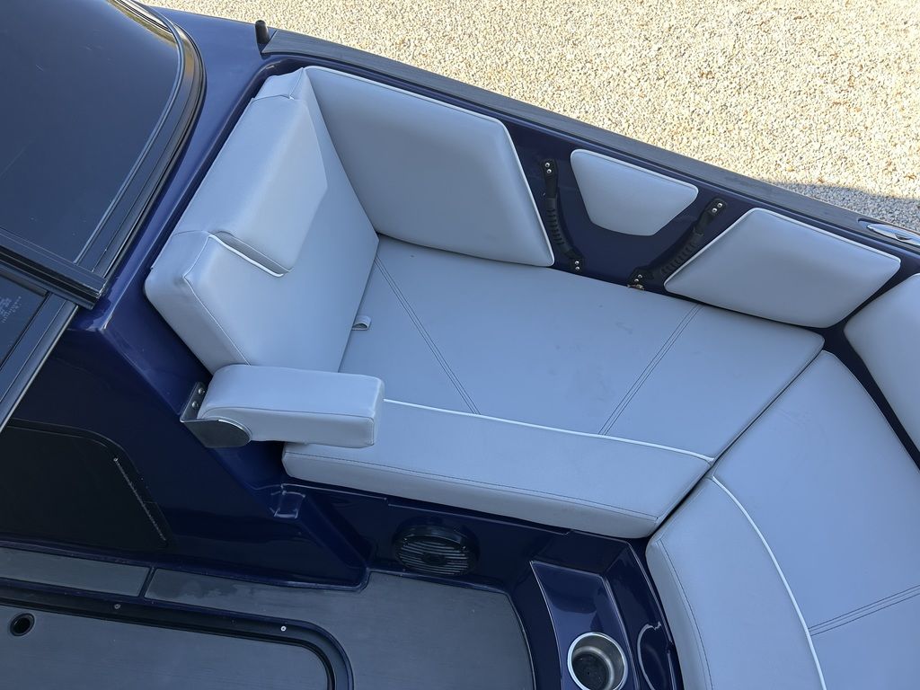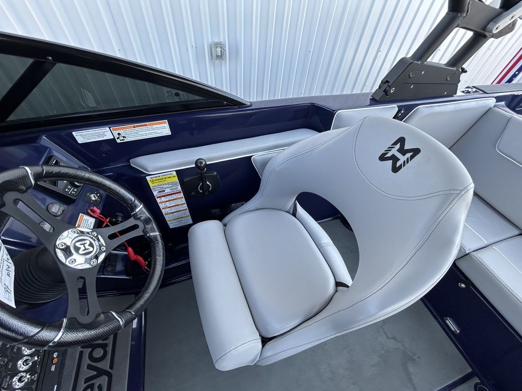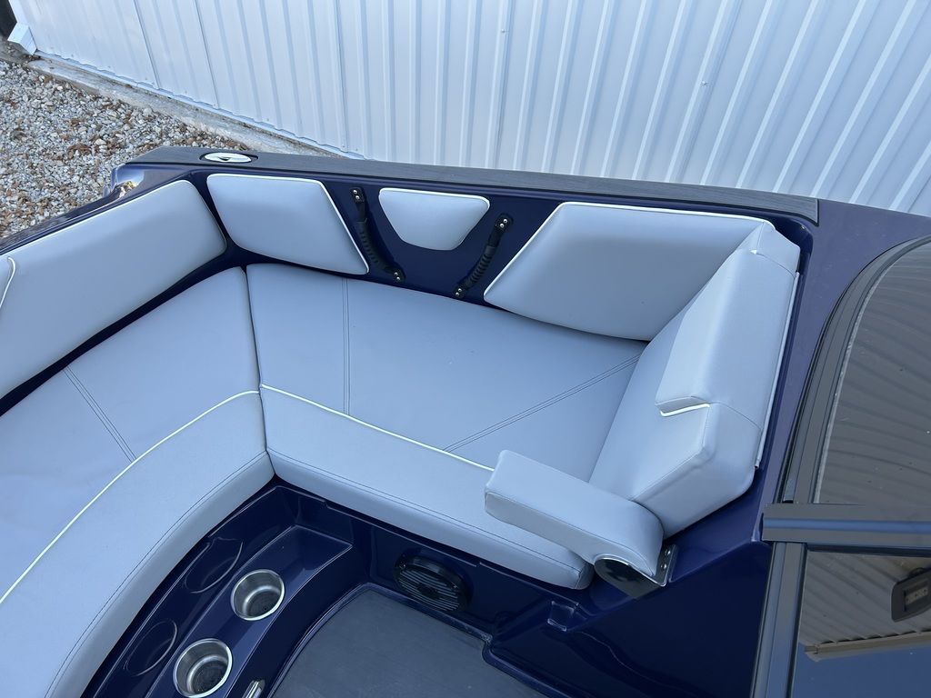 The WT-2DC offers a dual console layout with full windshield and wraparound cockpit seating. The massive bow seating area is complete with port and starboard adjustable armrests. This model features a walkthrough to the swim platform with a transom step for getting ready between rides. There’s plenty of storage thanks to a spacious ski locker and under seat base storage. And of course, it has Heyday’s signature ‘Heyday Hangout Zone’ seats that get passengers closer to the action and conceal even more storage below