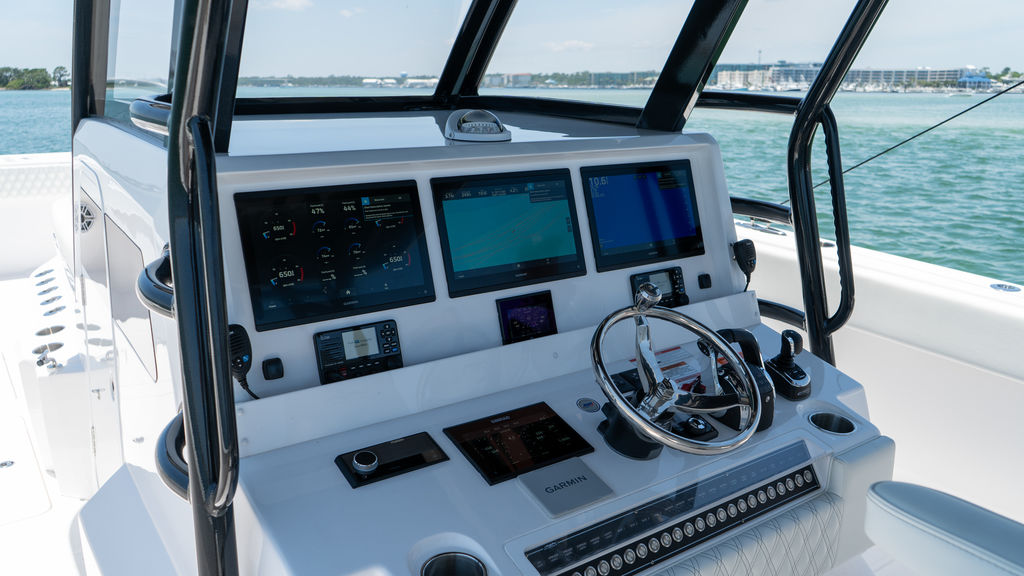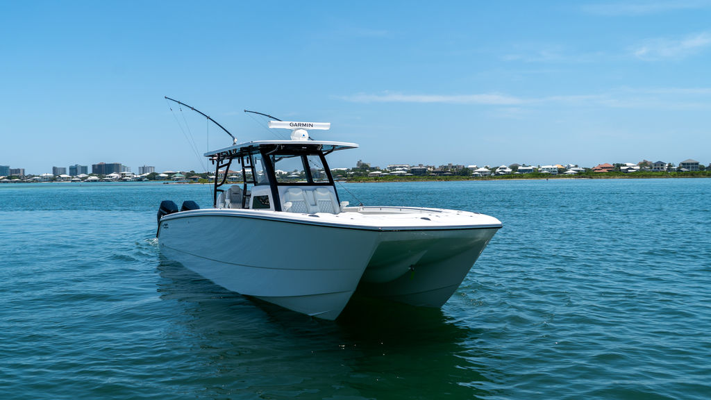 This Like New 2024 Invincible 40' Catamaran comes powered by Quad Mercury 400 V10s with around 250 Hours and warranty until 5/16/2029! Trailer Included With Purchase! Contact Clark McCollum at (251) 550-7581 for more information. This like new 2024 Invincible 40' Catamaran comes powered by Quad Mercury 400 V10's with around 250 Hours and warranty until 5/16/2029! This boat has a loaded electronics package that includes Starlink, Triple Garmin 8616 MFDs, Garmin Fantom 50 Watt Open Array Radar, M265 In Hull Transducer, Optimus Steering with Joystick, Twin iComm VHF Radios, JL Audio Sound System, Garmin GXM 54, Simrad GO 9, Gemlux Outrigger Bases with Carbon Fiber Poles and more! Some of the seating and amenities offered on this boat include Dual Row Seating with Shox Pedestals, Air-Conditioned Cabin and Helm, Large Flat Back Tackle Center with a Pull Out Cooler, Large Console Extension Lounger with Insulated Fish Box, Chill Plates, Twin Transom Live Wells, NEW XL Console with Head and storage, Oversized Hardtop, and more! Trailer is Included With Purchase. This Invincible 40' Catamaran is in impeccable condition and will not last long. Come check this listing out before its too late! For more information on this 2024 Invincible 40' Catamaran, contact Clark McCollum at (251) 550-7581!