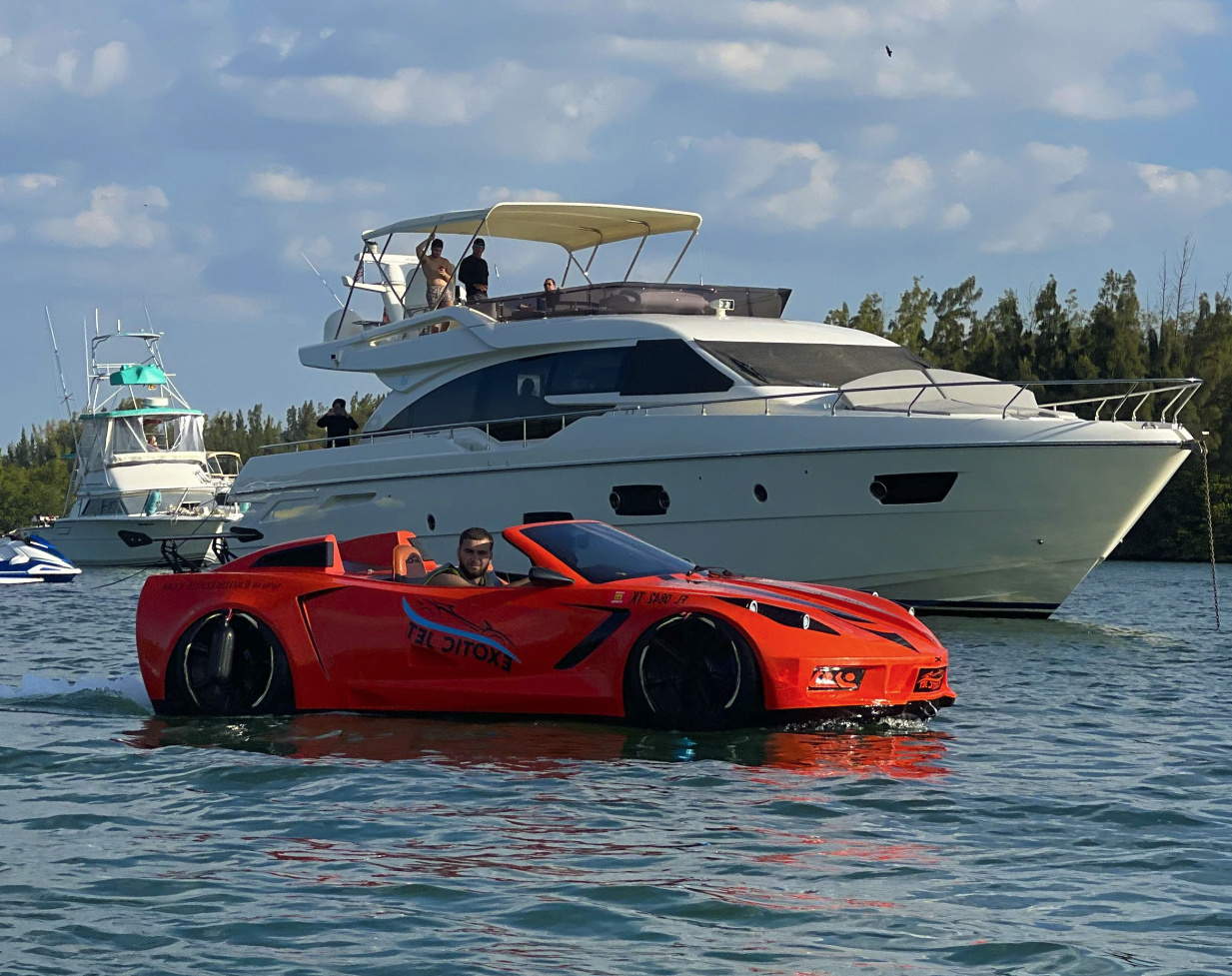 The JetCar is an exhilarating fusion of sports car excitement and aquatic adventure. Imagine a sports car that effortlessly glides on water surfaces like a jetski, made for thrill-seekers who crave heart-pounding fun and adrenaline-charged experiences. It’s the ultimate watercraft, delivering the rush of speed , luxury and excitement that’s never been seen before. We offer the opportunity for personalized customization of both the exterior and interior features of your jetcar, allowing you to tailor the aesthetics and functionality to your preferences.