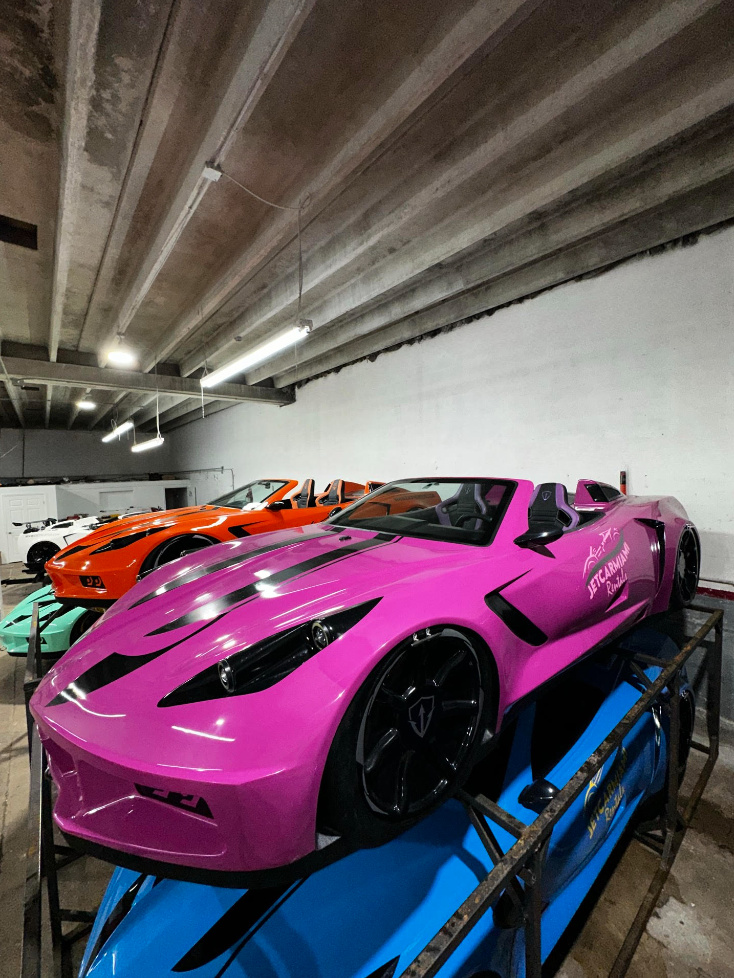 Additional features and custom upgrades are an additional cost. We require 35% down before any build is started. The remaining balance is due at the day when the JETCAR is completed and ready for pickup.