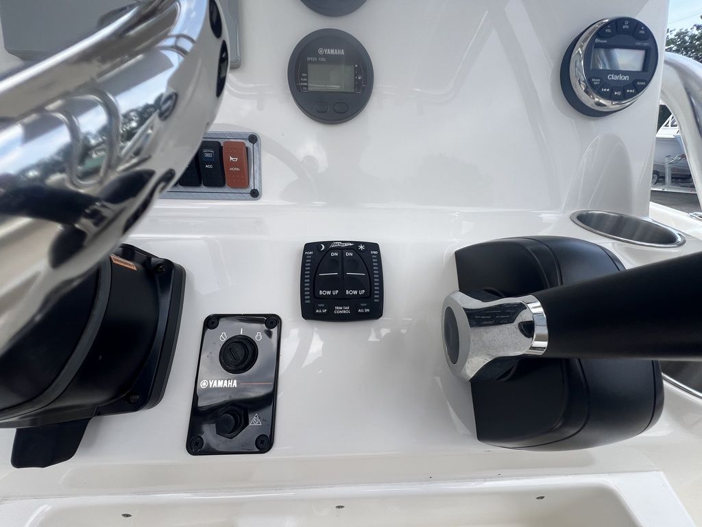 Powered by a ultra-low-hour Yamaha F150 (just 56 hours total – basically showroom fresh with that legendary Yamaha reliability, smooth integrated hydraulic steering, and excellent fuel efficiency). This 150hp setup is the sweet spot for the 203FS hull – recommended range, delivering responsive handling, a dry ride, and speeds you'll love without pushing limits.