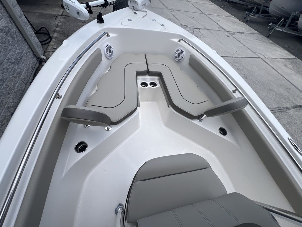The 203FS is renowned for its perfect balance of styling, ride quality, and versatility: 20'3" length with an 8' beam, 19° deadrise for slicing through chop, 50-gallon fuel tank for longer runs, and room for 8 people. Enjoy the forward-facing bow seating with cushions, full-width rear bench that flips to a casting platform or sun lounge, aerated livewell, ample rod storage, console storage, AND MUCH MORE!!
