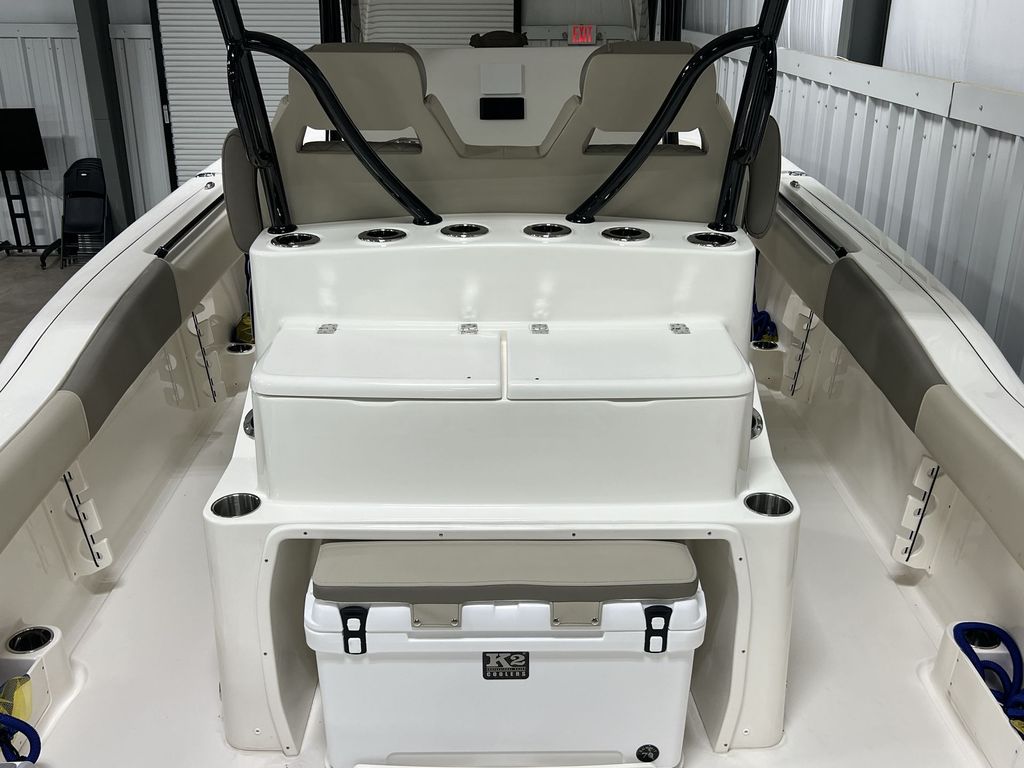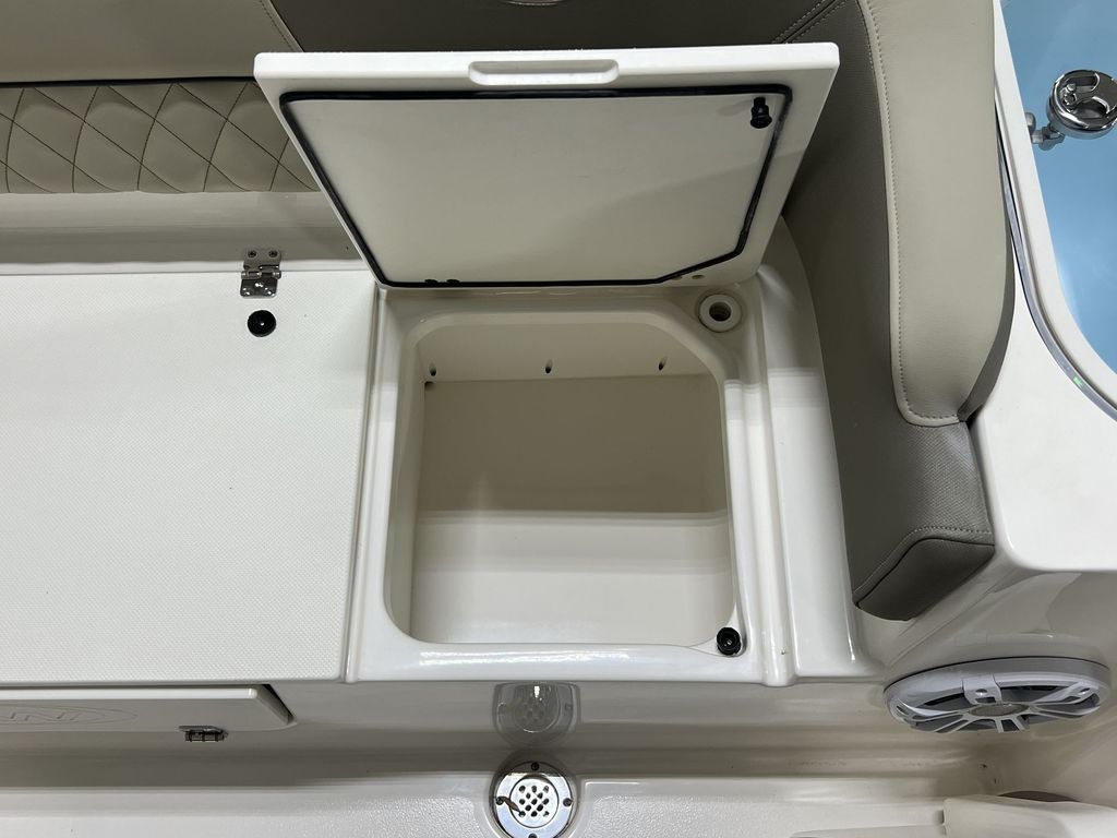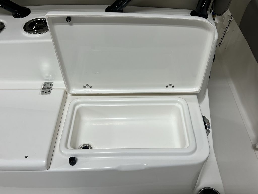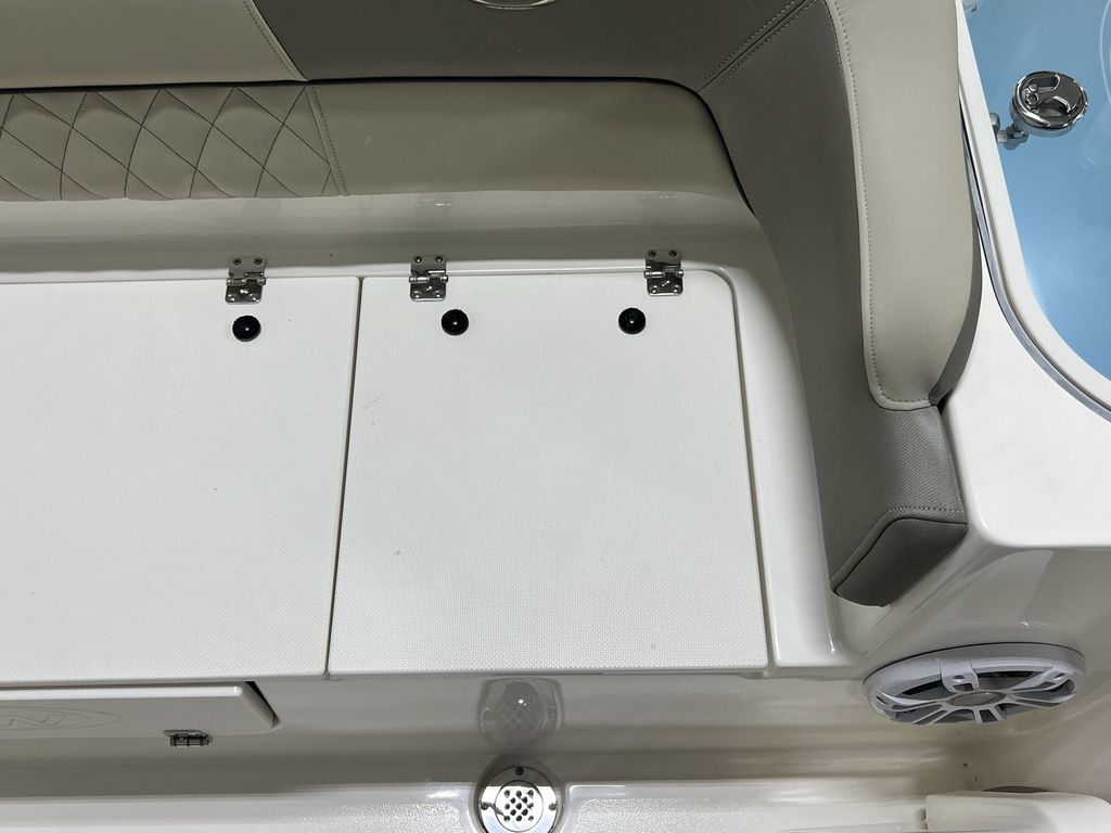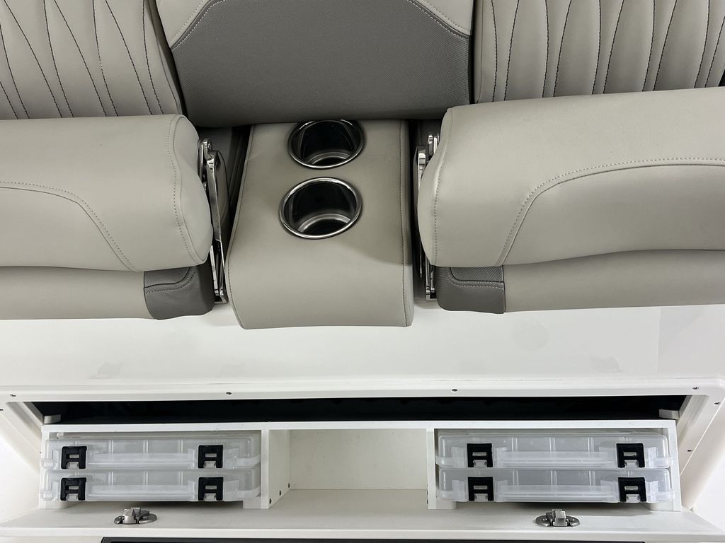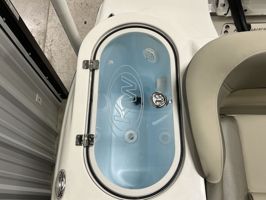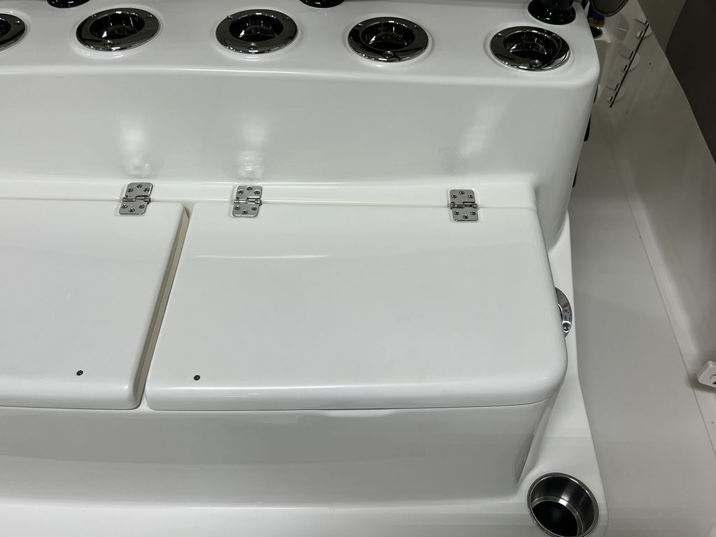 - Dual Aft Aerated Live wells separate pumps w/ trash bag holder