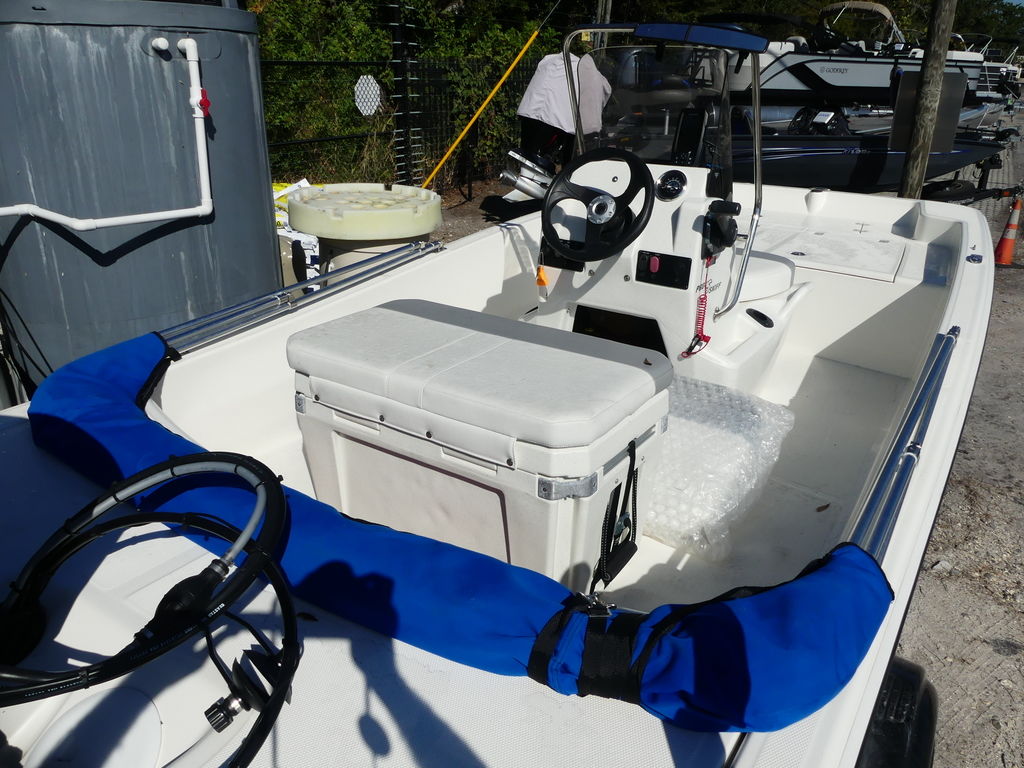 - Molded center console w/integrated 8-gal. (30.28 L) baitwell, molded-in grab handles & hinged padded seat cushion & back