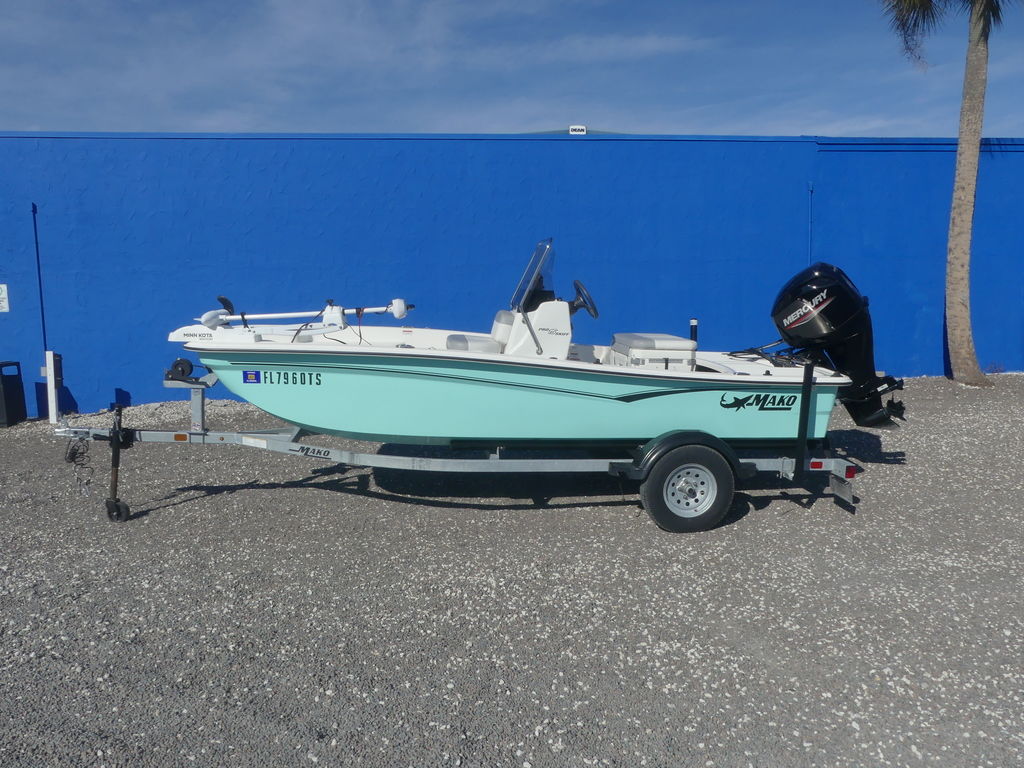 The strong design of the Pro Skiff 15 consists of the hull and deck liner that are chemically and mechanically bonded together, and then filled with expanding foam to create one unitized structure with excellent flotation and rigidity. It comes standard with a hot-dipped galvanized trailer, a Mercury outboard and the industry-leading MAKO Assurance 5+Life warranty.
