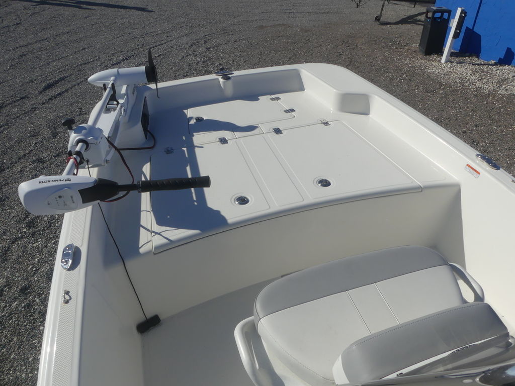- Molded center console w/integrated 8-gal. (30.28 L) baitwell, molded-in grab handles & hinged padded seat cushion & back