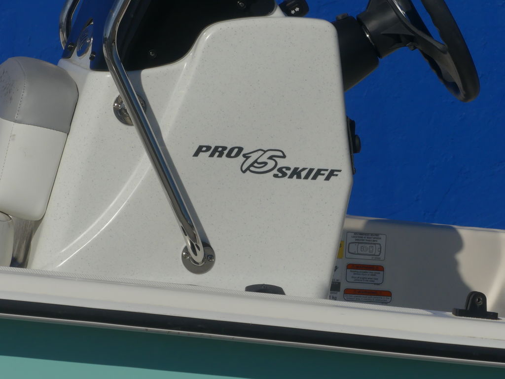 The strong design of the Pro Skiff 15 consists of the hull and deck liner that are chemically and mechanically bonded together, and then filled with expanding foam to create one unitized structure with excellent flotation and rigidity. It comes standard with a hot-dipped galvanized trailer, a Mercury outboard and the industry-leading MAKO Assurance 5+Life warranty.