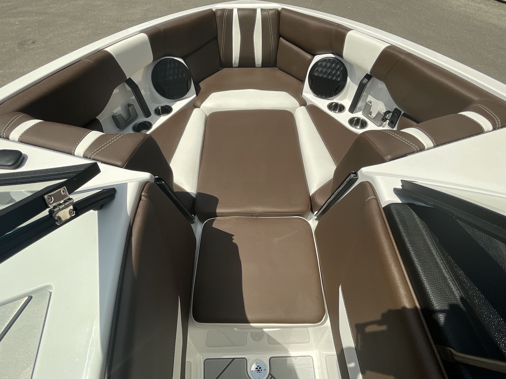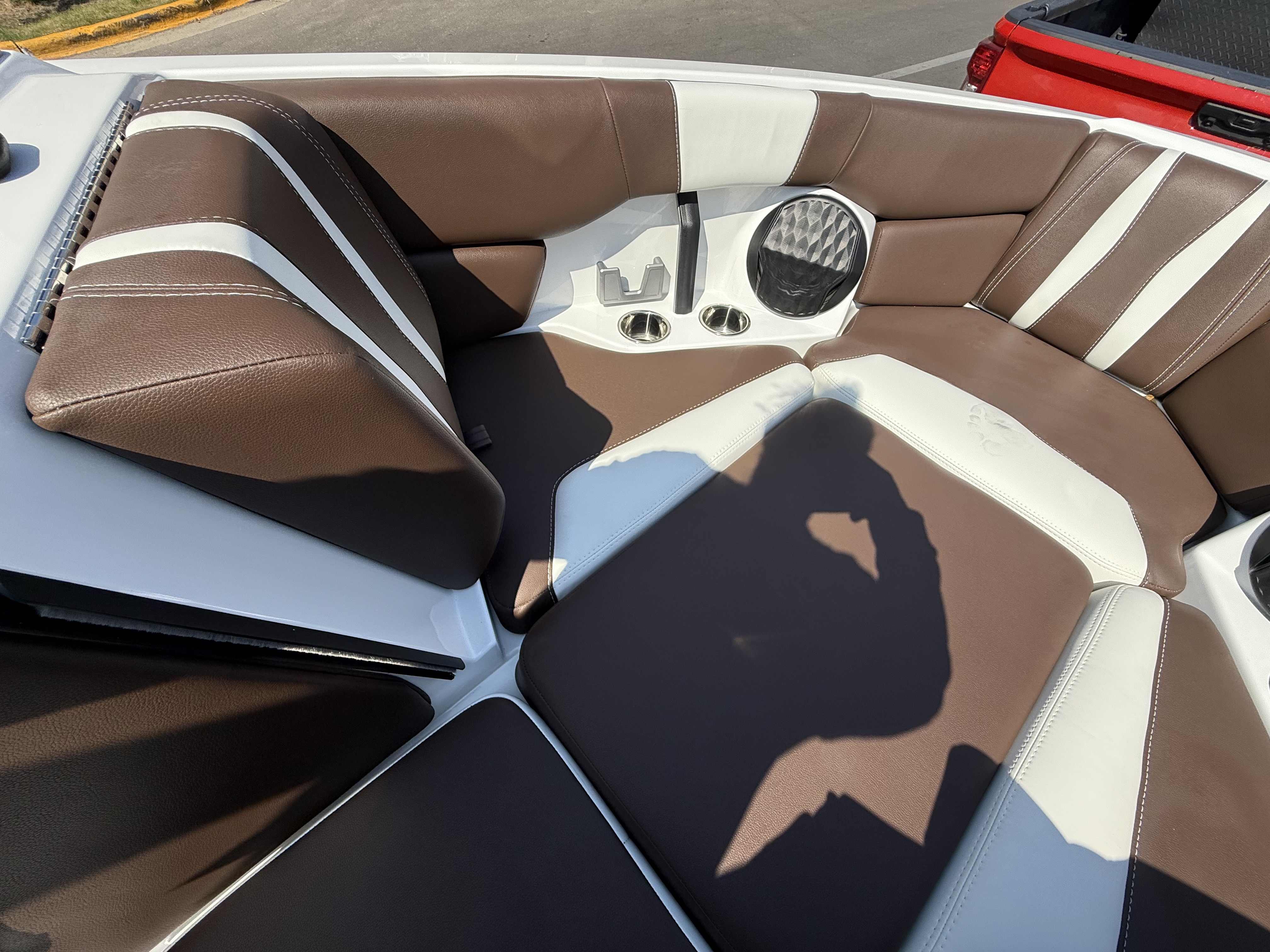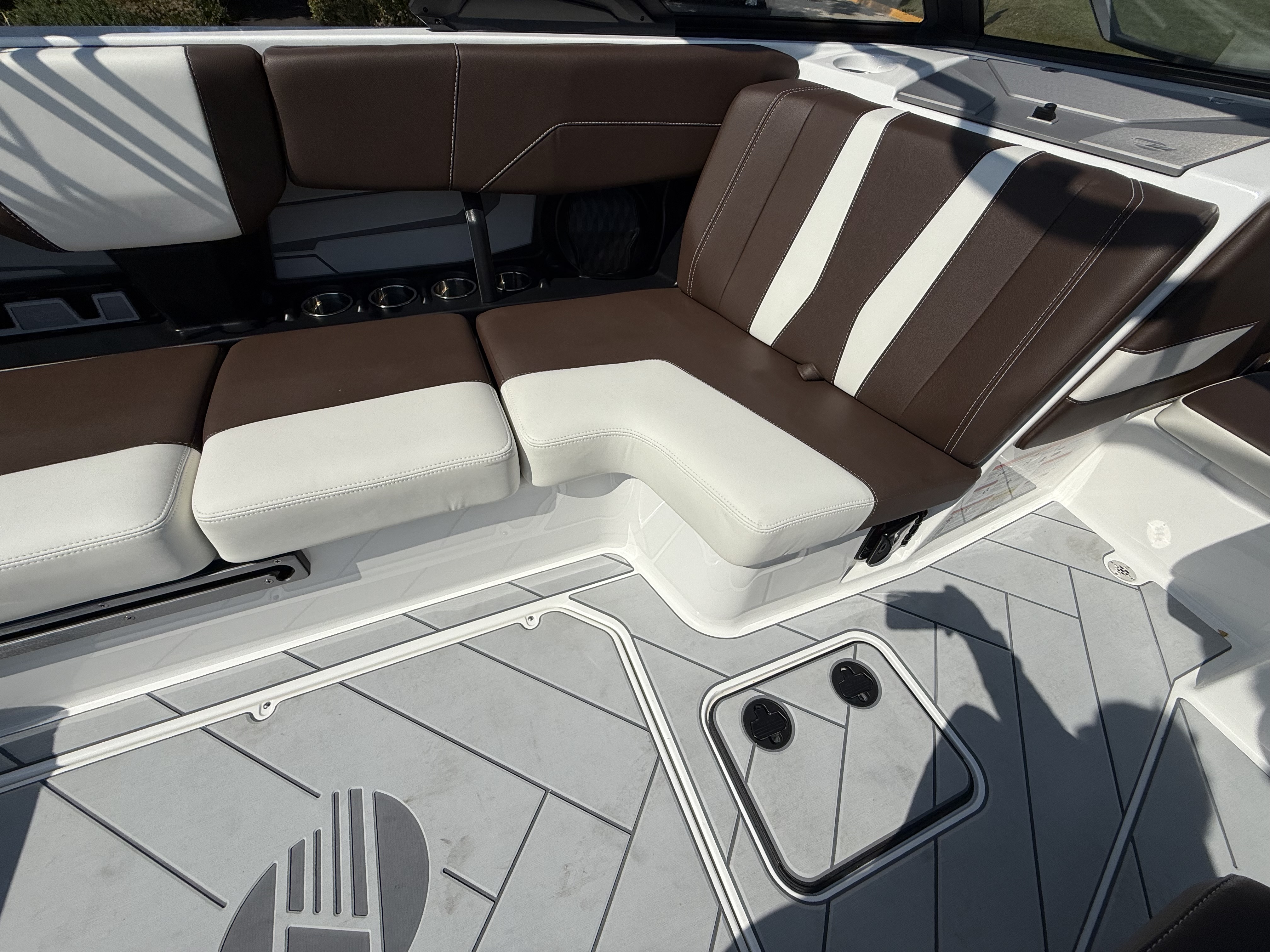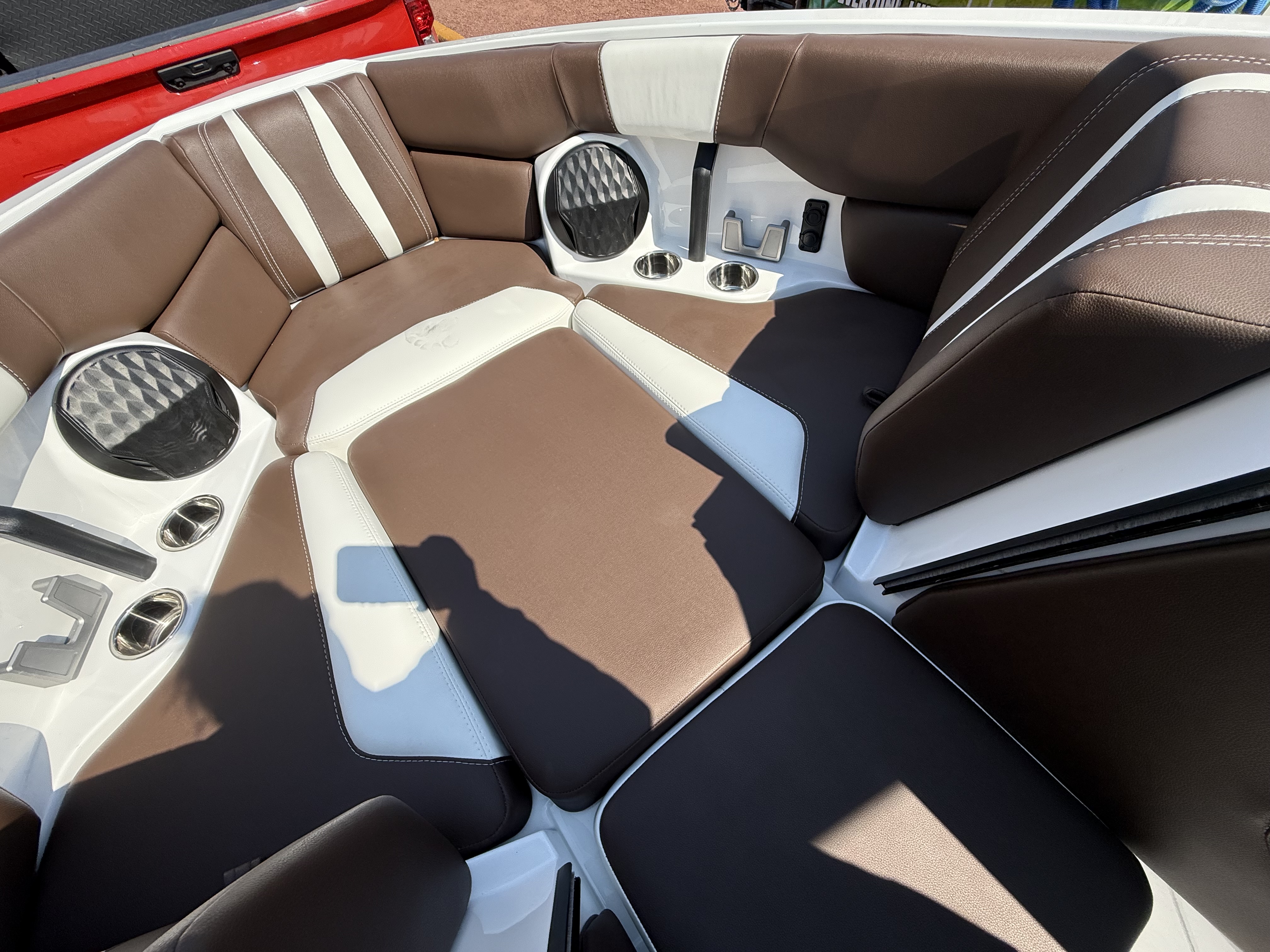 The Malibu 22 LSV is not only built for performance but also for style and luxury. The soft grip flooring with accent color upgrade offers a premium look and feel, elevating the boat's aesthetics. Equipped with a wideview backup camera, you can confidently maneuver in tight spaces and maintain complete awareness of your surroundings.