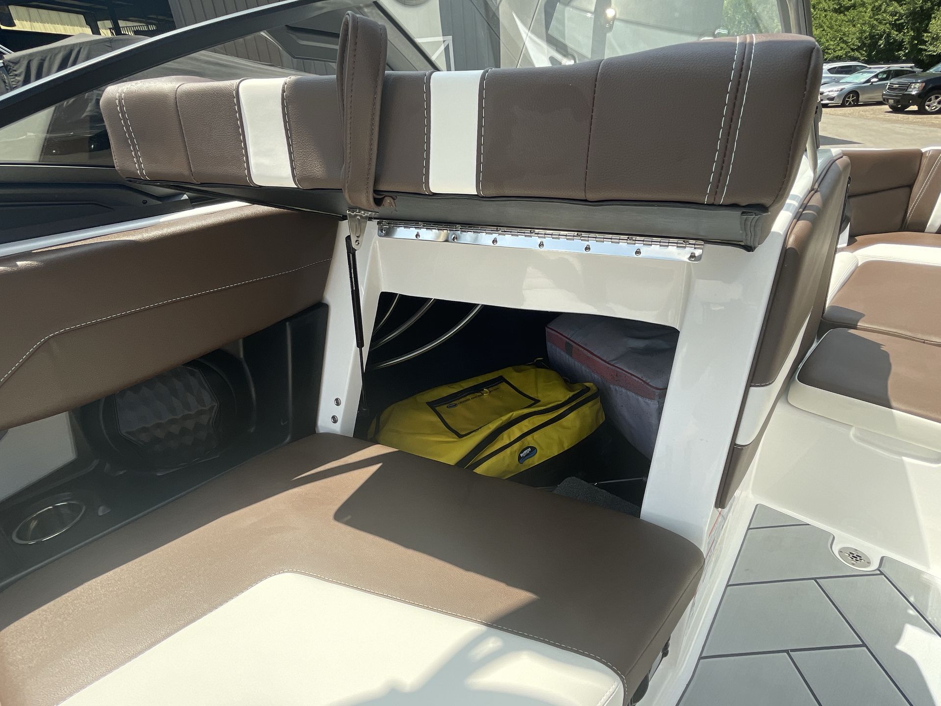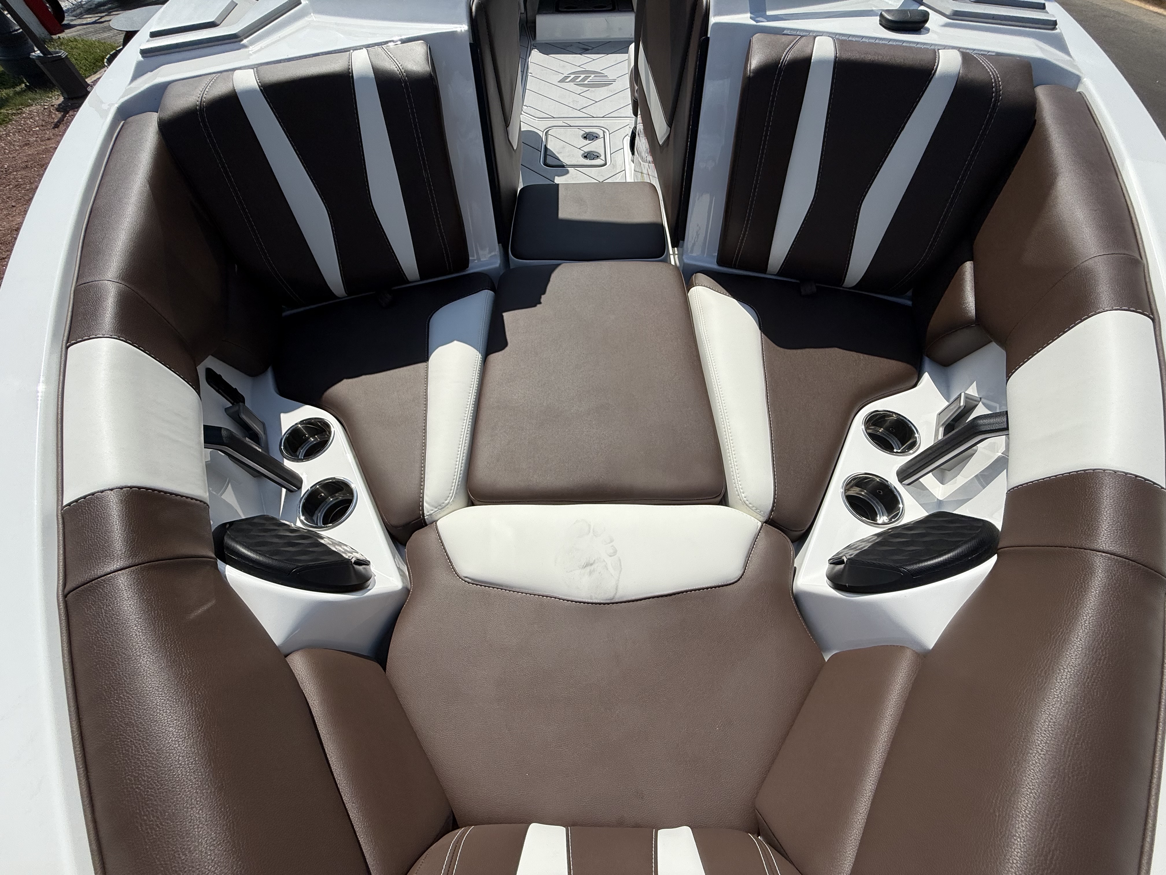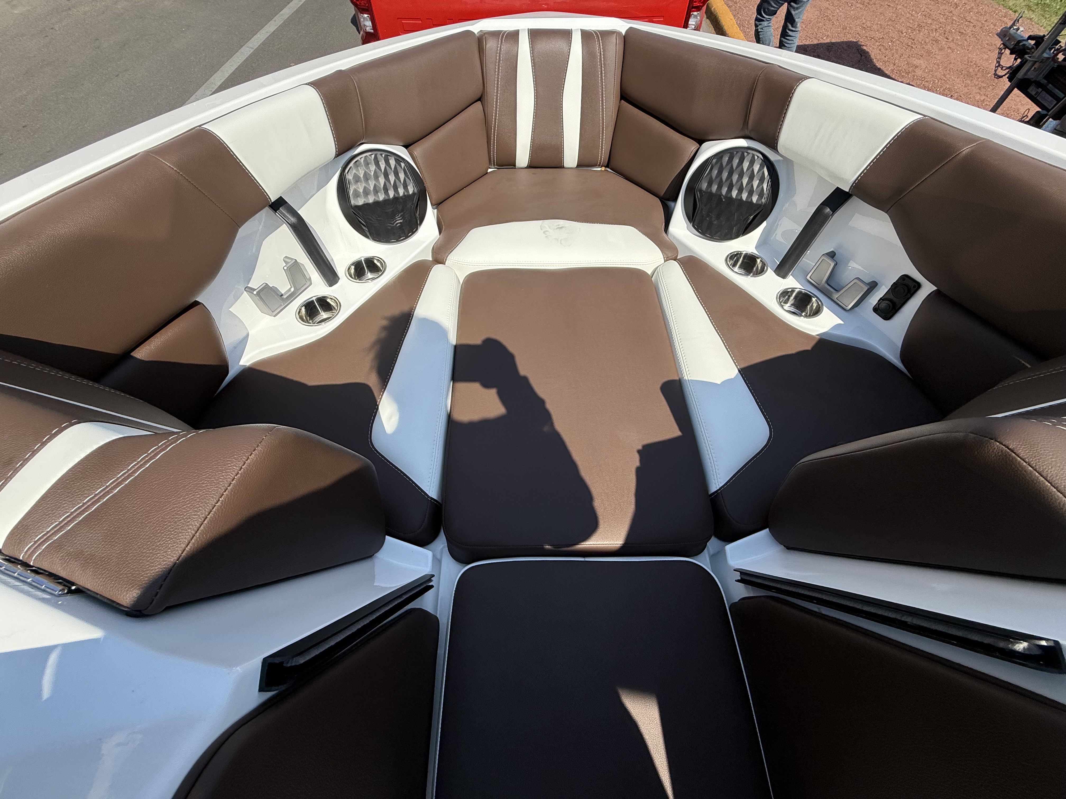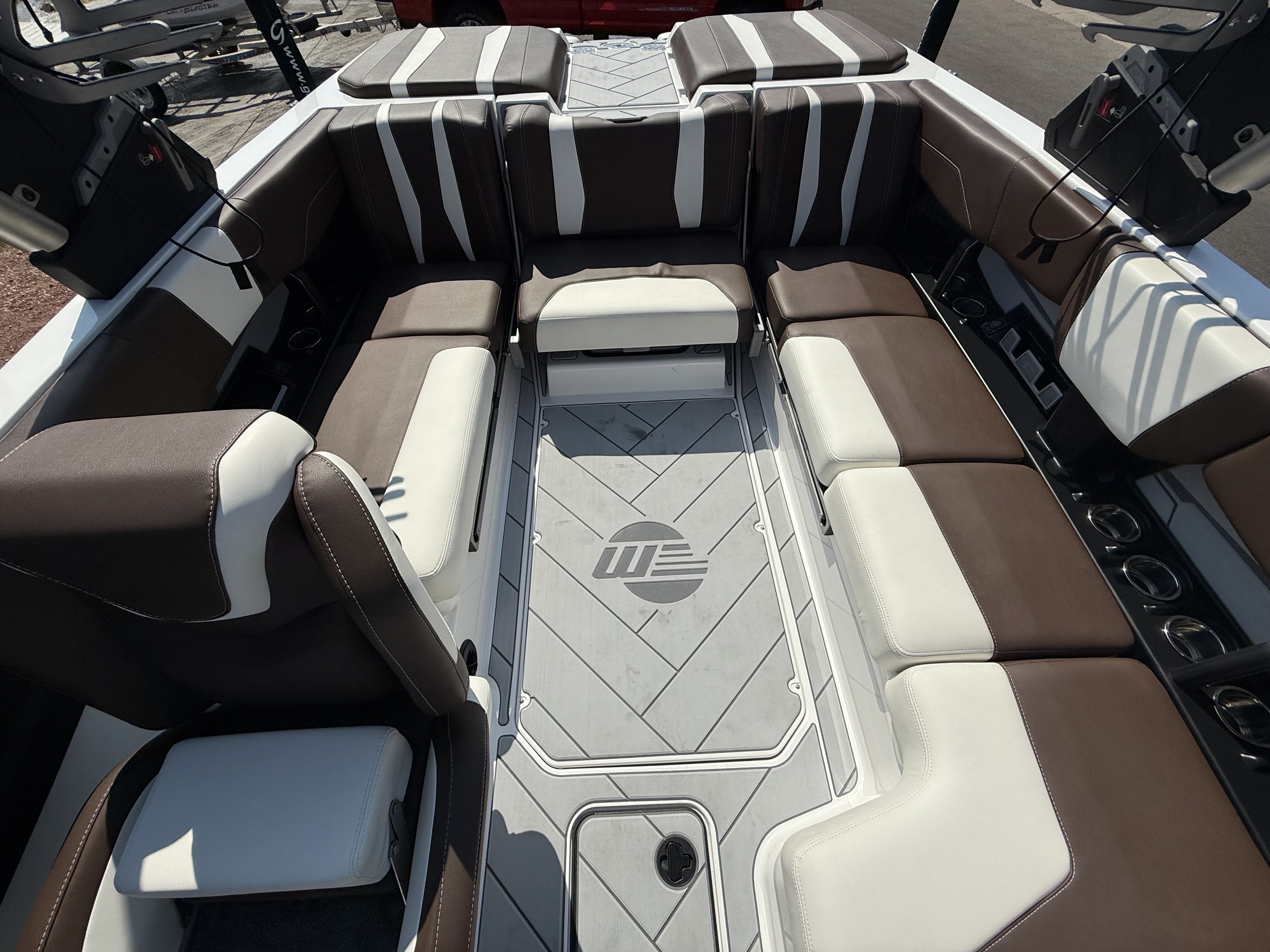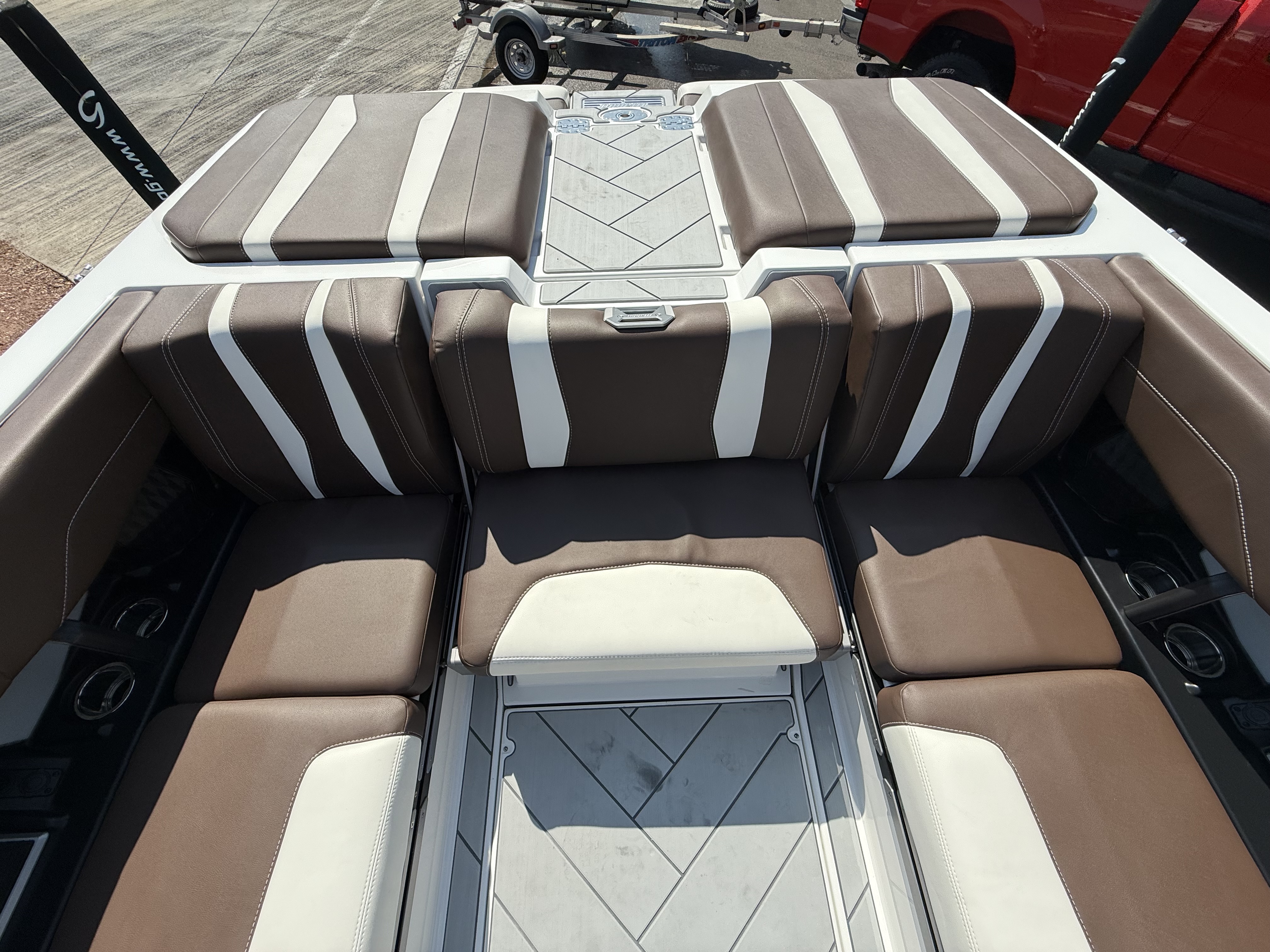 The Malibu 22 LSV is not only built for performance but also for style and luxury. The soft grip flooring with accent color upgrade offers a premium look and feel, elevating the boat's aesthetics. Equipped with a wideview backup camera, you can confidently maneuver in tight spaces and maintain complete awareness of your surroundings.