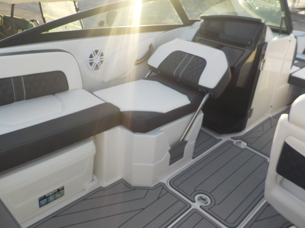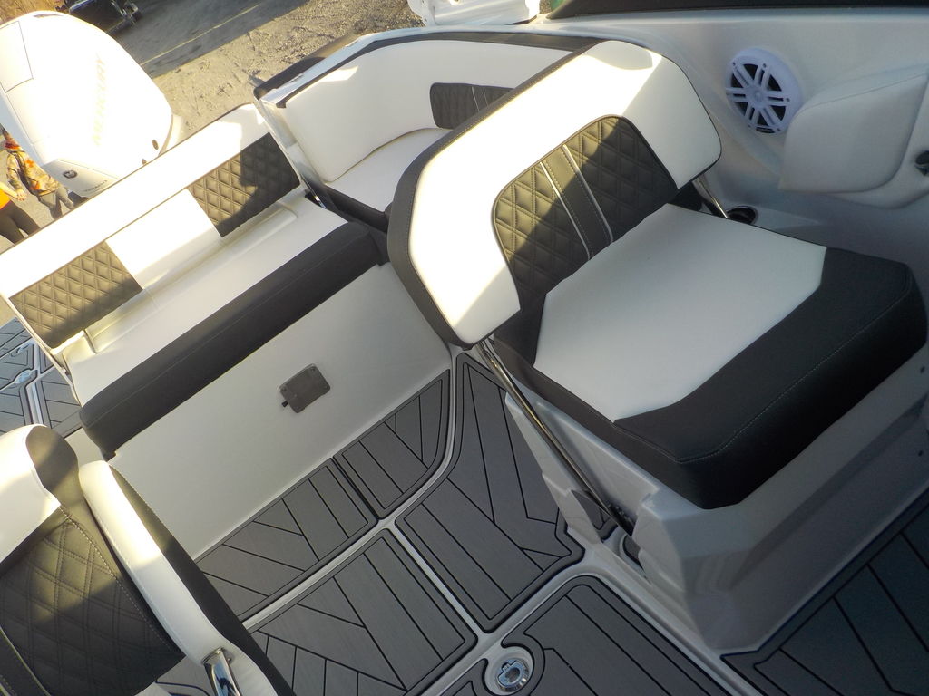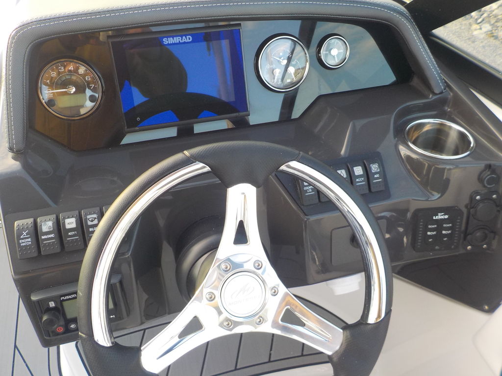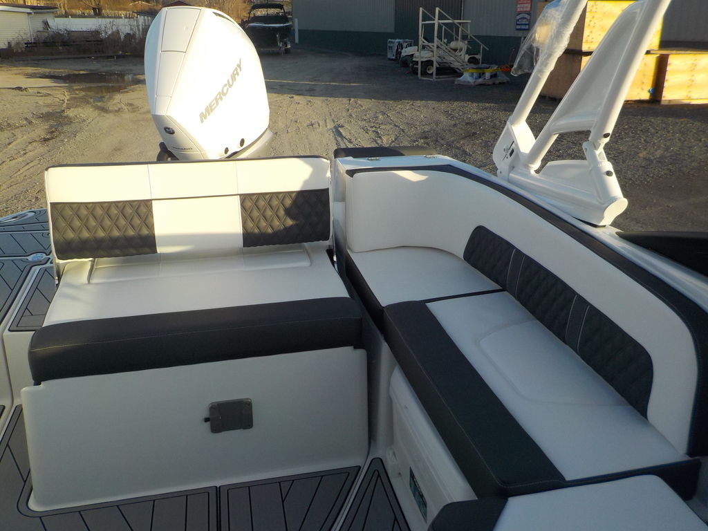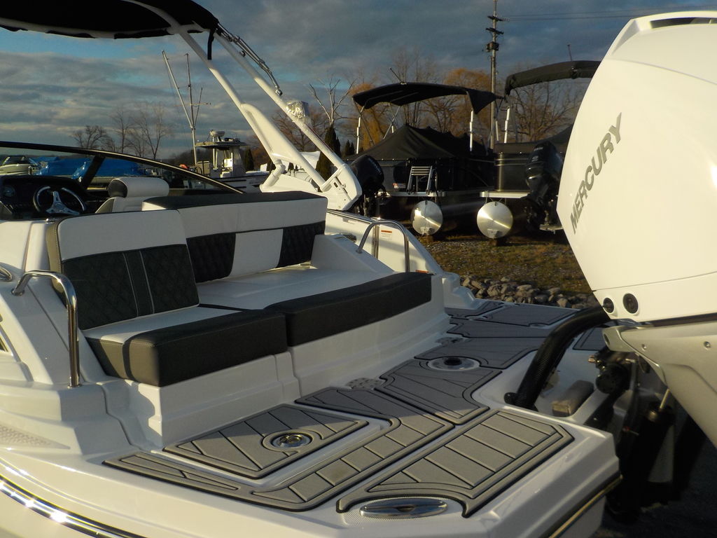 This boat will get up and go with the matching white 300 Mercury outboard, and stop traffic while doing it with its good looks. Great size boat for the finger lakes. Its small enough to be super athletic, and big enough to haul a crowd, and have a head on board.