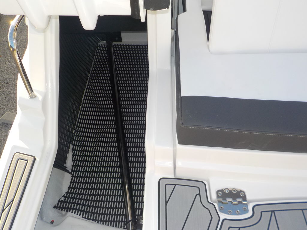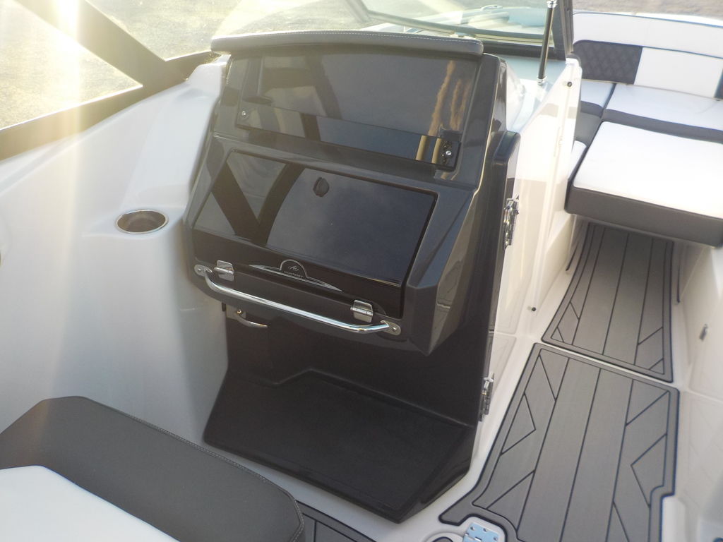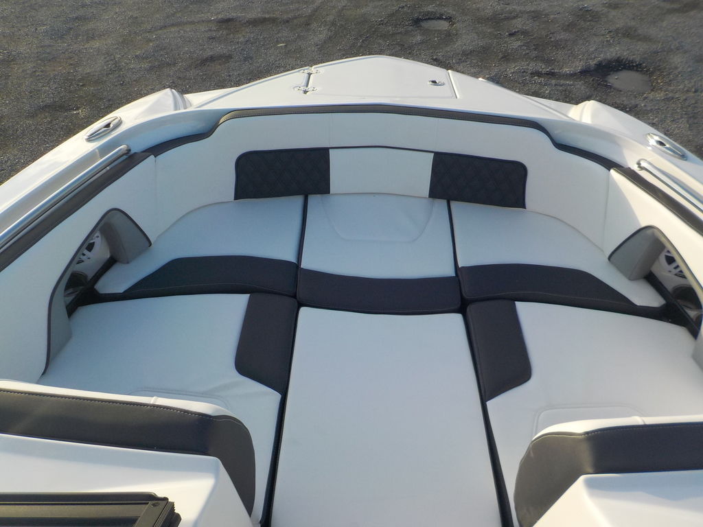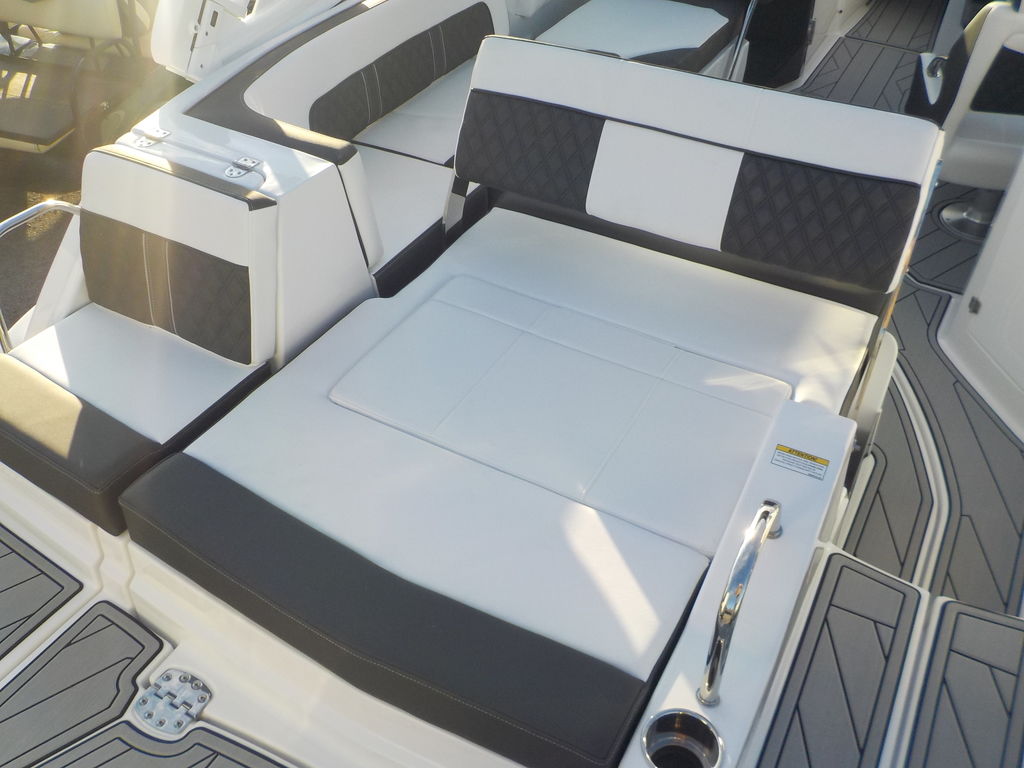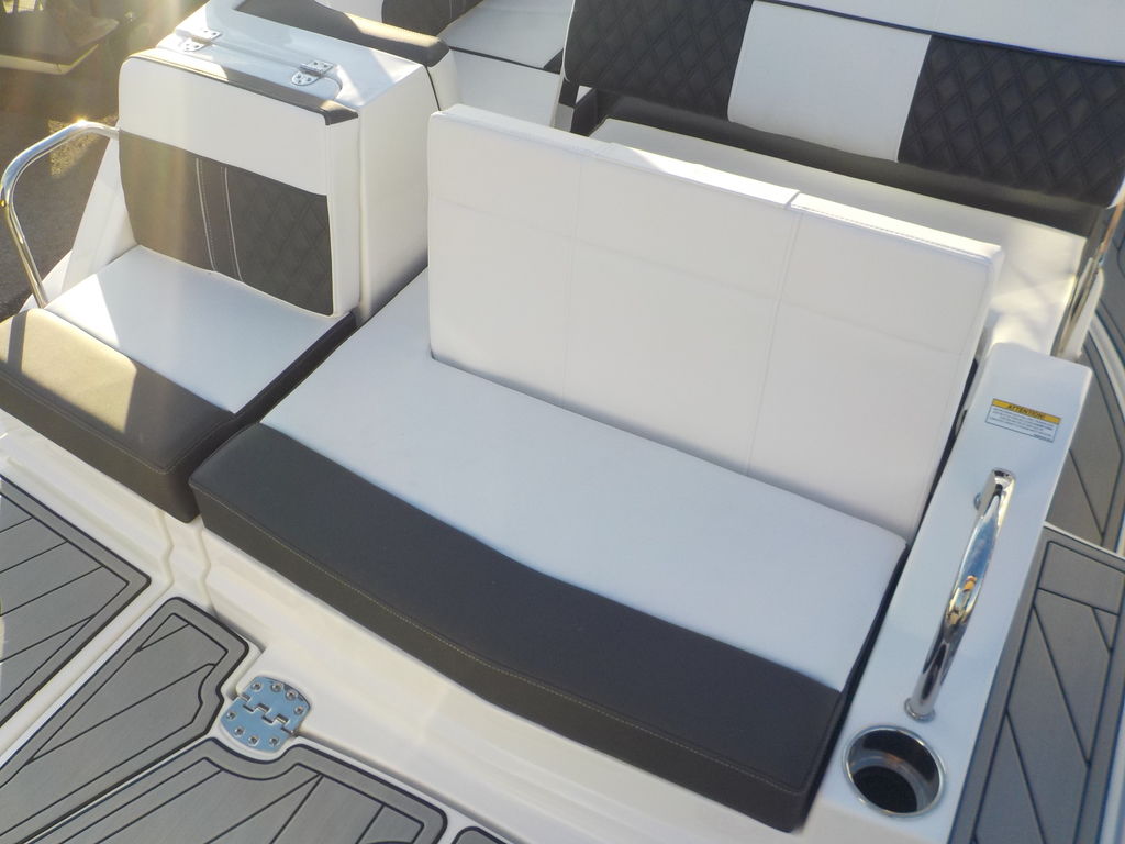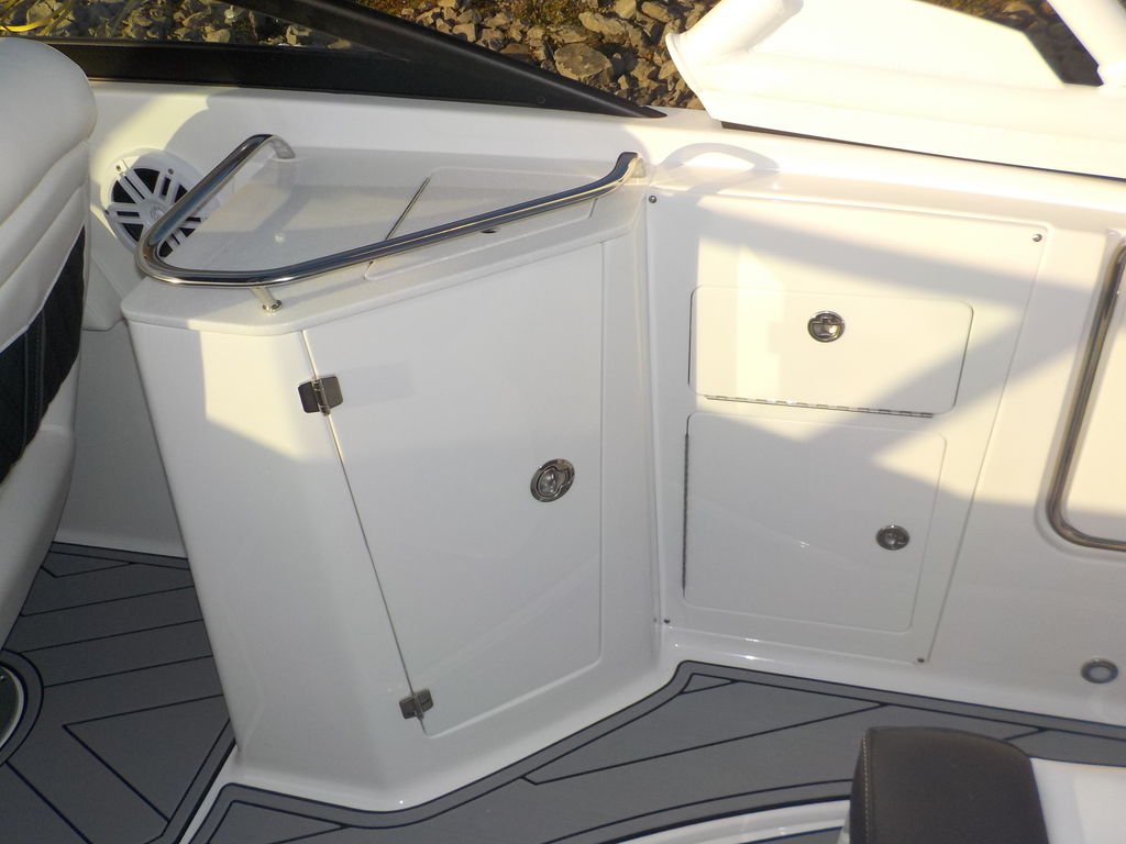 This boat will get up and go with the matching white 300 Mercury outboard, and stop traffic while doing it with its good looks. Great size boat for the finger lakes. Its small enough to be super athletic, and big enough to haul a crowd, and have a head on board.