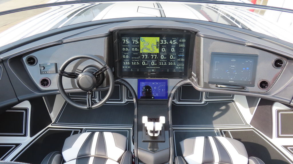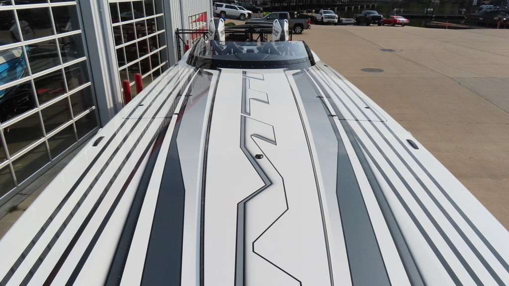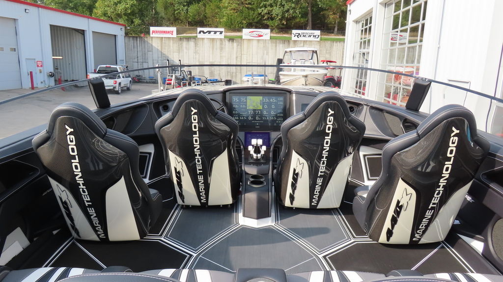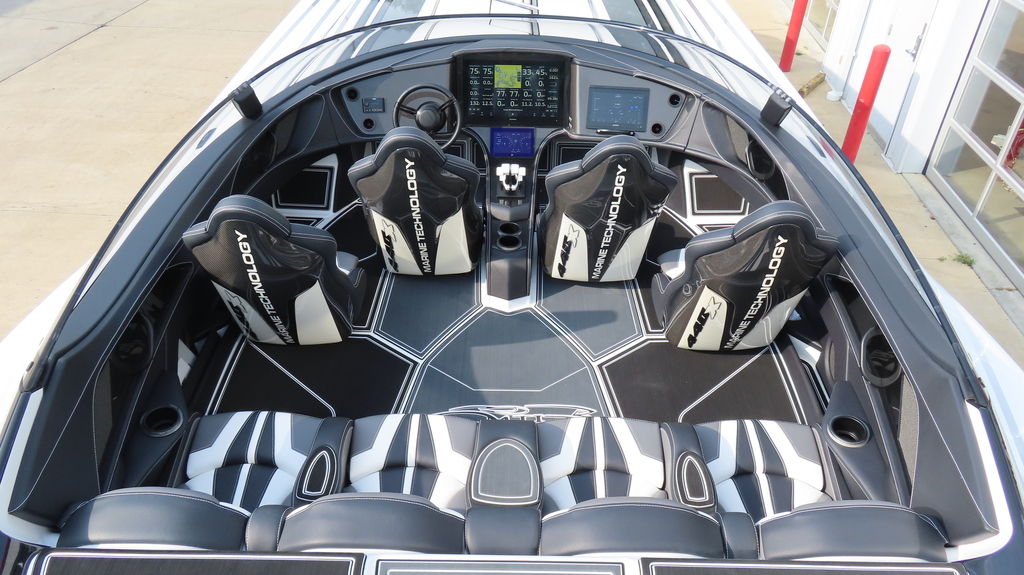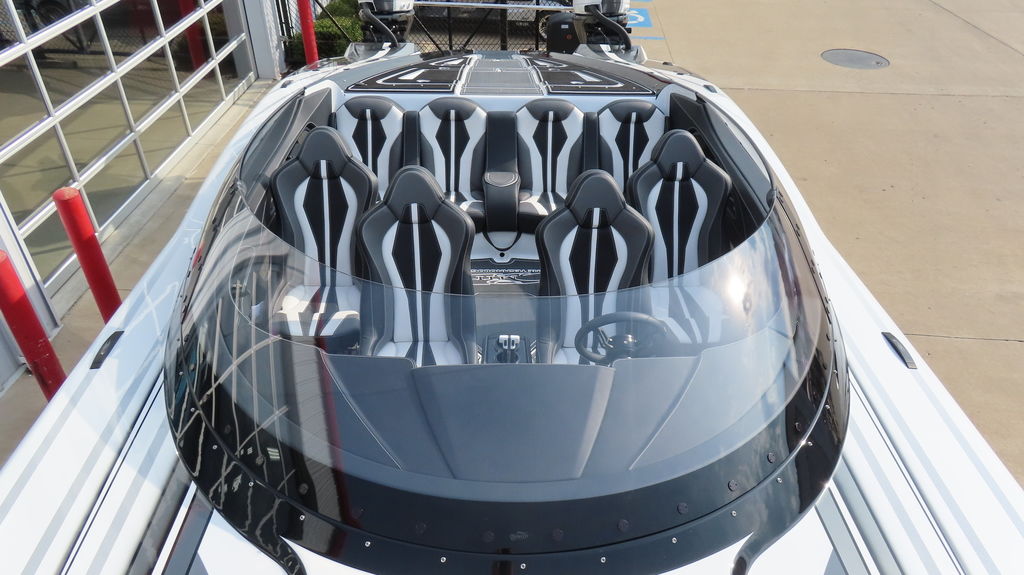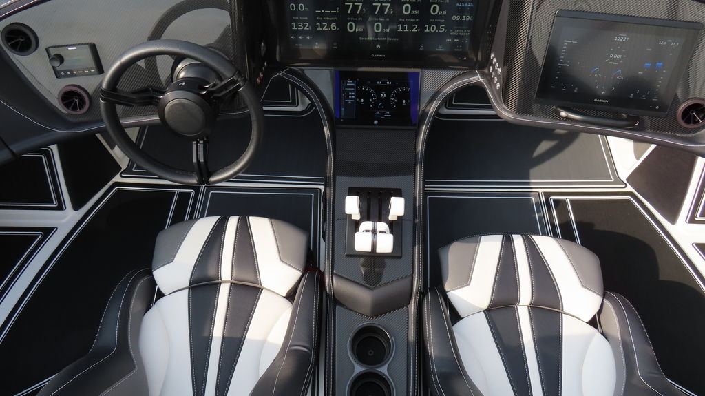 FULL SPECIAL IMC CARBON LAYUP, 8 seat configuration, 22inch Garmin centered in dash, 12" Garmin in front of passenger seat, Mercury VesselView, Fusion/JL Audio stereo, custom SeaDek flooring, flip-up bolster seating in the four front seats, carbon fiber dash and console, carbon fiber seat frames, underwater LEDs, dash blower vents, cockpit cover, STR Engine Brackets, Swim ladder, Fender Holders, Custom Painted Engines, and much more!