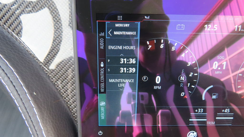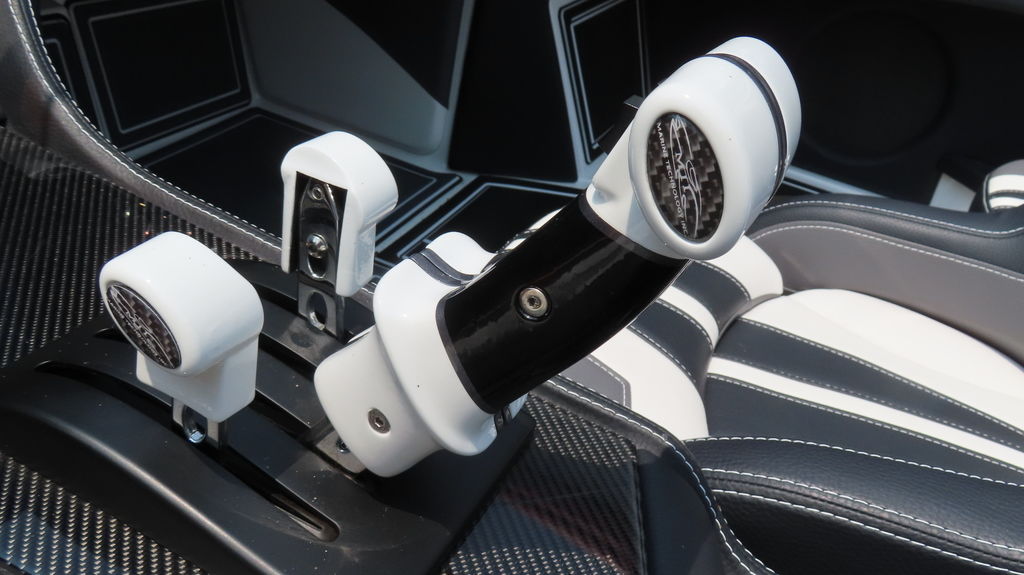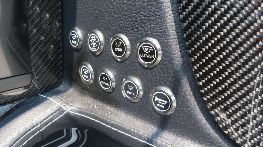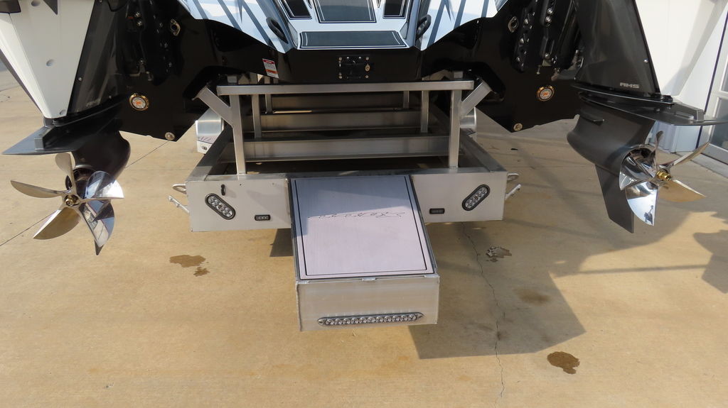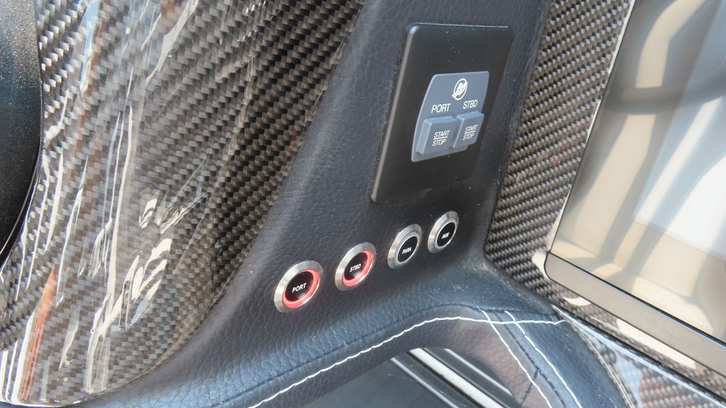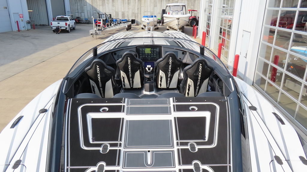FULL SPECIAL IMC CARBON LAYUP, 8 seat configuration, 22inch Garmin centered in dash, 12" Garmin in front of passenger seat, Mercury VesselView, Fusion/JL Audio stereo, custom SeaDek flooring, flip-up bolster seating in the four front seats, carbon fiber dash and console, carbon fiber seat frames, underwater LEDs, dash blower vents, cockpit cover, STR Engine Brackets, Swim ladder, Fender Holders, Custom Painted Engines, and much more!