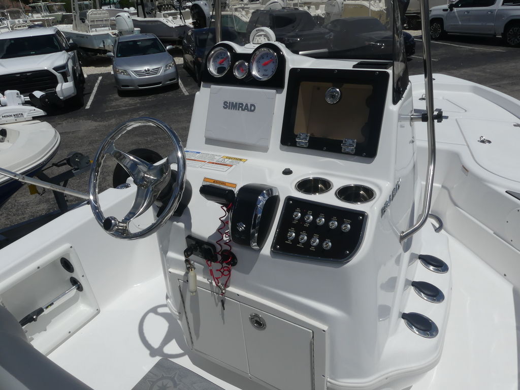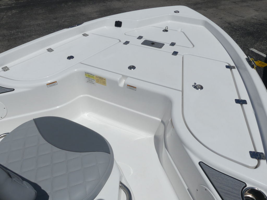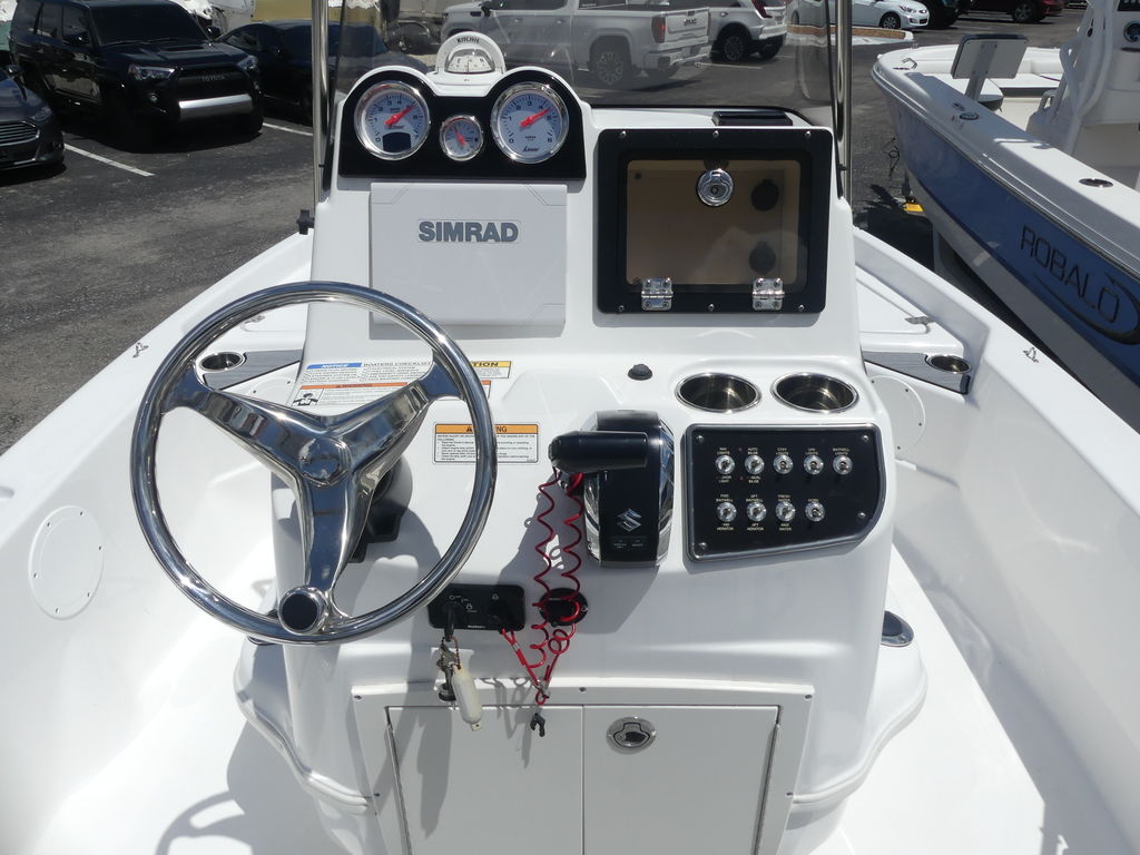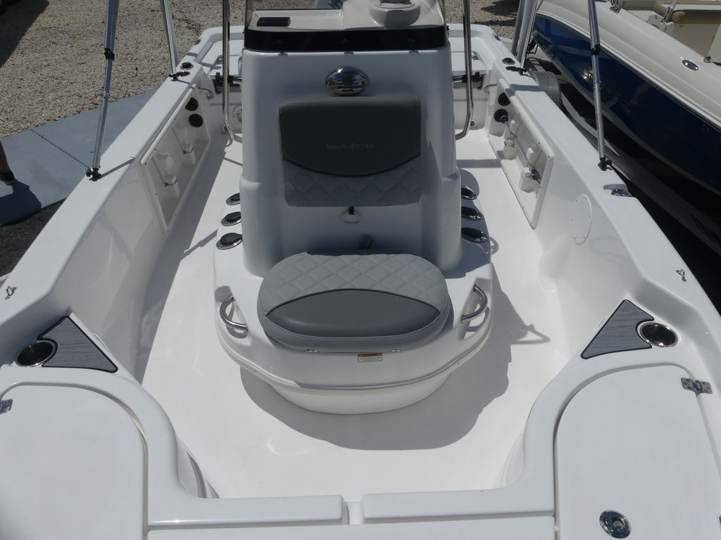 The 194 Bay is a hard-charging boat that gets out of the hole quick with a Yamaha 115 HP or 150 HP outboard. Its creature comforts includes two rear fold-down jump seats and an aft swim platform with an extending ladder. For the pro inshore angler, there is a 27-gallon aft livewell and a 13-gallon livewell/baitwell under the console seat. Six vertical rod holders flank the helm and an ample 93” layout holds latched storage compartments for gear, and an insulated fish box, below deck. Whatever the task, the 194 Bay guarantees a great day on the water for everyone.