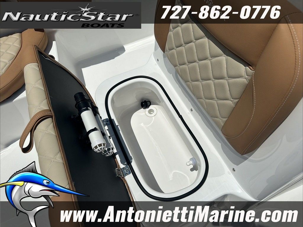 • 3-Across Floding Aft Jump Seats w/ Cast Net under Port Seat, Livewell Under Center Jump Seat, & Battery Storage under Starboard Seat