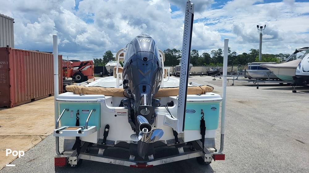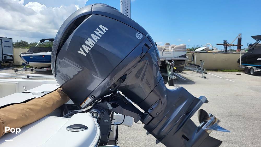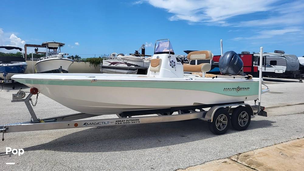 The NauticStar is equipped with a 150 horsepower four-stroke Yamaha outboard. The hull is designed with fishing in mind. Includes 13-gallon in-console live well, 27-gallon rear live well, and 30-gallon fish box.