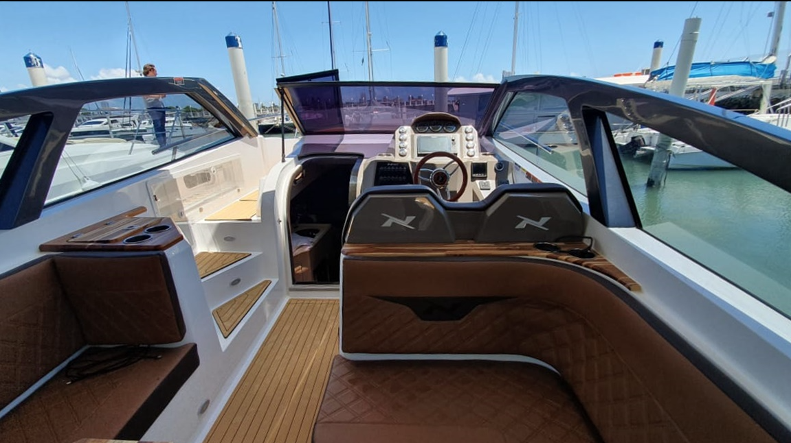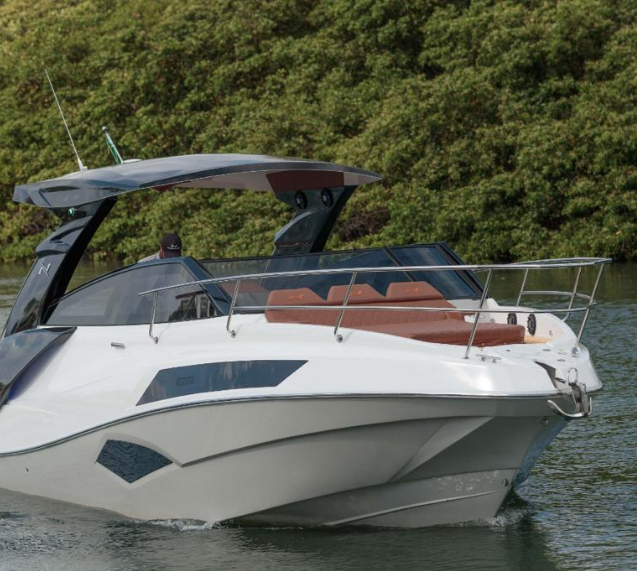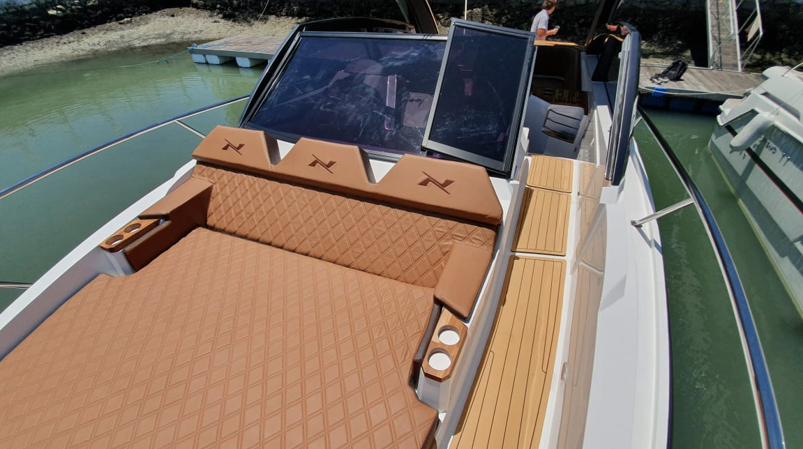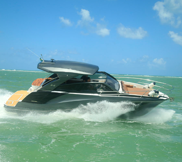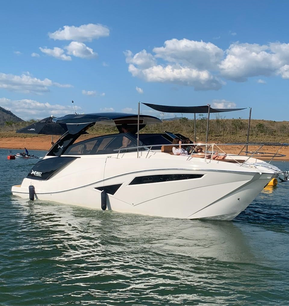 The NX360 SPORT COUPÉ is among the biggest launches in the nautical market in the last few years, responsible for changing the course of the nautical industry in Brazil. With its expressive, sporty, and elegant design language, the NX360 SPORT COUPÉ stands out due its superiority in everything that exists in its category. From the bow, which houses a large king-size solarium and the elegant rigid roof, to the stern with the distinctive air intake and its unparalleled gourmet area. There’s no denying: The NX360 SPORT COUPÉ Boat is simply unmatched in every way.
