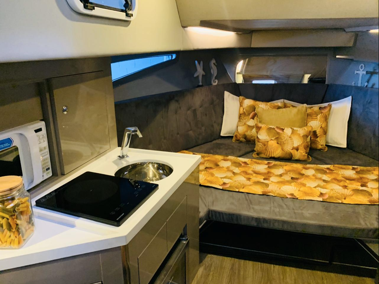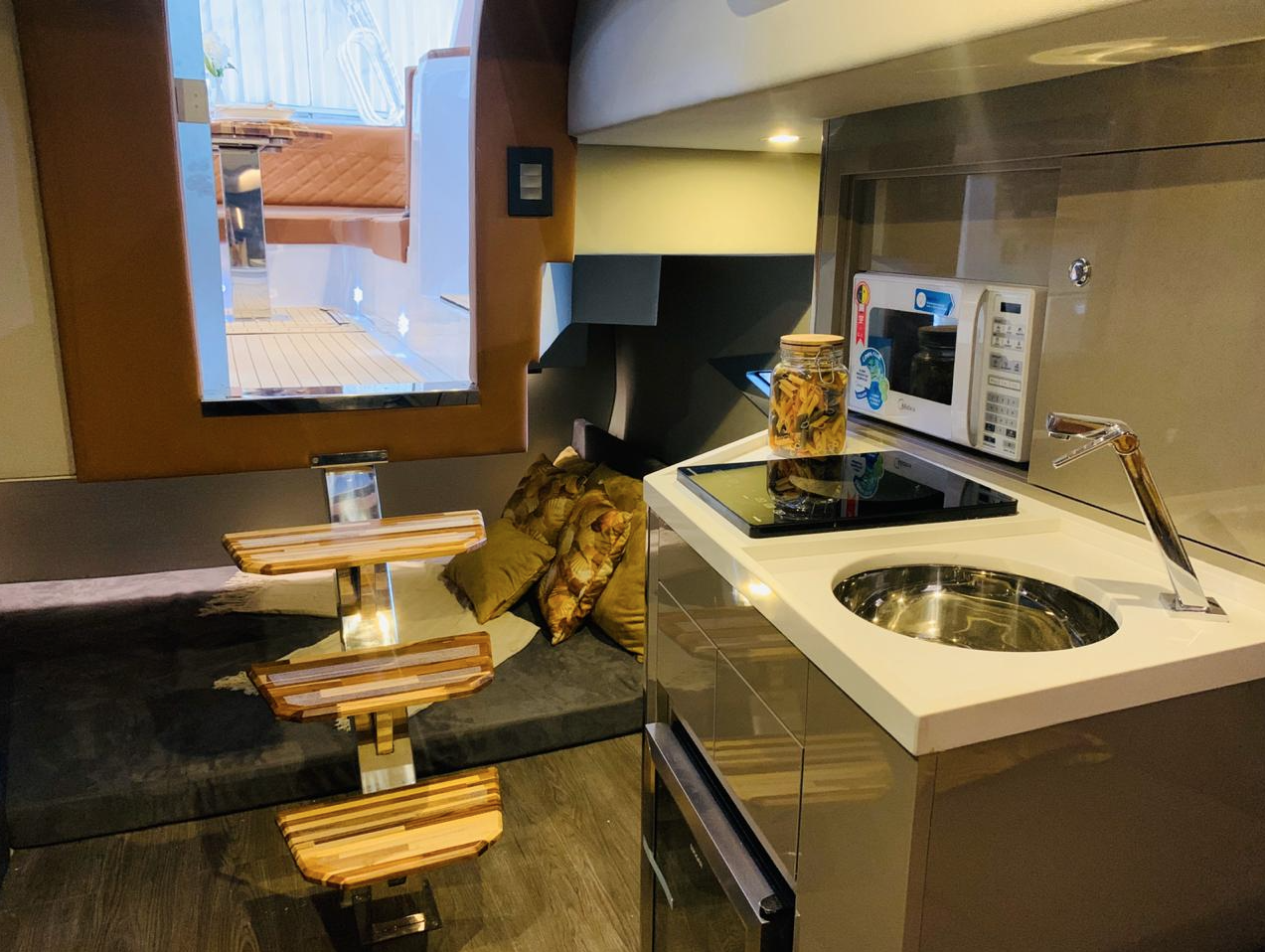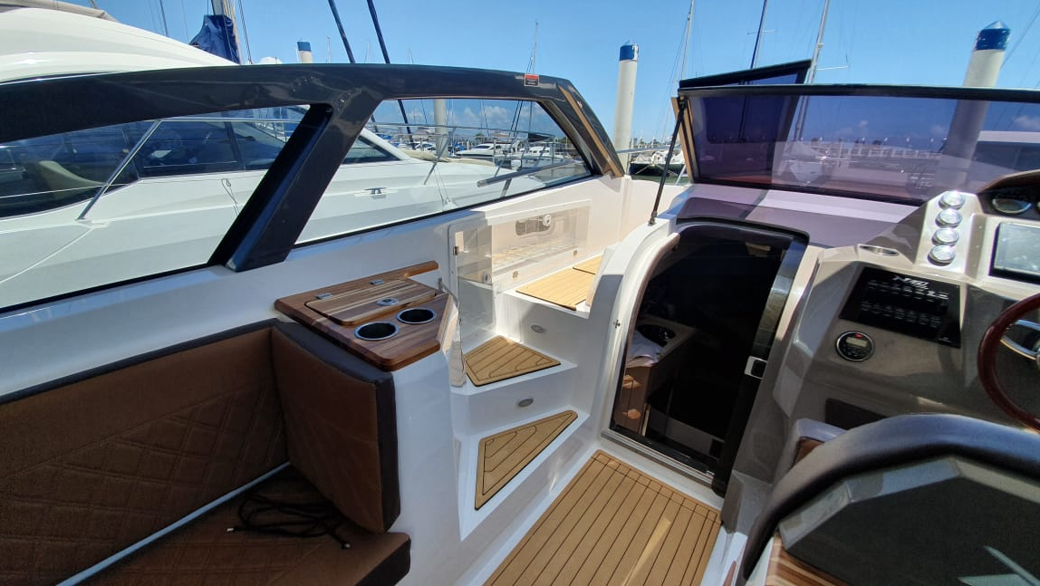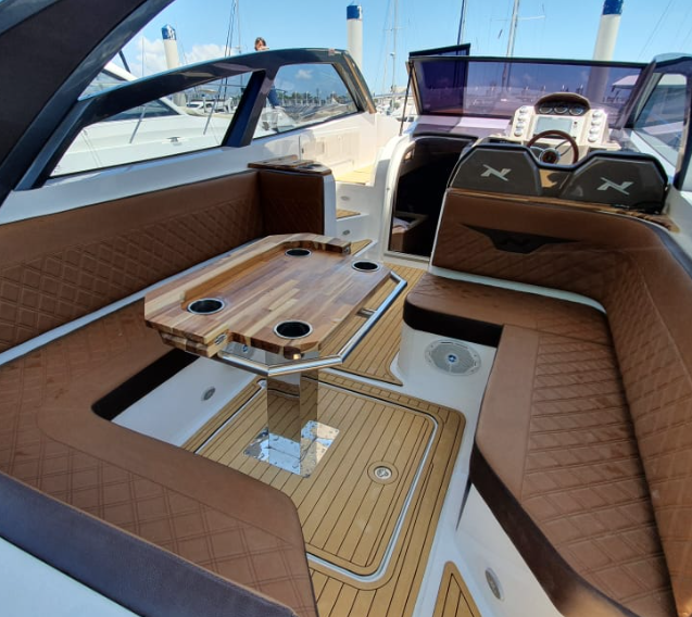 The NX360 SPORT COUPÉ is among the biggest launches in the nautical market in the last few years, responsible for changing the course of the nautical industry in Brazil. With its expressive, sporty, and elegant design language, the NX360 SPORT COUPÉ stands out due its superiority in everything that exists in its category. From the bow, which houses a large king-size solarium and the elegant rigid roof, to the stern with the distinctive air intake and its unparalleled gourmet area. There’s no denying: The NX360 SPORT COUPÉ Boat is simply unmatched in every way.