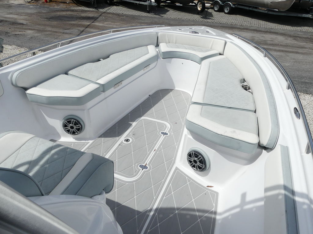 The legendary 25 CRX is sure to turn heads with its one-of-a-kind design. It is built with cool lines, unique step hulls, two aerated live wells, fiberglass rod holders, and molded front loungers with hydraulic headrests. With the 25 CRX being our fastest boat yet, it is sure to exceed any expectations.