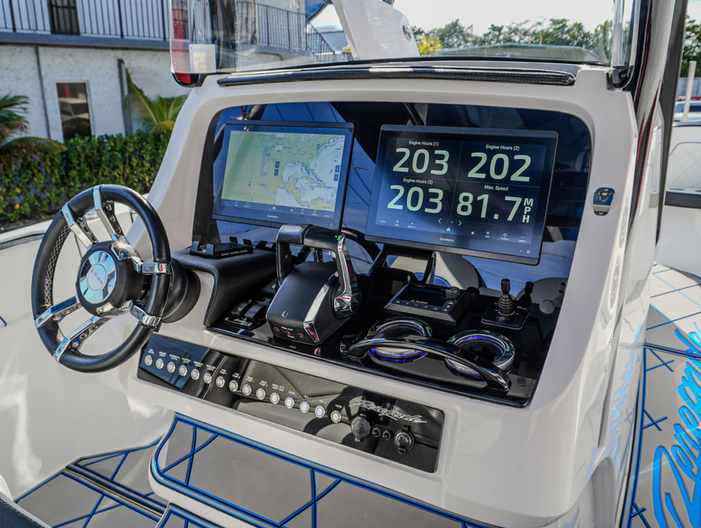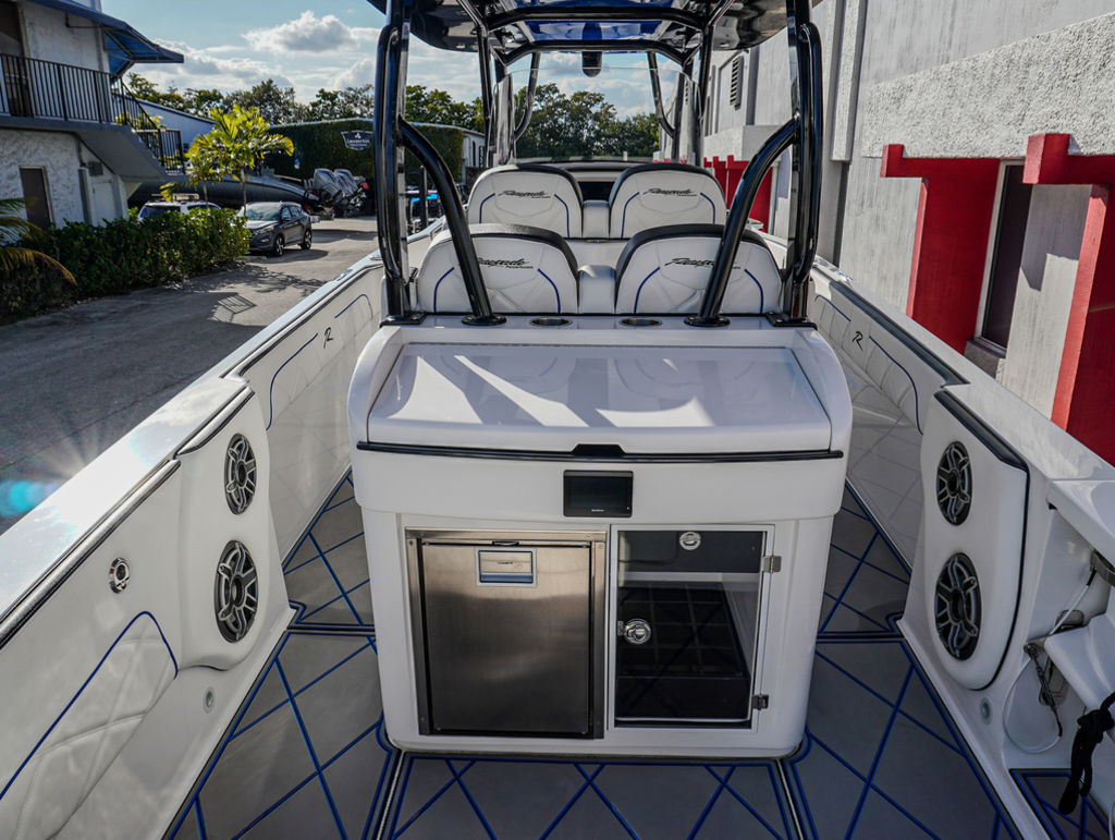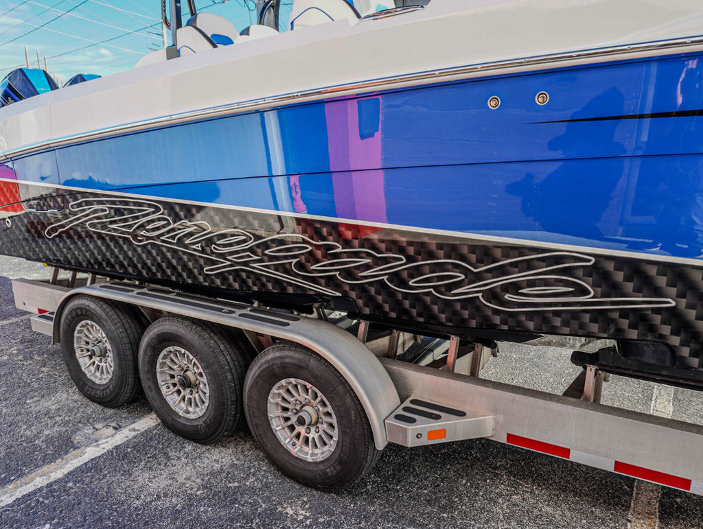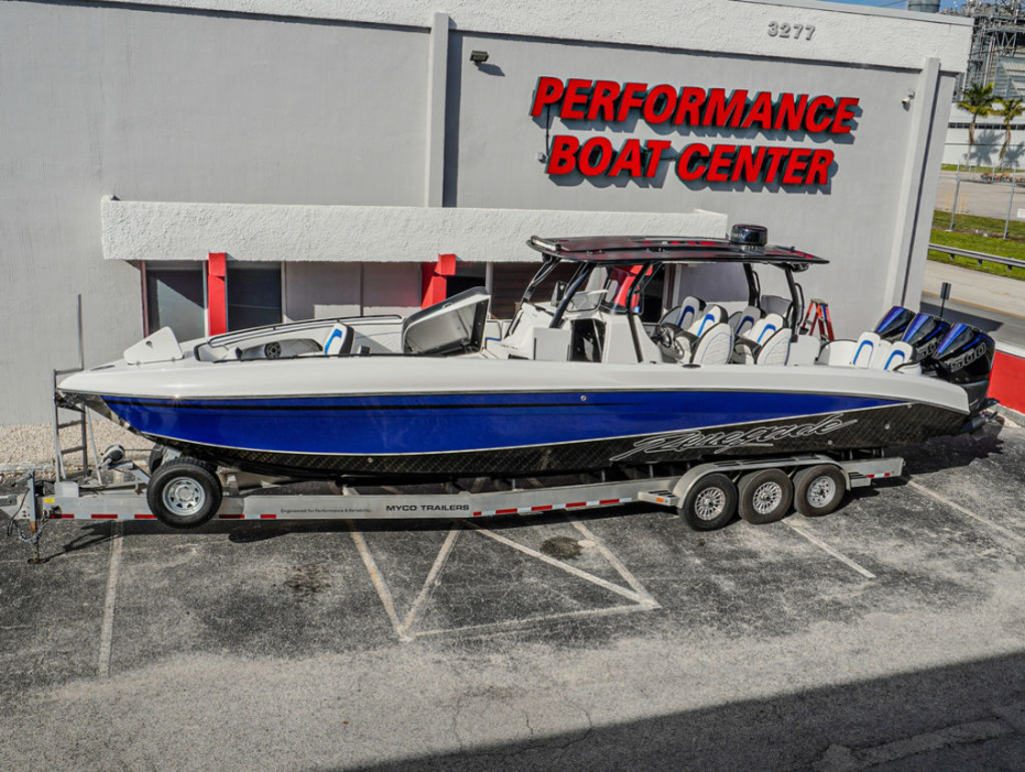2024 Renegade 38 Open, with triple Mercury 500Rs (205 Hours) and warranty until 5/2029! The aluminum triple axle Myco Trailer is included. This fully optioned Renegade has additional options such as Night Vision Camera, Light Bar, Dual Garmin GPS Units, Radar Dome, Garmin Display at the rear cockpit, Great Stereo System with JL Audio components, Cockpit Refrigerator, Air Horn, Upgraded paint with a fully painted hard top with skylights, Fresh Water Shower in Hard Top, Drop Down Side Door with Boarding Steps, Anchor Windlass System, and Bow Thruster. The boat is in excellent overall condition. Located in our Ft. Lauderdale Location for easy inspection. All Renegade 38s have a 9' beam making transport and storage easier. This Renegade is aggressively priced for a quick sale.