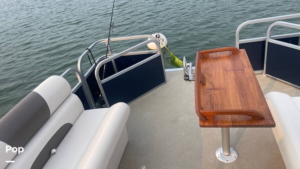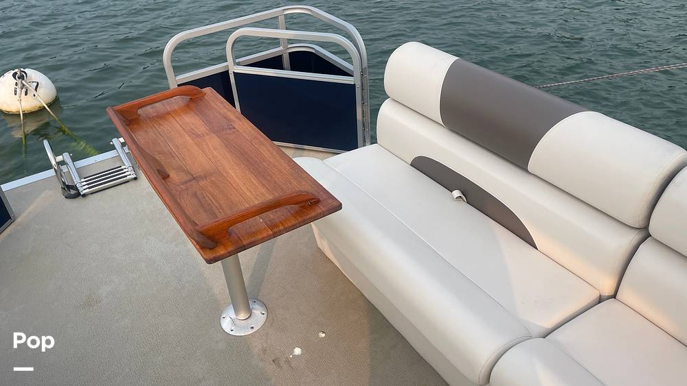 Enjoy shade under the 10' Bimini top, and relax around two installed cocktail tables - perfect for entertaining friends and family. A swim ladder provides easy water access for a refreshing dip.