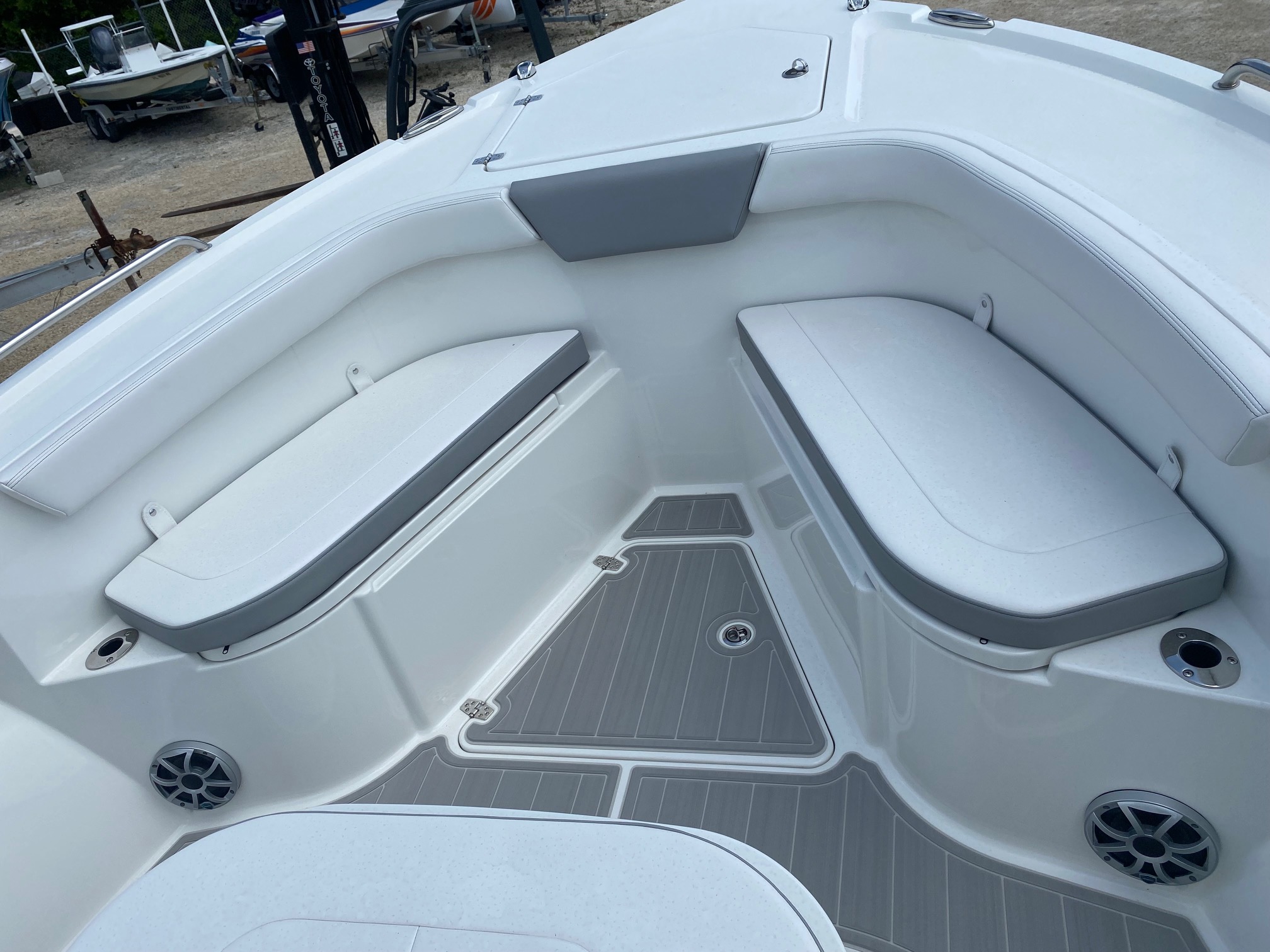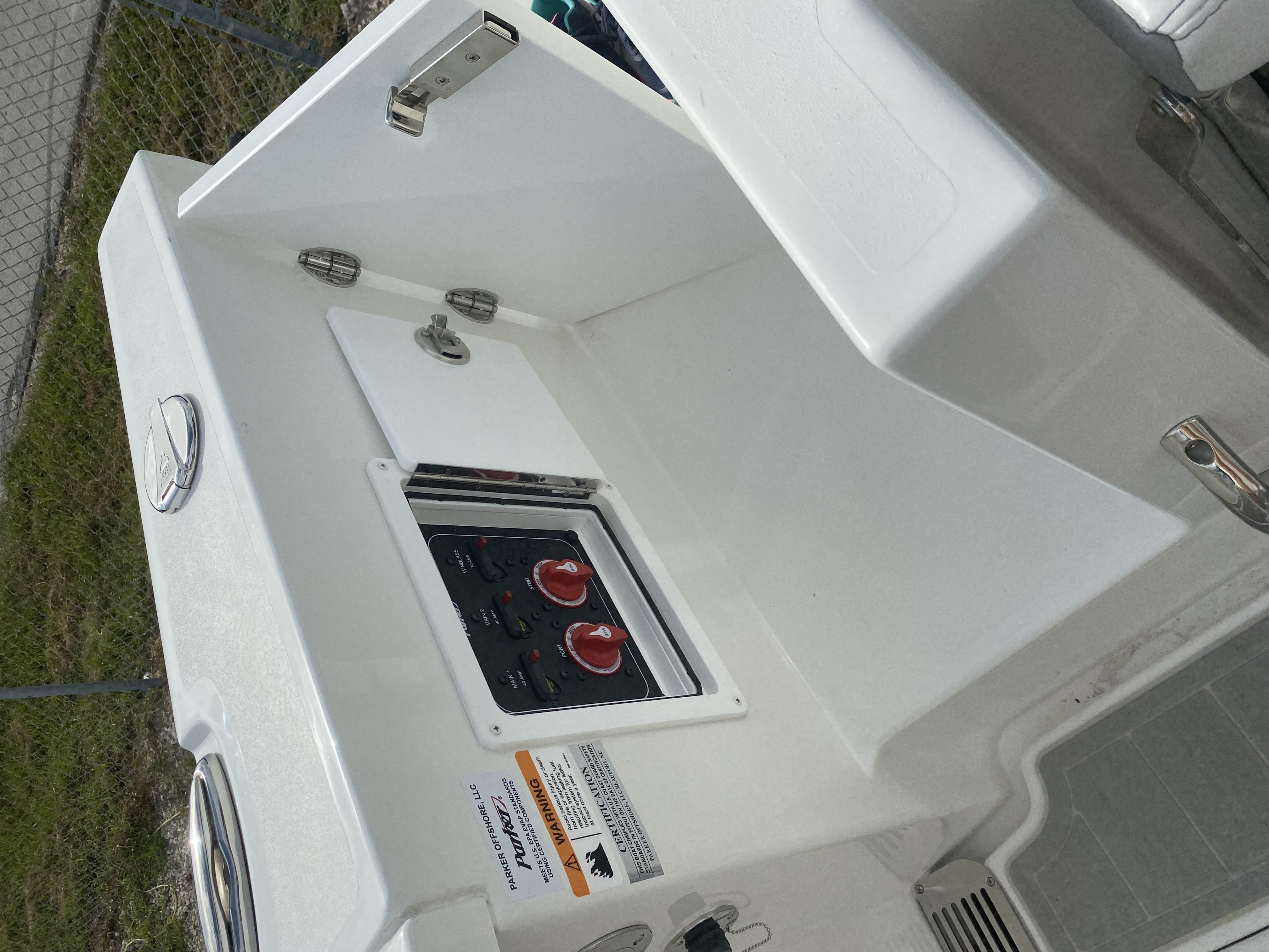 This 2024 Parker 2600 CC power by Twin Yamaha 200HP (F200XSA2) engines also includes a single Garmin 12” GPS package, anchor windlass, marine mat flooring, dockside pump out, a 2-bank battery charger, stereo upgrades, blue underwater LED and loads of other options. We also have trailers available, if needed.