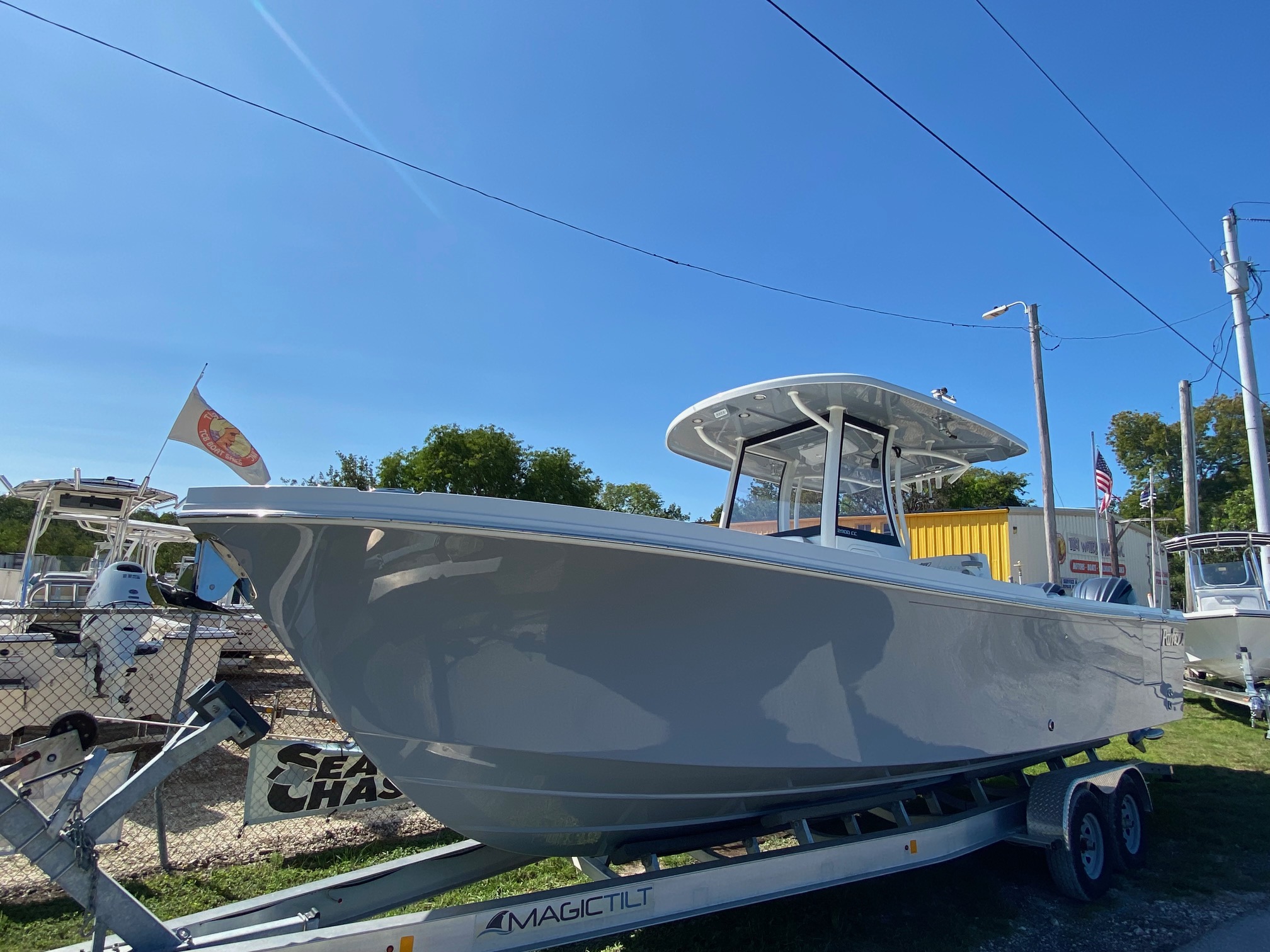 This 2024 Parker 2900 CC power by Twin Yamaha 300HP (F300UCB) also includes a twin Garmin 12” GPS package, anchor windlass, bow casting platform with cushion, dockside pump out and stereo upgrades and loads of other options.