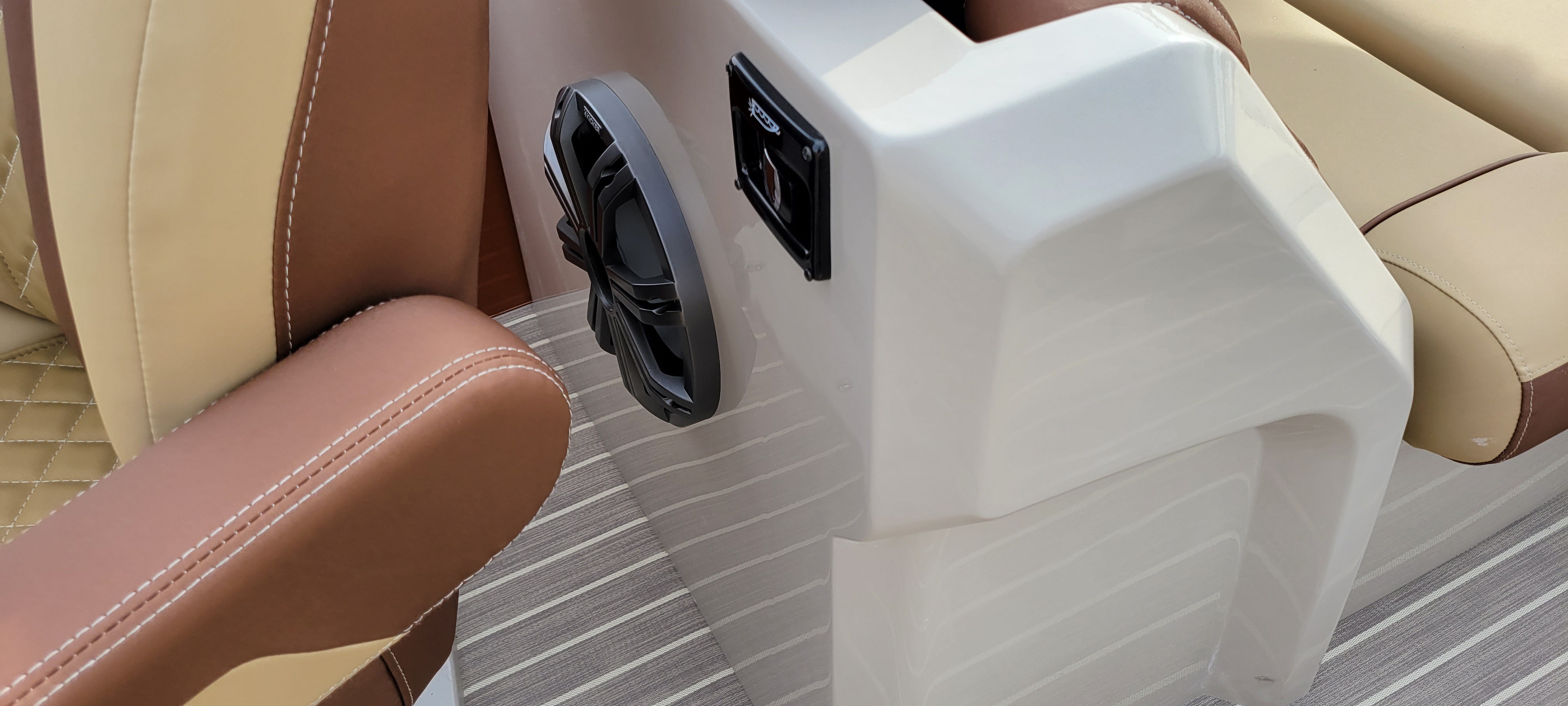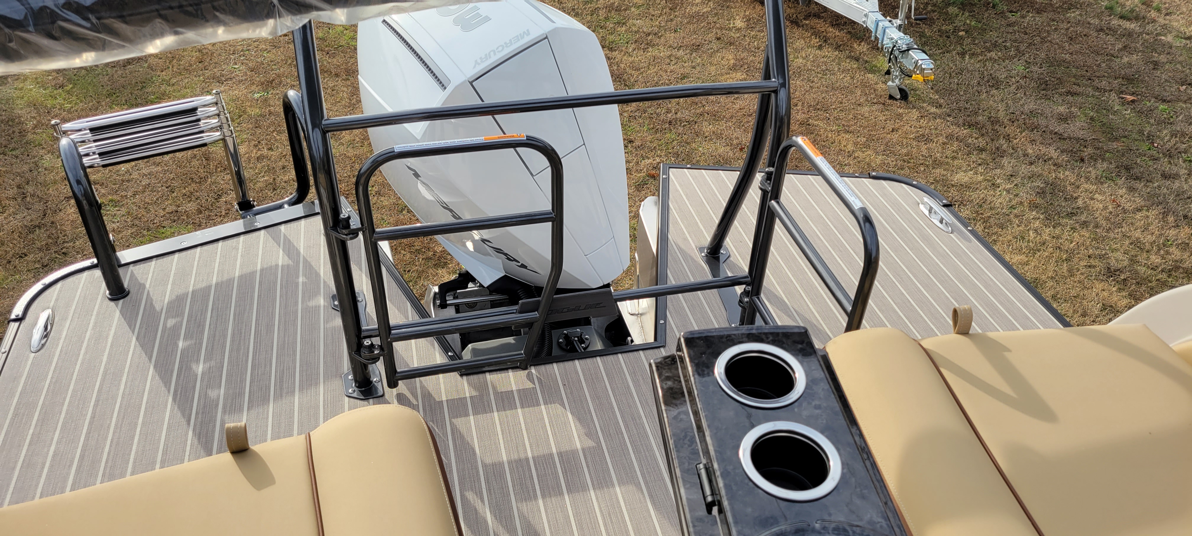 XT design including multi-positions seat module, integrated cooler, privacy enclosure, safety railing and ski tow bar