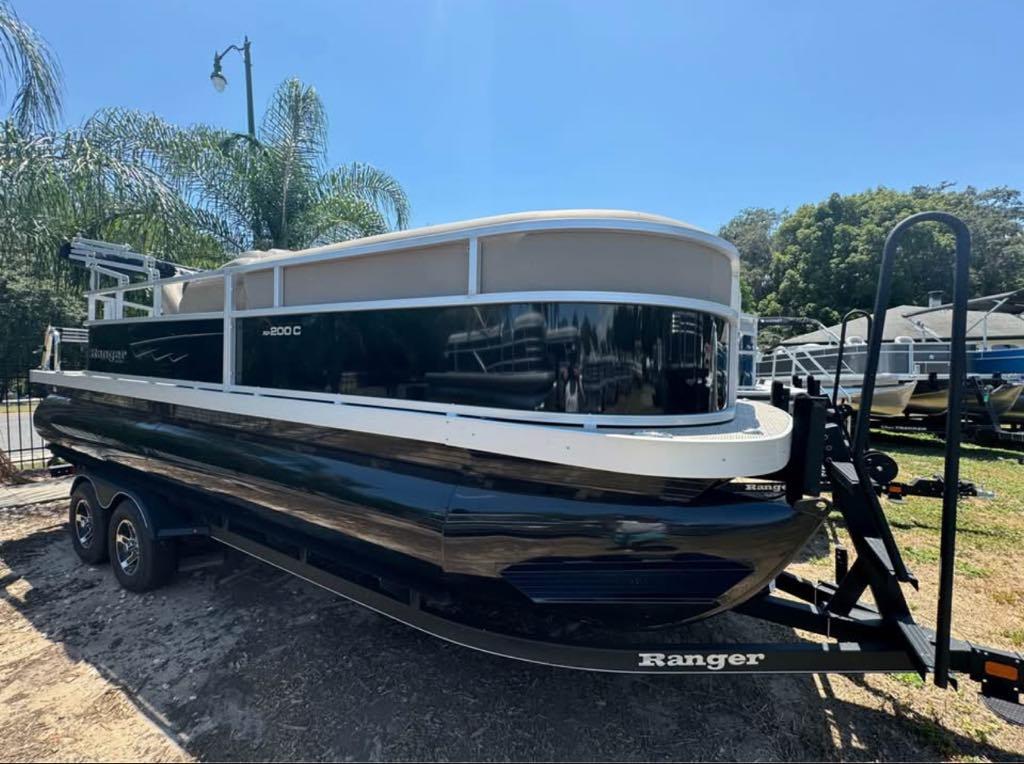 Price includes a tandem axle trailer with brakes. Mercury 90 HP The Ranger® Classic Series 200 C represents a pontoon that delivers quality, affordability and comfort in a well-rounded package that's fit for full days of family fun. The wide-open deck features a trio of lounges that enjoy plush seating and storage underneath. Wrapped bases meet woven PVC non-skid flooring that stretches across the whole deck. A full-width aft swim platform and boarding ladder are accessible by a latching gate. A port side entry gate is wheelchair accessible and latches silently and securely. The helm benefits from precision gauges, rocker switching and a conveniently located throttle that gives the captain well-rounded control and confidence. The Ranger Classic Series 200 C truly is where affordability meets capability.