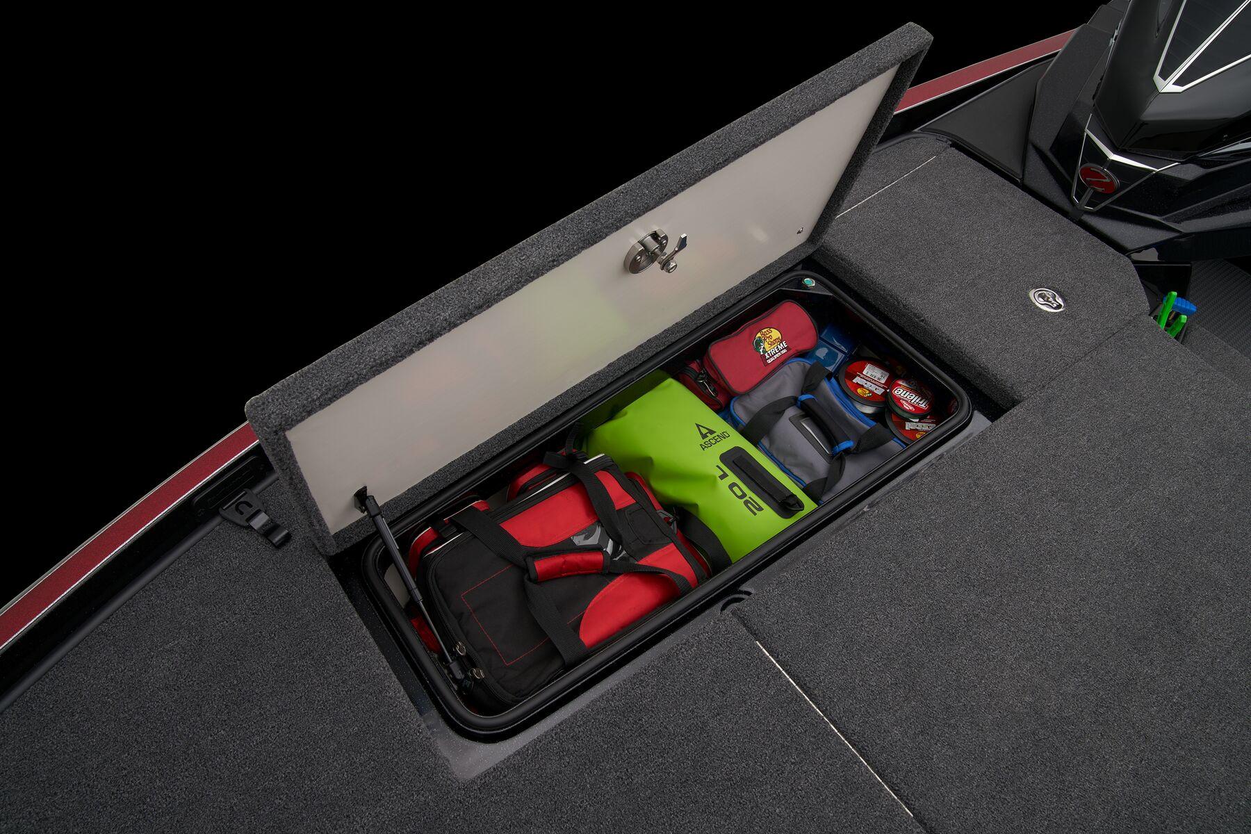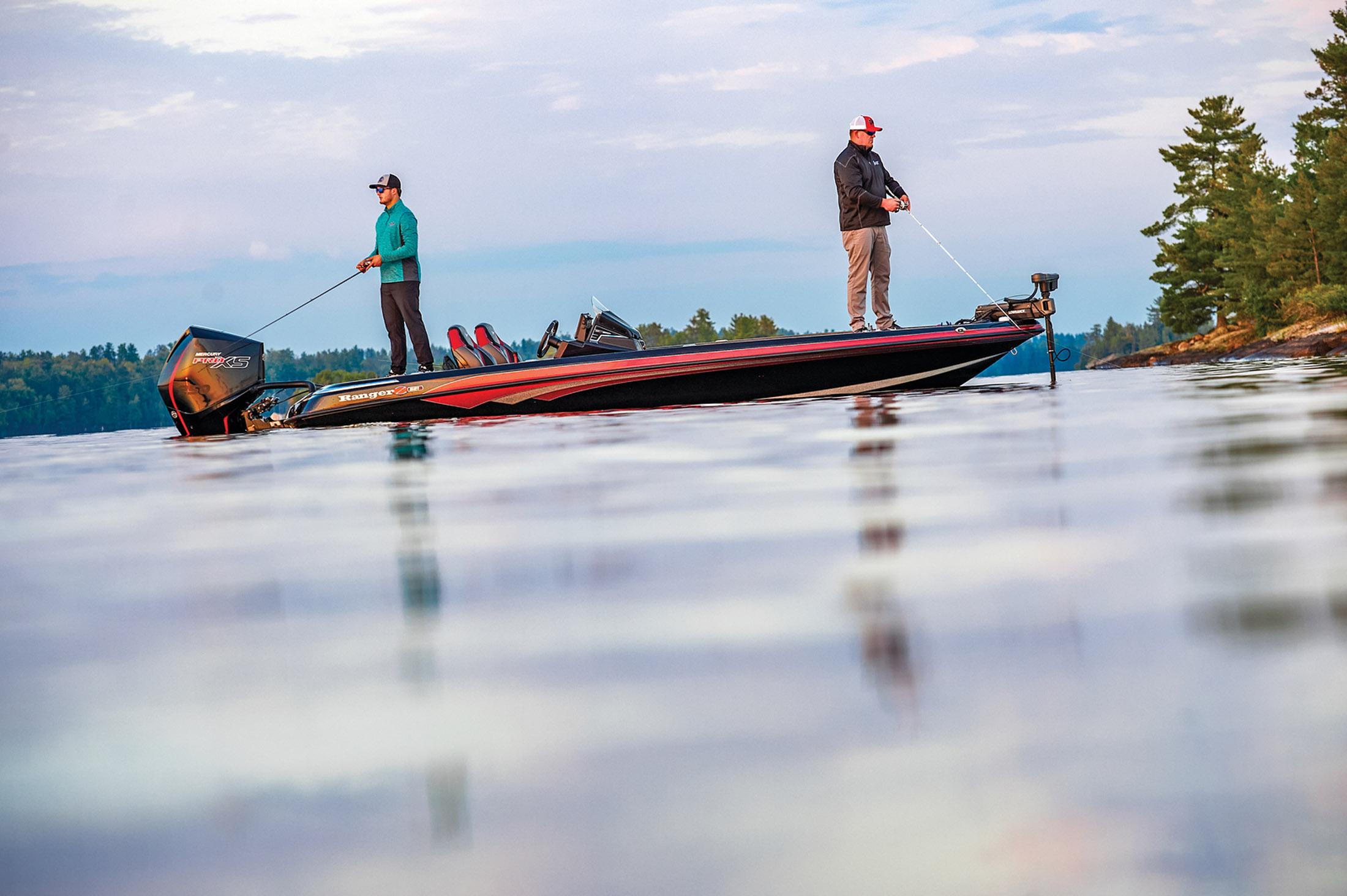 This model is available with a choice of color schemes and tailored packages, including a range of motor sizes. For more information, please reach out to Holiday Marine. Rest assured, it can be prepared for delivery within 3 weeks. Nation Wide Delivery The tallest order in the boating world is creating the next flagship Ranger bass boat. Doing so requires an extensive knowledge of—and appreciation for—the past, while putting forth complete dedication to delivering a paradigm shift in all-around performance, fishability, quality, safety, and style. The all-new Z521R represents countless hours of R&D, testing, and continuously raising the bar, and the boat you see here is not only unquestionably worthy of the Ranger name, but instantly evolves and elevates what a bass boat can be. The Ranger Cup Equipped package adds pro-selected options that let you hit the most daunting tournament trails with even more advantages. From bow to stern, hull to top cap, the Z521R has been tweaked, massaged, enhanced, and perfected across every inch with a passion for perfection. No element of the boat’s design, performance, quality, safety, or fishability was untouched as we crafted this next-generation legend. The culmination of this work has yielded an all-new boat with revamped and elevated all-around performance that melds with aggressive modern styling that sets this rig apart as the apex of bass boats. Real-world improvements include a perfected hull that delivers rapid lift onto plane and a stronger top end. We’ve also elevated the technology that comes standard on the Z521R. The Ranger RIDE system lets you monitor and control every critical function while a key fob permits quicker start up and enhanced security when you’re not nearby. The Z521R also features an industry-first push-to-start system that gets you to the next spot fast. The steering wheel and driver’s seat are heated with an adjustable lumbar support to match the Cloud Nine™ air-ride seating that is present in both seats. Long, cold, bumpy blasts across the lake just got a lot more doable. Deep within the Z521R is a reimagined core and stringer system that not only bolsters our One-Piece Feel Interloc™ construction but permits larger storage boxes for even more space. The rod boxes feature an all-new tiered shelf system for unmatched customization, flexibility, and capacity and the ability to hole sticks up to 9’. Every box features an automatic light sensor that cuts on LEDs when a lid if lifted. A larger day box and cooler feature the same construction as today’s premium coolers for daylong ice. We invite you to peruse the photo galleries below to further familiarize yourself with the Z521R then contact your local Ranger dealer to see this newest legend for yourself. The Z521R carries more advancements in performance, technology, fishability, and style that not only set it apart from the crowd but leads it.