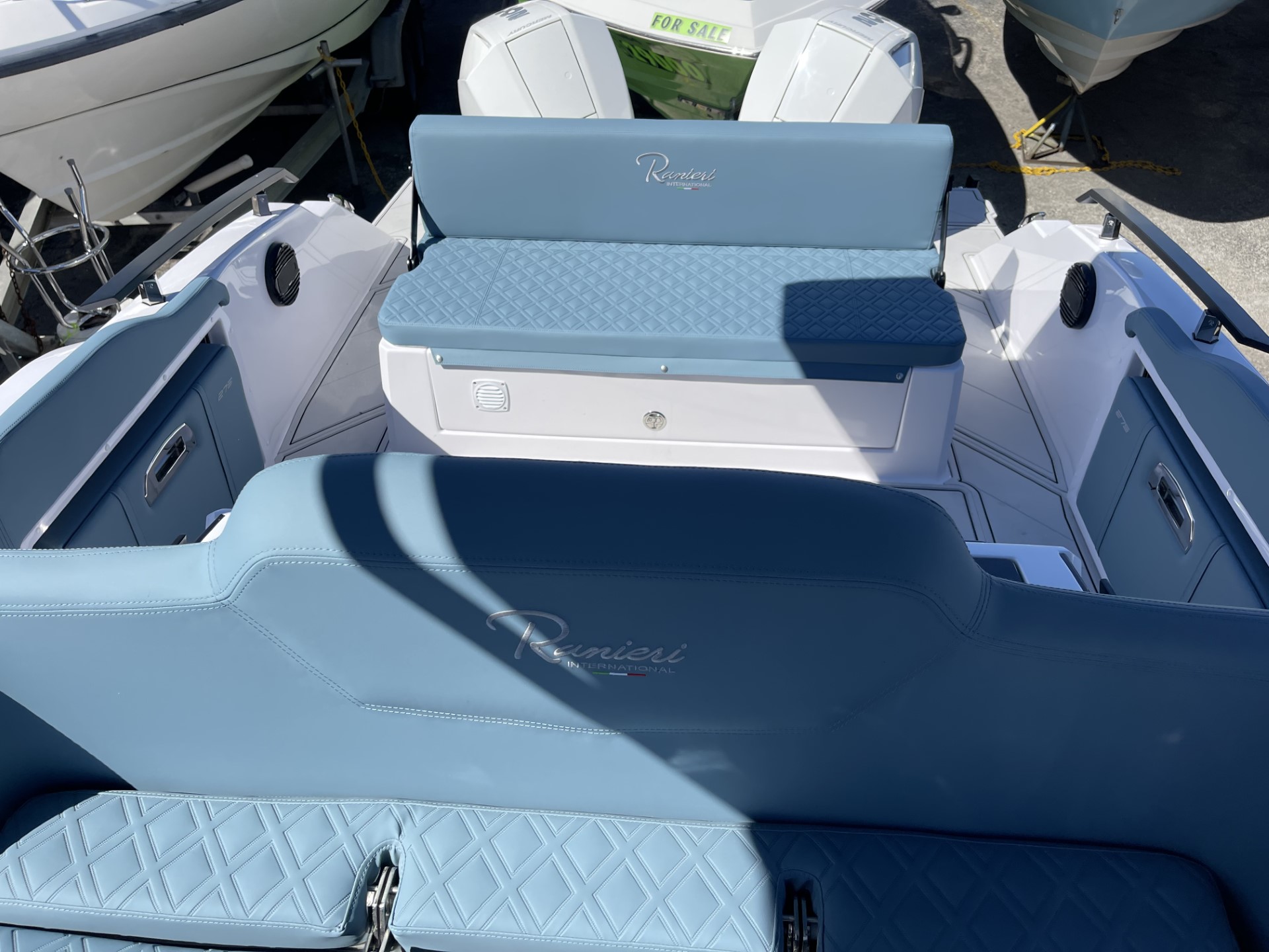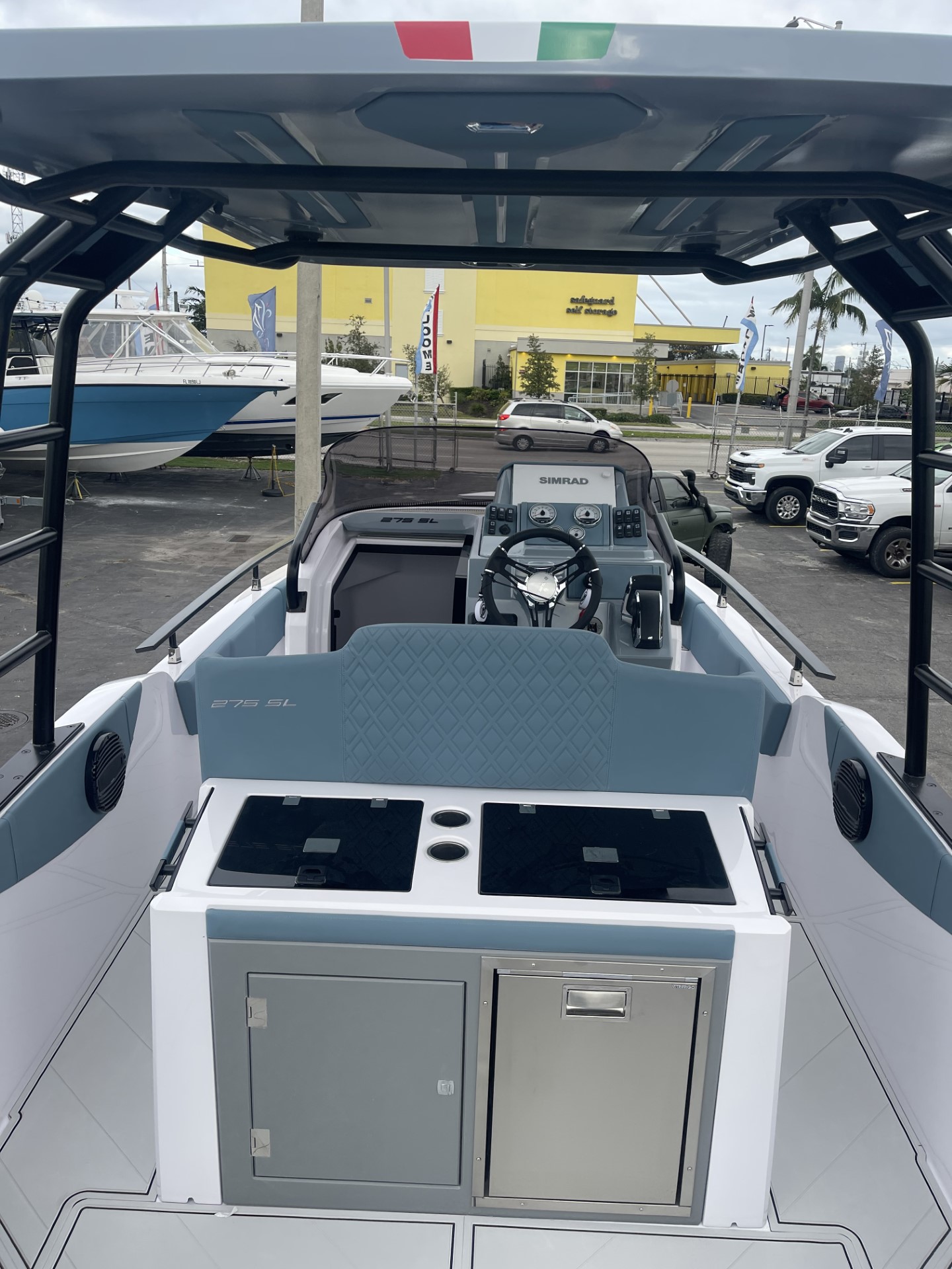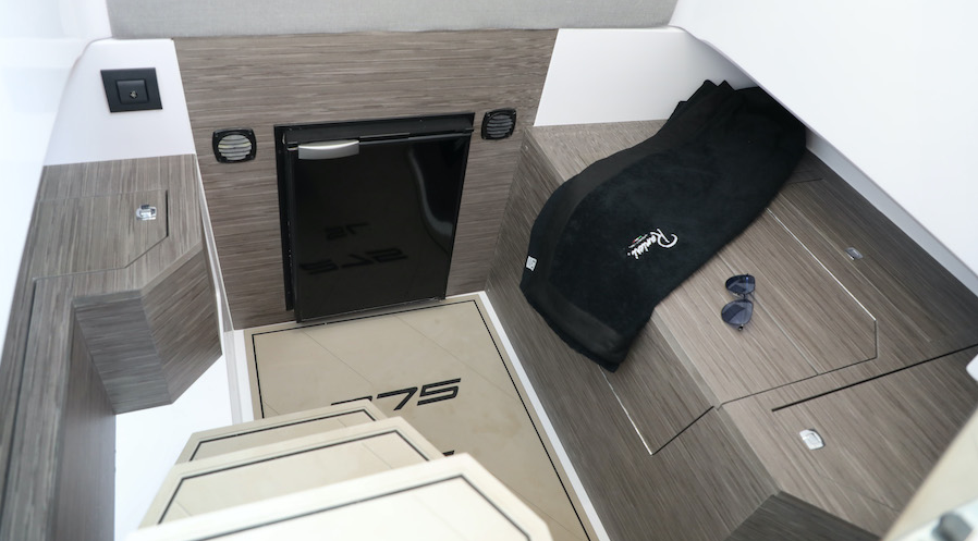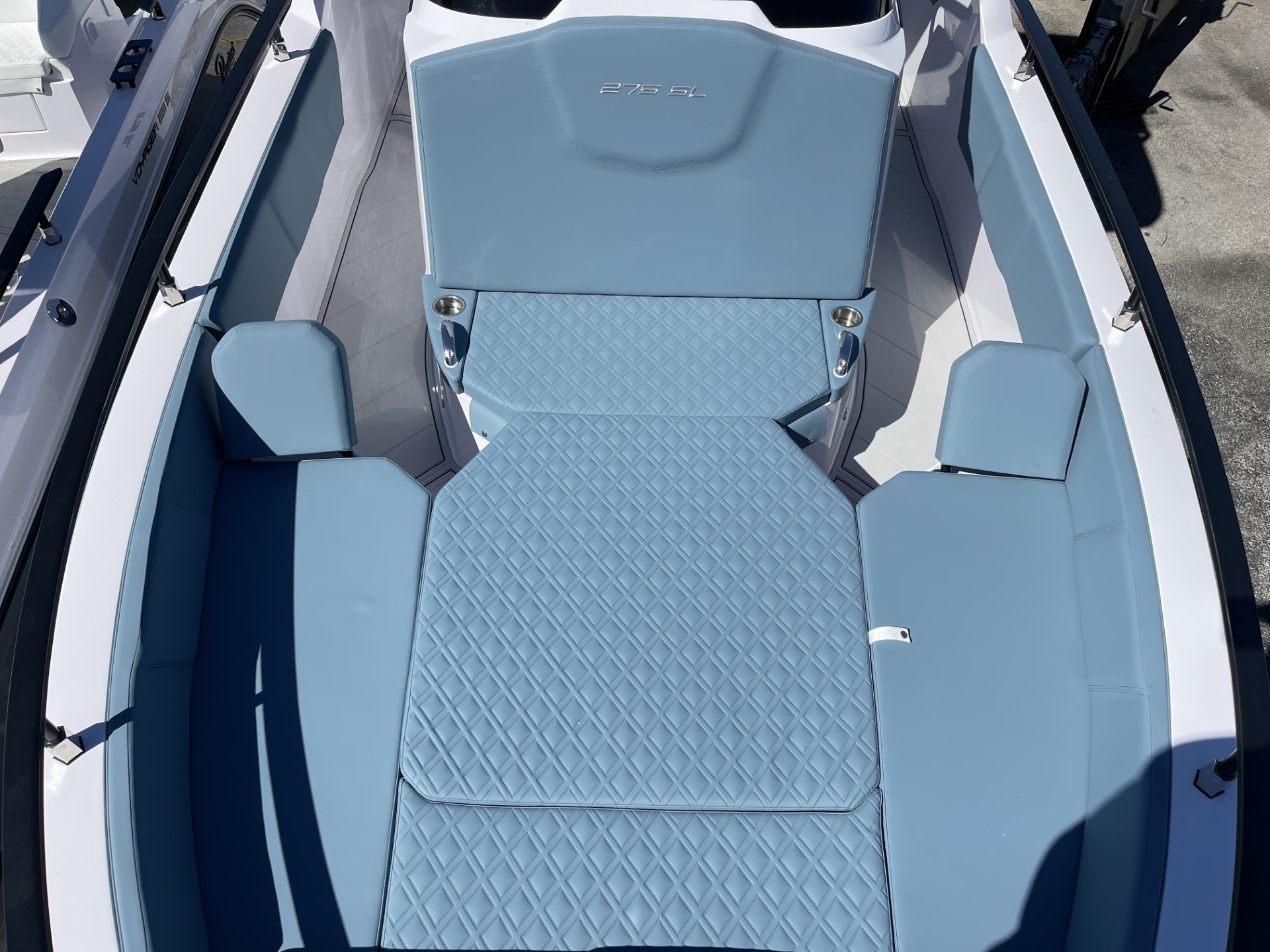 Newly designed Sundeck, and strong in the family feeling of Ranieri’s NEXT range into which it fits (filling the gap between the Next 240 and the Next 285 SL, the new 275 SL presents generous spaces for size, offering a feature-rich and complete deck for weekender use.