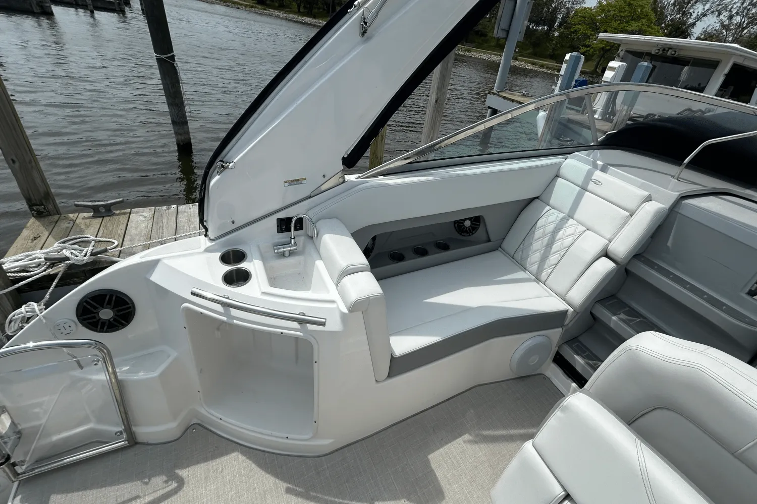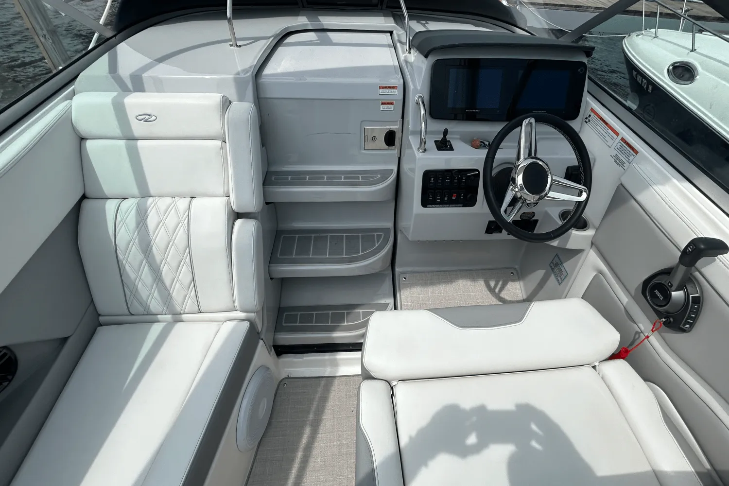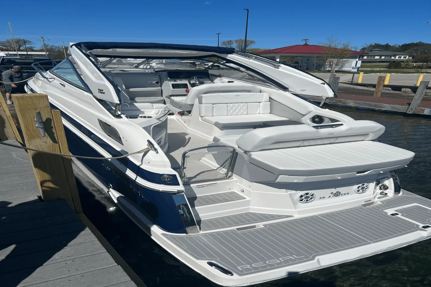 2024 Regal 280 Express – Comfortable Cruising Made Easy The 2024 Regal 280 Express is built for boaters who want comfort, style, and solid performance in one well-rounded package. With a dependable Volvo Penta V8 350 EVC2 DP engine, it delivers smooth, responsive power that’s perfect for day trips or weekend getaways. Inside, you’ll find a cozy cabin with sleeping space, a compact galley, and a private head — great for overnight stays. Up top, the cockpit is set up for relaxing or entertaining, with comfortable seating, easy-to-use controls, and a large swim platform for fun on the water. Whether you’re cruising the coast or spending a quiet night at anchor, the Regal 280 Express makes it easy to enjoy your time on the water.
