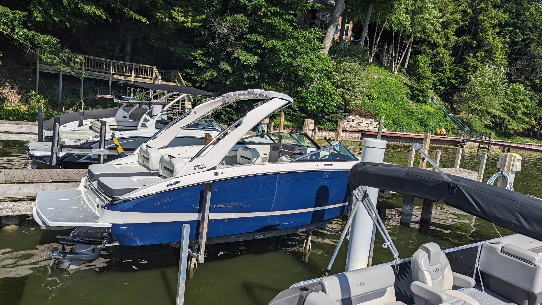 2024 Regal LS6 – One Owner | Lift Kept | Spring Lake Beautiful, one-owner Regal LS6 that has been lift-kept and well maintained on Spring Lake, MI. For boaters needing to stay under the 26' restriction, this boat is titled at 25'11" - giving you the space and performance of a 26-footer while remaining compliant. 100 hours on the Volvo V8 350HP. Well-equipped with desirable options including: - Bow & cockpit covers - Cockpit Seagrass Mat - Dual Battery Switch with Tray - Transom Shower & Pressure Water Package - Trim Tabs - Transom Trim Switch - Pump Out Head - Port Light - Windlass Anchor - Bow Walk-Thru doors - Docking Lights - Fender Clips - Dual 9" Glass Cockpit Display - Flag Pole - PowerTower - White - Underwater PowerPlatform * No Trailer Included