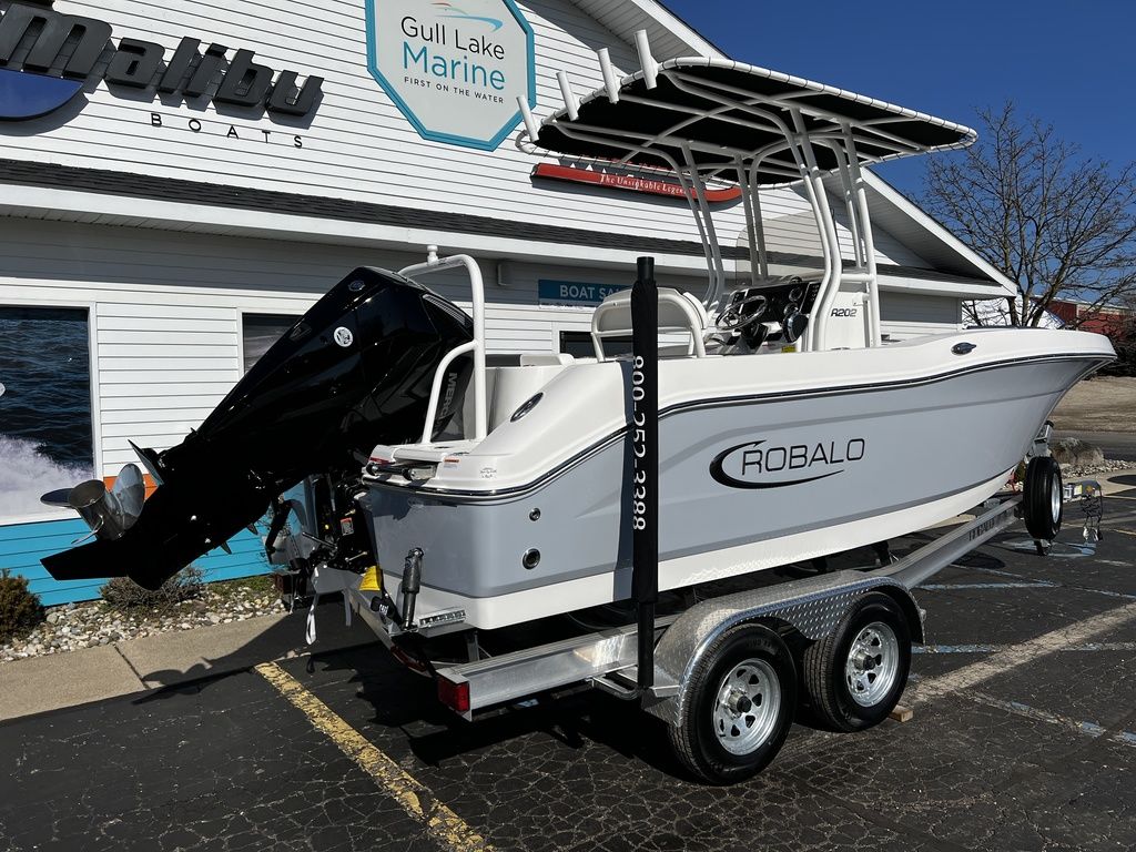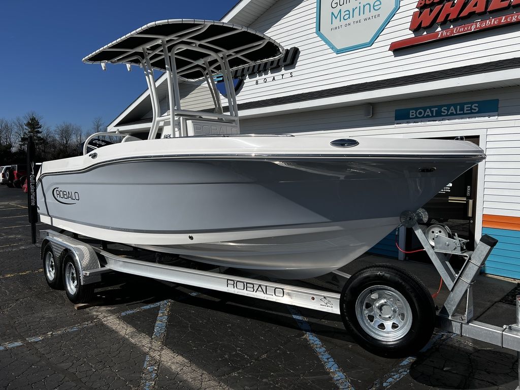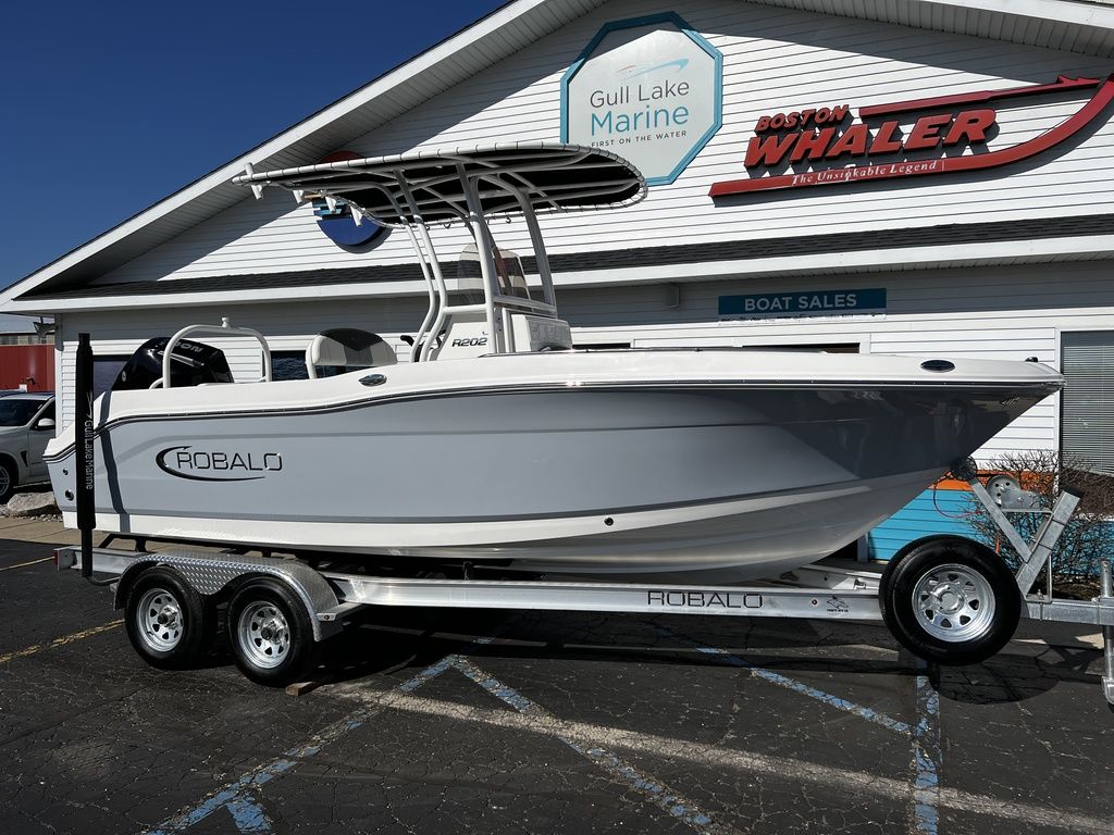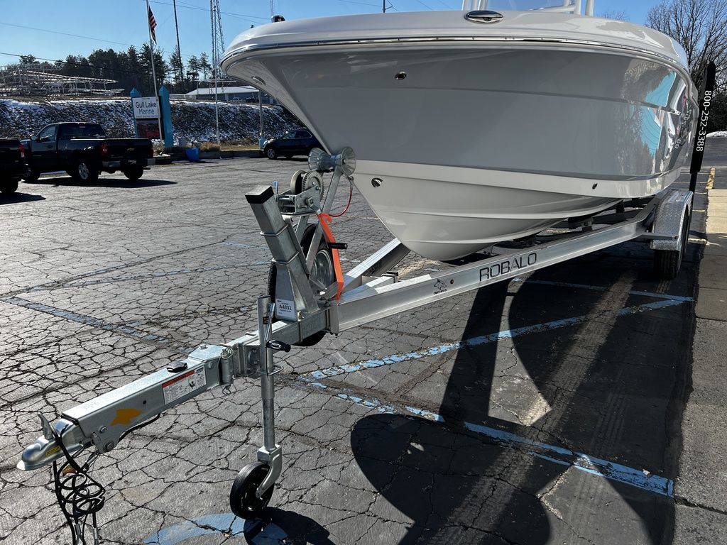 Whether it's a family cruise or landing a trophy fish, the Robalo 202 Explorer can handle it all. Equipped with center console versatility and seaworthiness. The 202 Explorer has the style, function, and luxurious appointments for all-day family boating that the Robalo name is known for.Optional Equipment:Wide Band Alloy Gray HullHarbor Gray Cockpit InteriorPowder Coated T-Top w/ Black CanvasMooring CoverTilt SteeringDual Battery SetupSimrad Go7Trim TabsPorta PottieBow Filler CushionContact the Gull Lake Marine sales team at sales@gulllakemarine.comThanks for viewing!