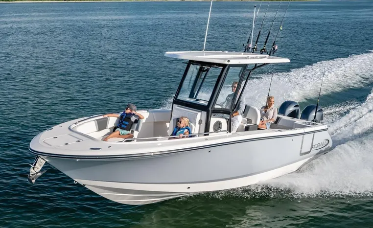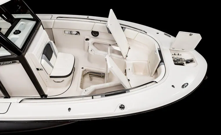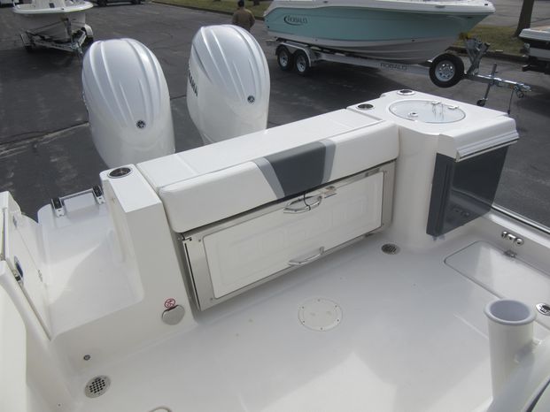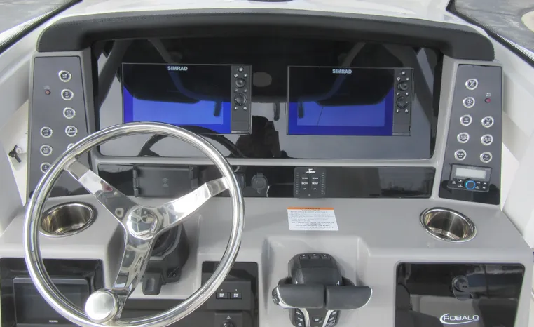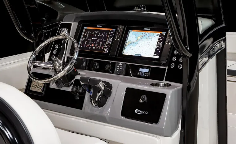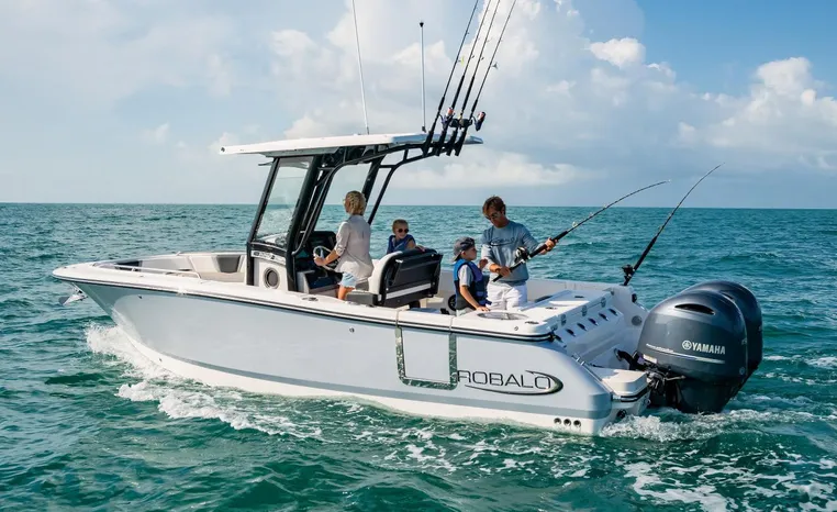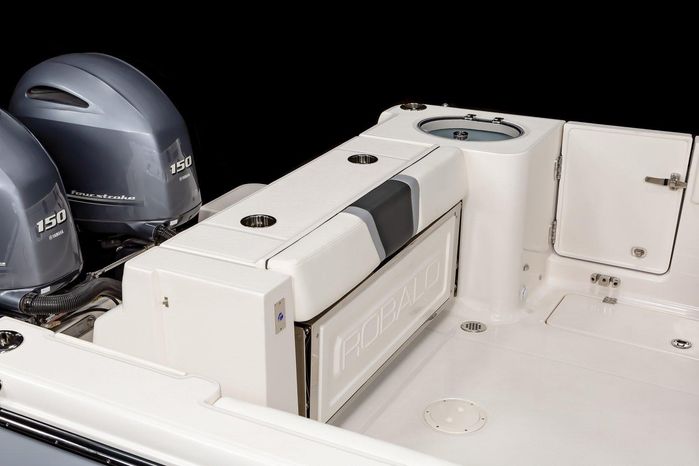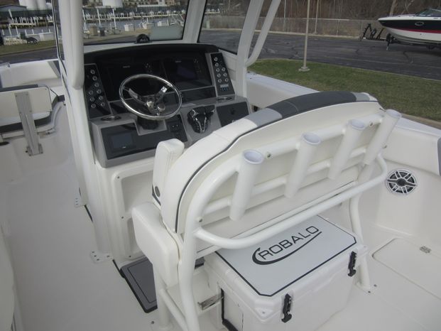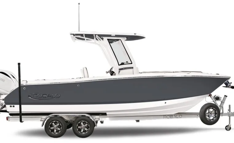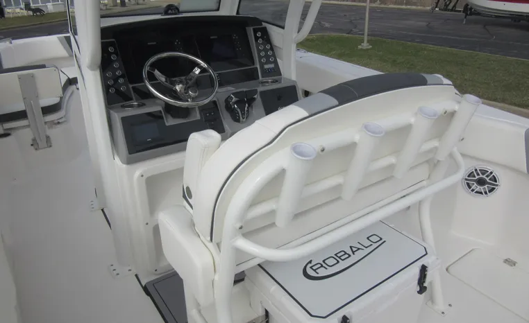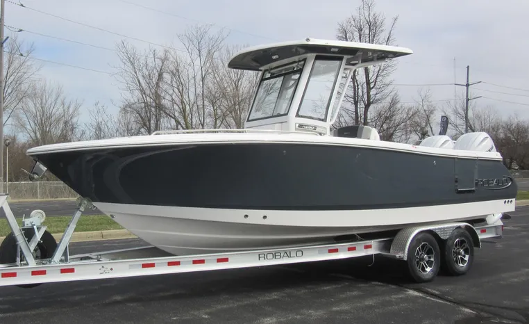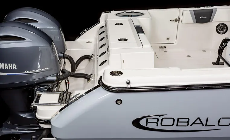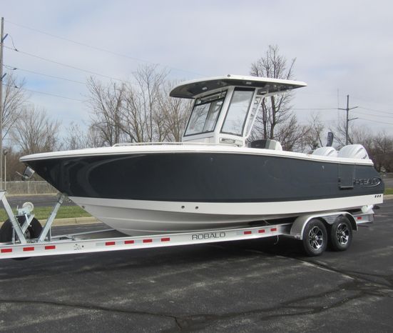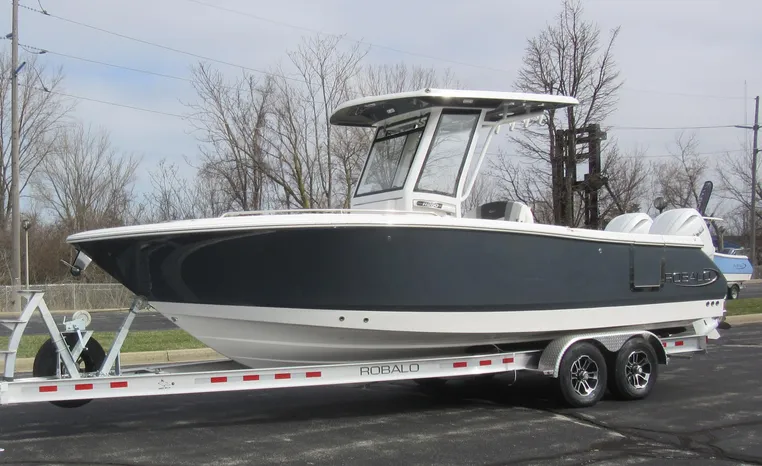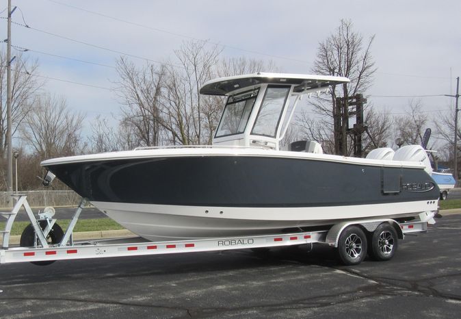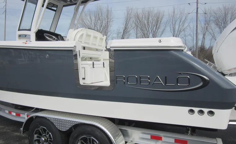On Display Now, see this superbly equipped Robalo R250 Center Console. Featuring Robalo's latest design elements, the R250 is truly a big-water boat, with a nine-foot two-inch beam and the patented Hydro-Lift hull design plus the power of twin Yamaha 200's.