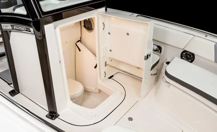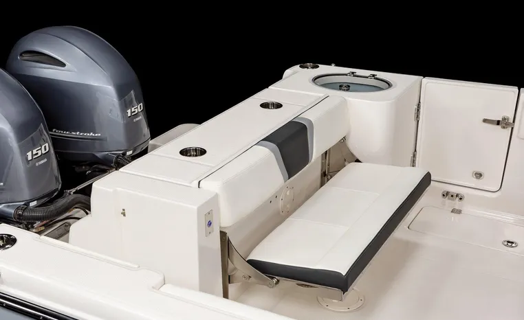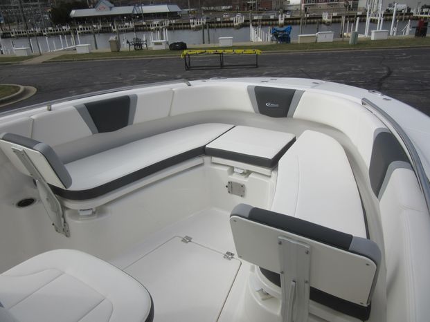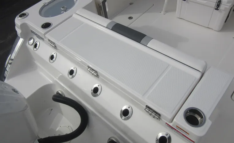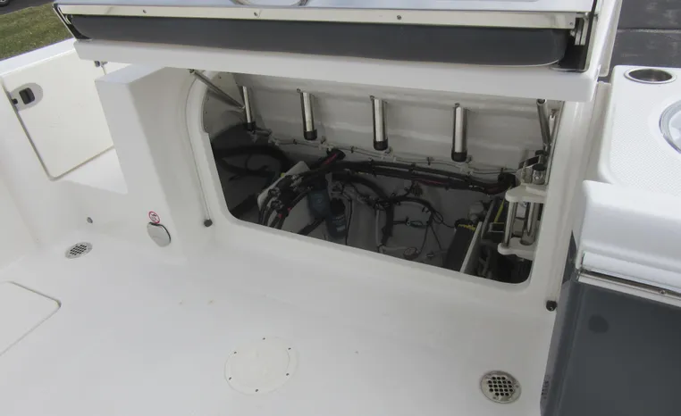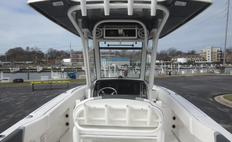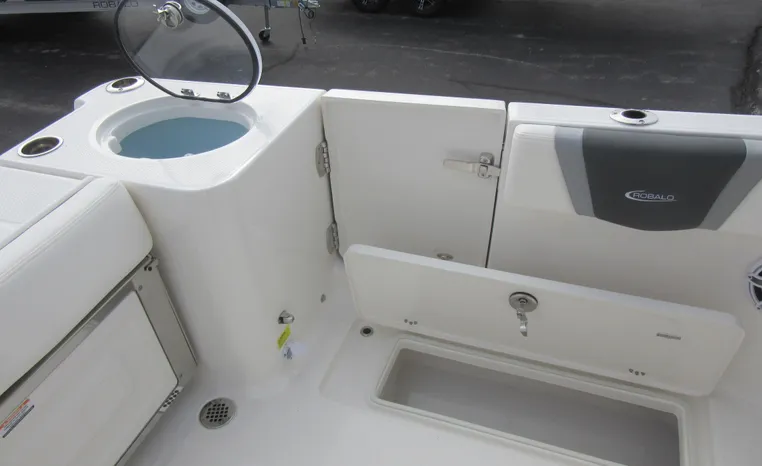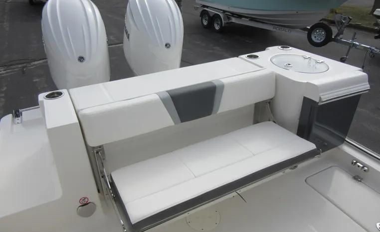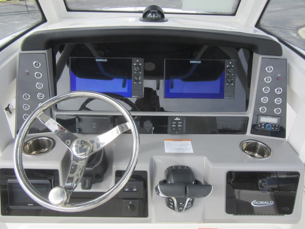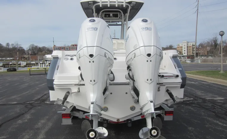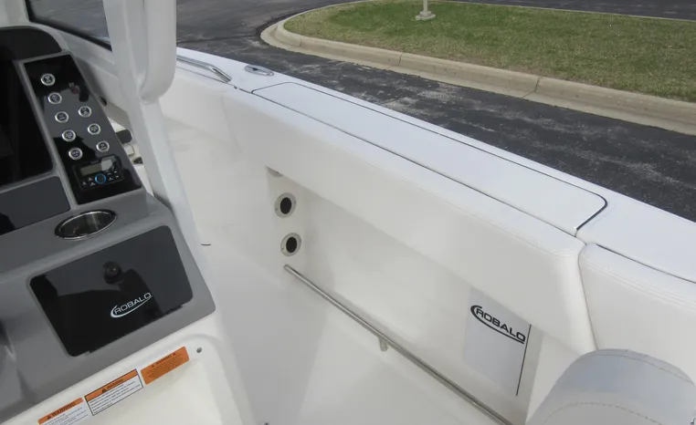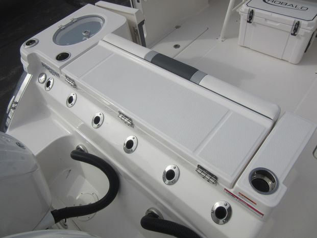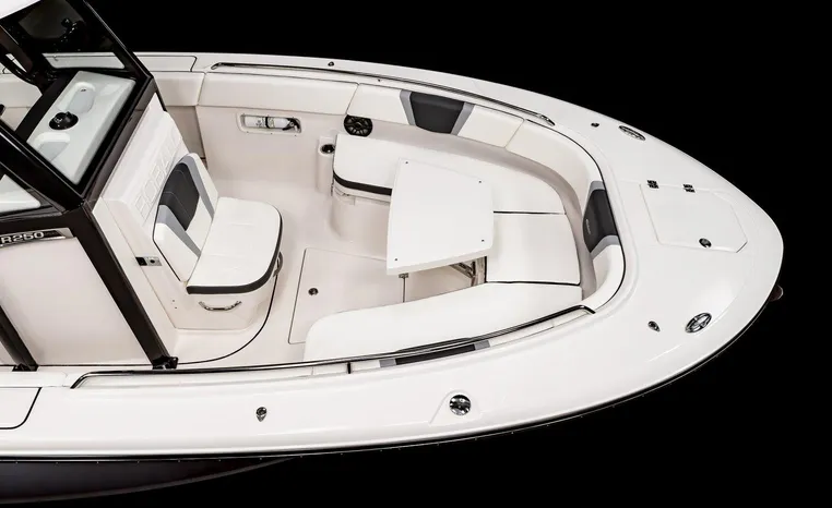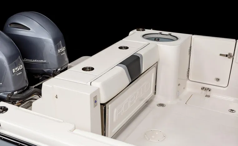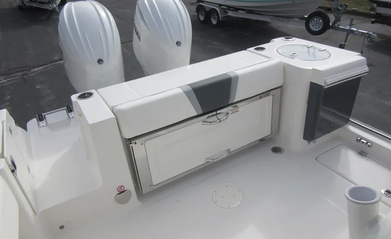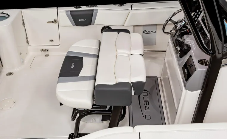 On Display Now, see this superbly equipped Robalo R250 Center Console. Featuring Robalo's latest design elements, the R250 is truly a big-water boat, with a nine-foot two-inch beam and the patented Hydro-Lift hull design plus the power of twin Yamaha 200's.