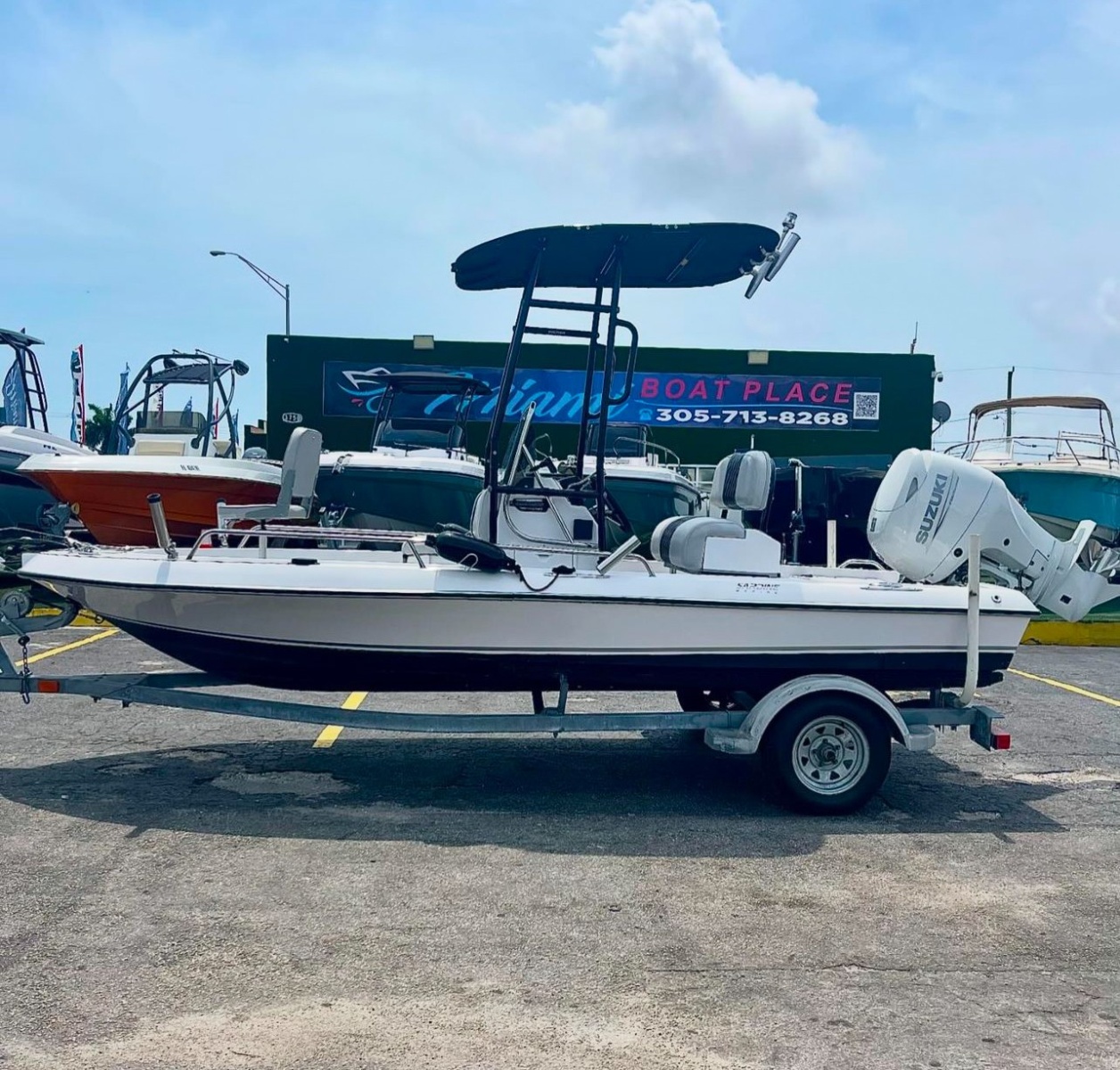Sardine Marine Boat Model 175 Bait [17.5 Ft.] with 90 HP Suzuki Outboard and galvanized trailer.