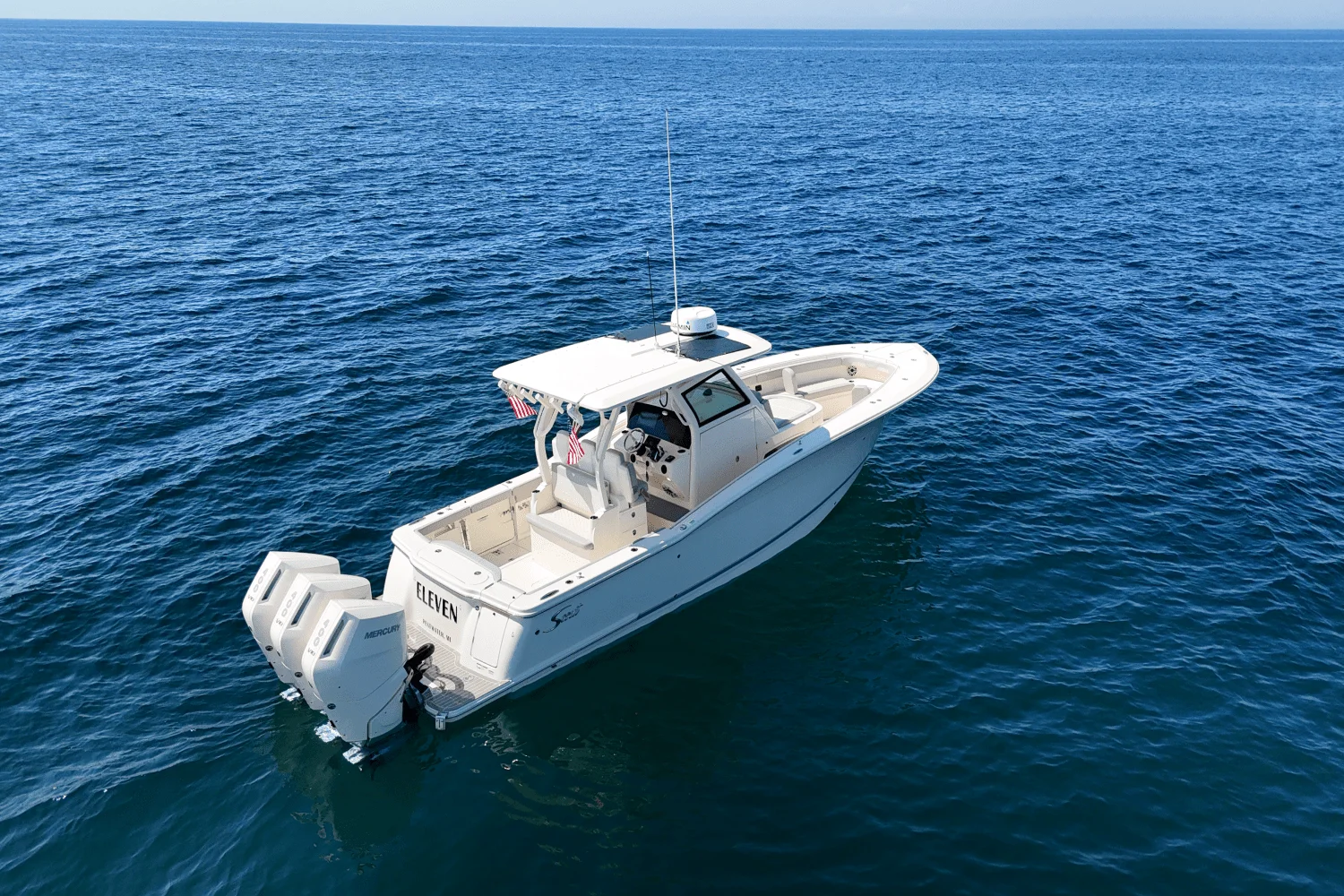 Meet the 2024 Scout 355 LXF, a top-tier performance center console with under 40 hours on the Mercury V10 400hp Verados and used exclusively in fresh water. It effortlessly hits speeds over 72 mph, providing the fastest and most exhilarating ride in its range, while offering the smoothest, driest experience thanks to its advanced variable-degree stepped hull and extensive use of carbon fiber construction. Designed for both performance and comfort, this boat is equipped with joystick piloting as well as full autopilot. It’s turnkey and ready to explore, combining cutting-edge technology, premium comfort, and remarkable power for your ultimate boating experience. Options include: -Custom Triple axle aluminum Phoenix trailer included