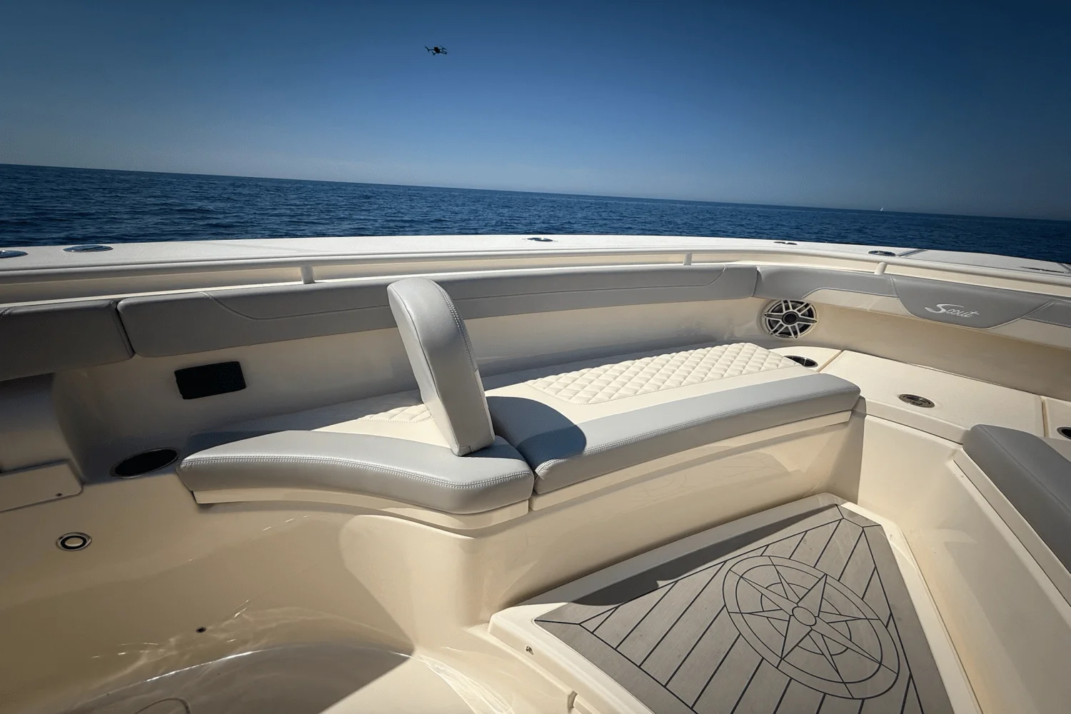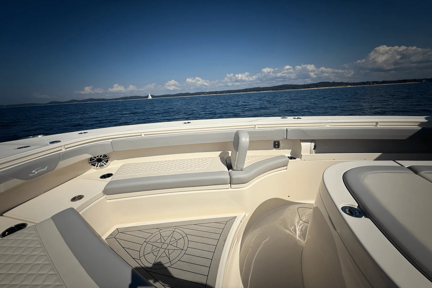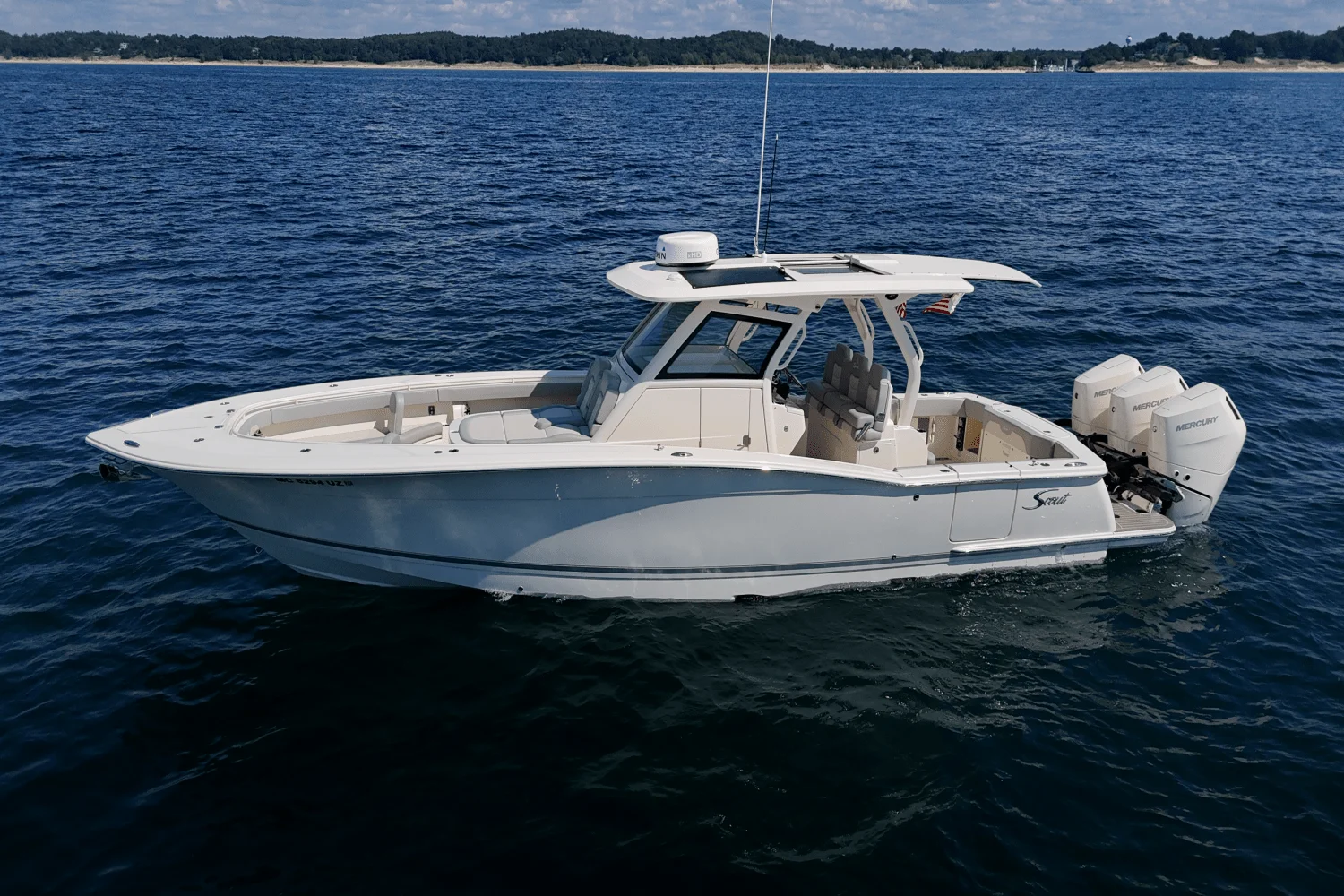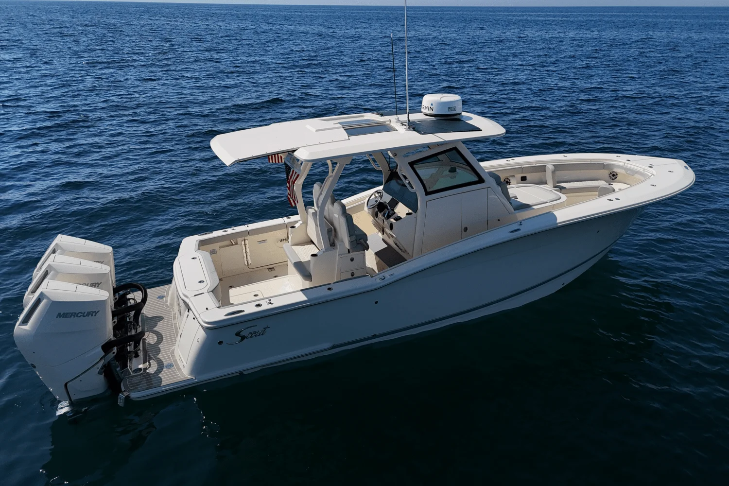Meet the 2024 Scout 355 LXF, a top-tier performance center console with under 40 hours on the Mercury V10 400hp Verados and used exclusively in fresh water. It effortlessly hits speeds over 72 mph, providing the fastest and most exhilarating ride in its range, while offering the smoothest, driest experience thanks to its advanced variable-degree stepped hull and extensive use of carbon fiber construction. Designed for both performance and comfort, this boat is equipped with joystick piloting as well as full autopilot. It’s turnkey and ready to explore, combining cutting-edge technology, premium comfort, and remarkable power for your ultimate boating experience. Options include: -Custom Triple axle aluminum Phoenix trailer included