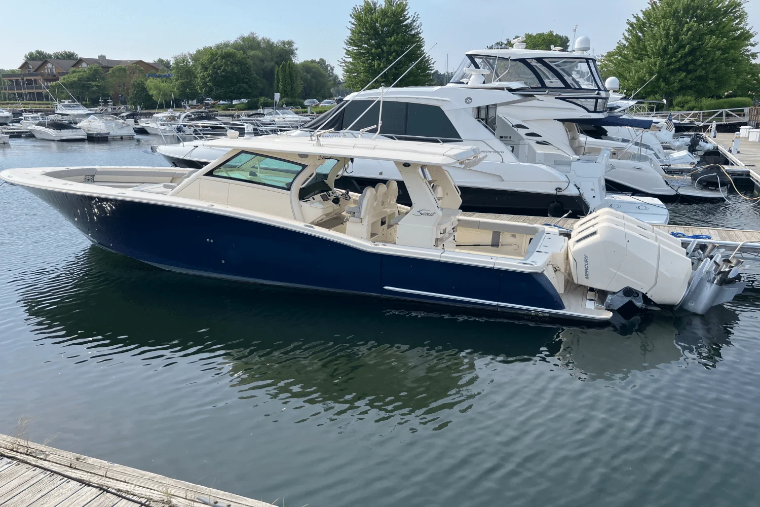 $969,000 – Lowest-Priced 425 LXF on the Market | Immediate Opportunity Offered at an aggressive $969,000, this 2024 Scout 425 LXF represents the best value currently available and is priced to be the next boat sold. Powered by triple Mercury 600 HP outboards with only 200 hours, this vessel includes all current factory updates and delivers exceptional performance, reliability, and luxury. Loaded with premium options, this 425 LXF is built for serious offshore capability and effortless entertaining. A full Garmin electronics suite provides advanced navigation and situational awareness, while the SeaKeeper gyro stabilization ensures a smooth, comfortable ride in any conditions. The onboard 8 kW generator supports extended trips, and FLIR thermal imaging adds a critical layer of safety for night and low-visibility operation. Underwater lighting enhances both aesthetics and functionality after sunset. Meticulously maintained and turn-key ready, this Scout offers a rare chance to own a nearly new flagship model at an unmatched price point. Motivated owner — serious inquiries encouraged.