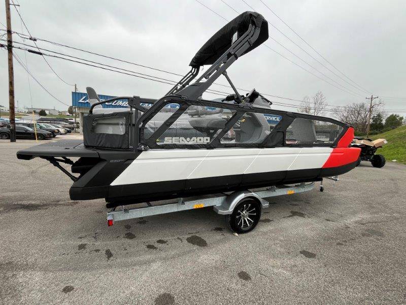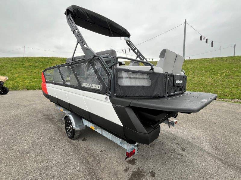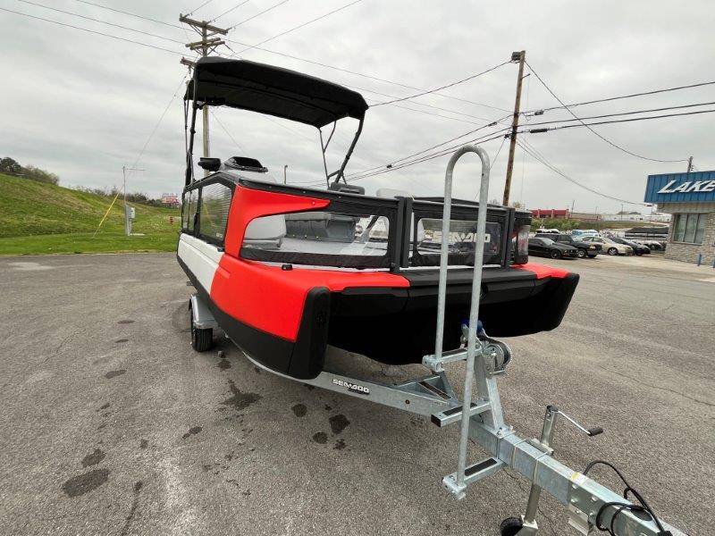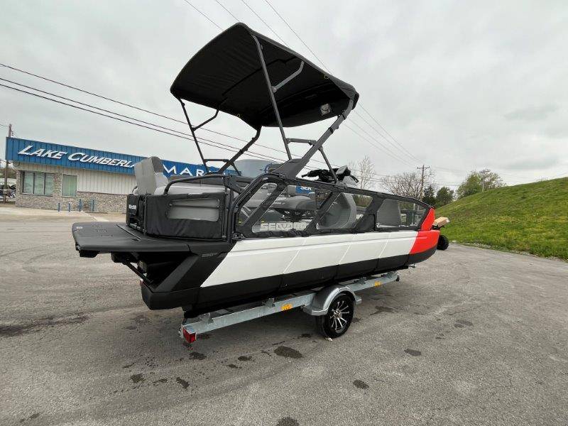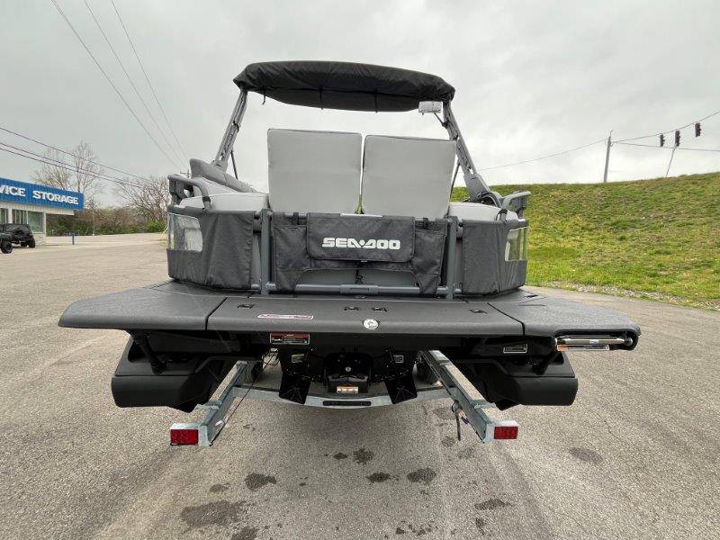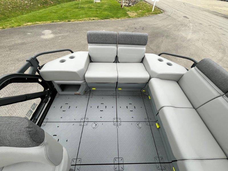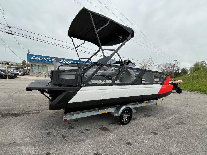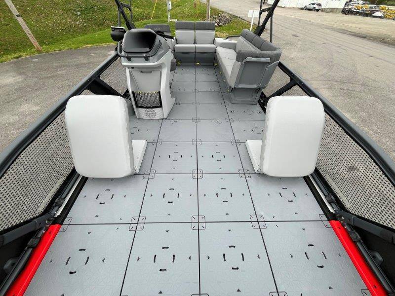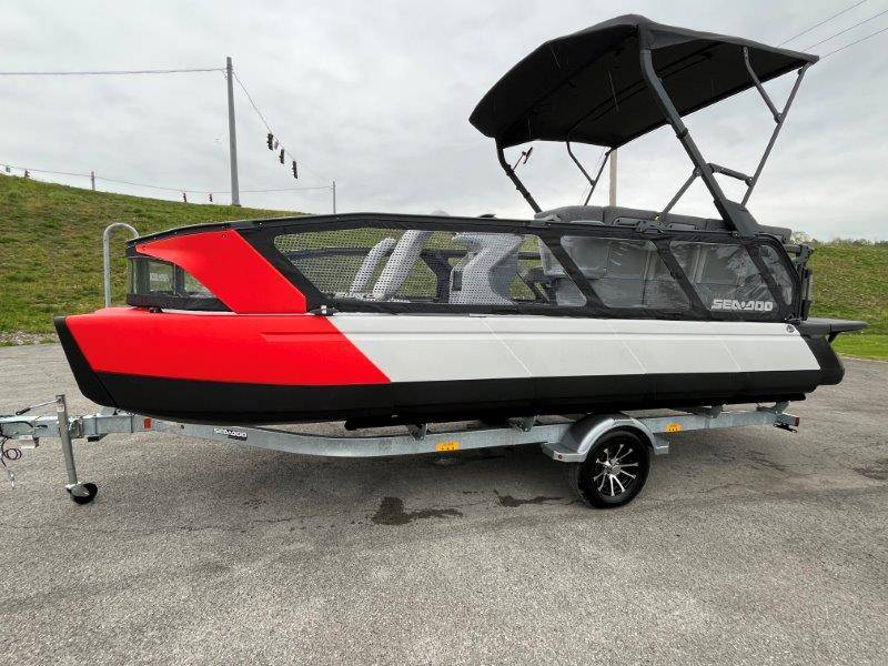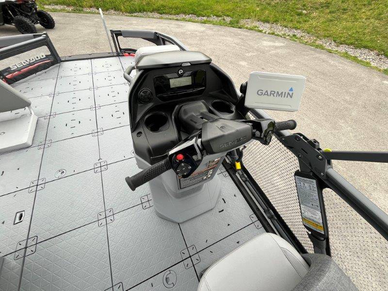 Love being in the water as much as on the water? The Switch Sport brings fast-paced fun to life. Readily equipped for watersports with ski mode, inflatable holder and rearview mirror, the fun never ends. The Switch Sport 21 is the perfect party deck for water lovers. With capacity for 10, there's plenty of room for friends and family to enjoy all the thrills and action out on the water together. Features may include: Trailer Included Ready to go All Switch boats come complete with high-quality, powder coated trailer included straight from the dealership. Galvanized trailer finish is also optional. Nothing Quite Like It Unmistakable style and handling There’s nothing quite like being seated behind the unique handlebar controls of the Switch. Intuitive control with Intelligent Brake and Reverse (iBR) stops the boat sooner and simplifies docking and handling. Fully Customized Fit A personalized entertainment zone Every inch of floor space is designed to meet your every need – even when they change. The innovative tile system lets you transform the onboard layout in seconds without tools for unparalleled adaptability. Feel the ride Full of excitement and confidence The Switch Tri-hull design creates a whole new feeling on a pontoon. The outer pontoons are set slightly higher in the water, adding confident stability and nimble performance. Rotax 1630 ACE™ Engine Power to play Every Switch Sport comes with high-thrill power thanks to a proven Rotax 1630 ACE engine. The jet propulsion system offers outsized excitement with a level of maneuverability never seen on a pontoon boat. Stay Cool Shade when you need it When the ride calls for a cool down this sturdy Bimini top deploys in seconds. The aluminum frame and high-grade marine canvas offer essential protection from sun and the elements. Equipped for Towing Sea-Doo exclusive tow sport features Ski Mode, rearview mirror and quick-attach inflatable holder have you ready for whenever the wake beckons. Sprawling floor space Soak in the Sea-Doo Life Sit, stretch out or sunbathe in ultimate comfort with the sun pads and backrests in the front lounge area. Clear-view side panels let you take in the action with a unique proximity to the water. Garmin ECHOMAP™ GPS Navigation Never lose your way Wander new waters with confidence. Top-of-the-line Garmin navigation system and chartplotter with optional fish-finder capability keep you on top of everything under the surface.