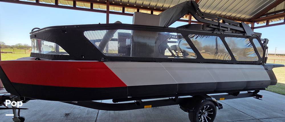 Its lightweight Polytec tri-hull design allows it to sit stable at rest but lean aggressively into turns, providing a sporty, responsive ride that traditional aluminum pontoons simply cannot match.