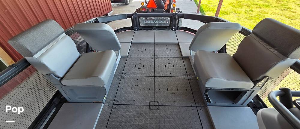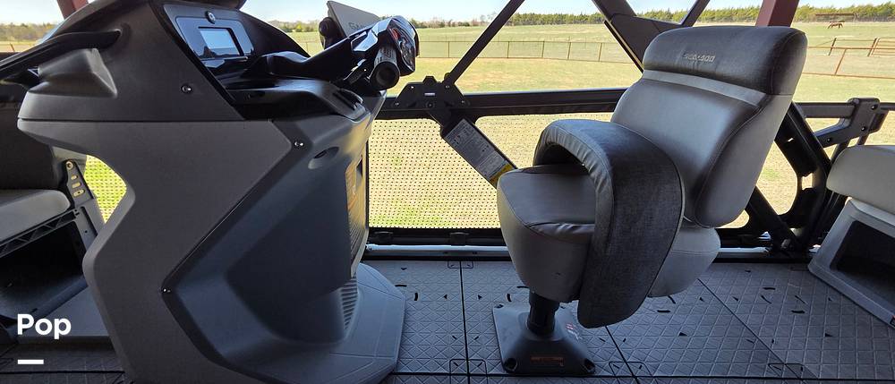 The interior features sun pads with backrests for premium comfort, clear-view side panels for a modern aesthetic, and a high-tech Garmin GPS system to guide your adventures.
