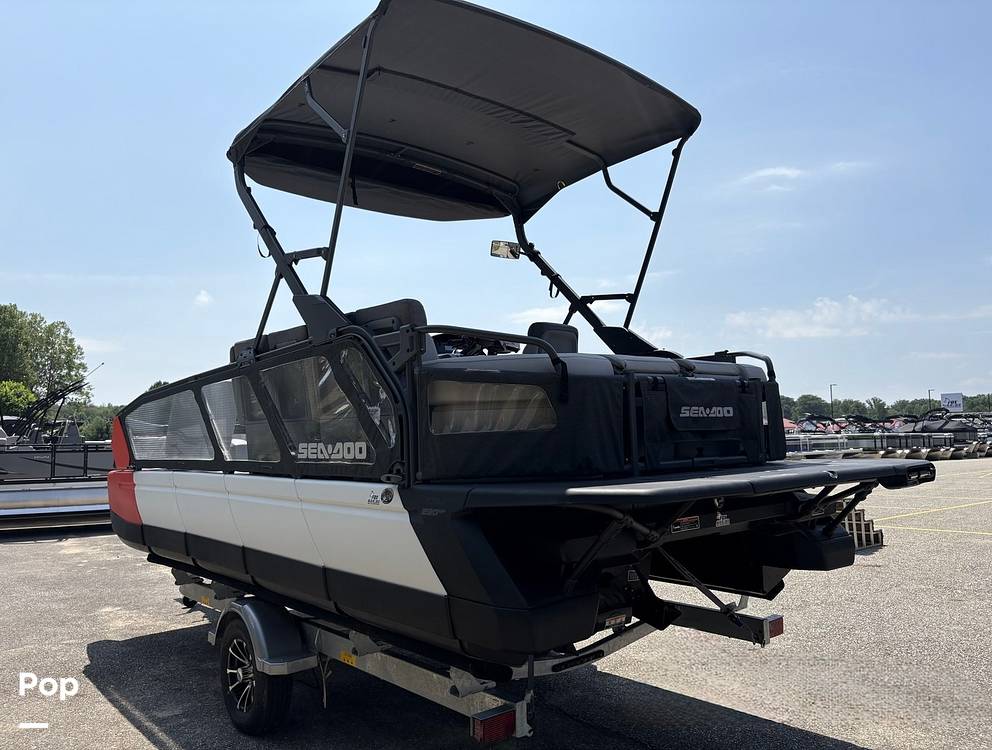 The 2024 Sea-Doo Switch Sport 21 is a high-energy watersports machine that completely redefines the pontoon category by blending the thrill of a personal watercraft with the social space of a deck boat.