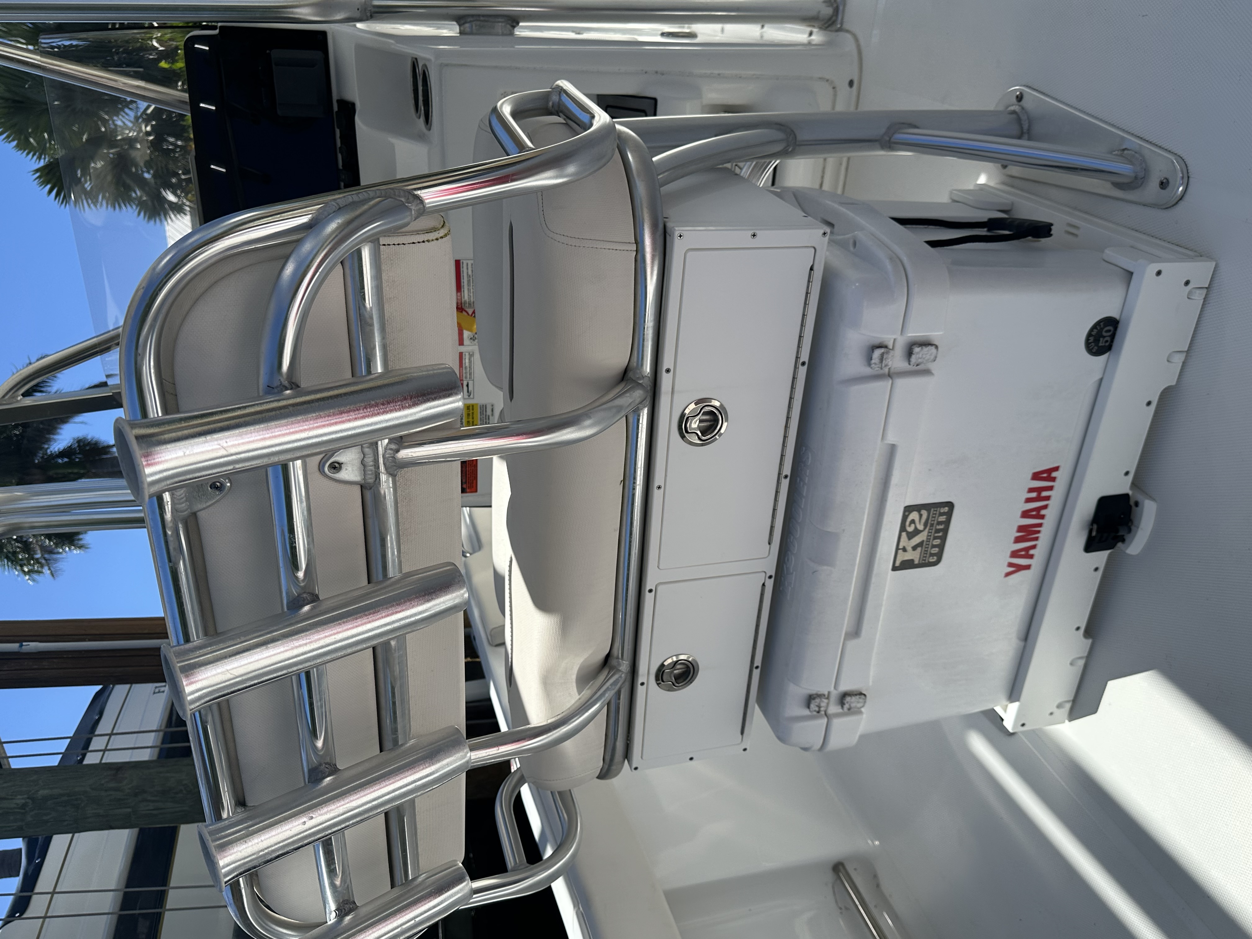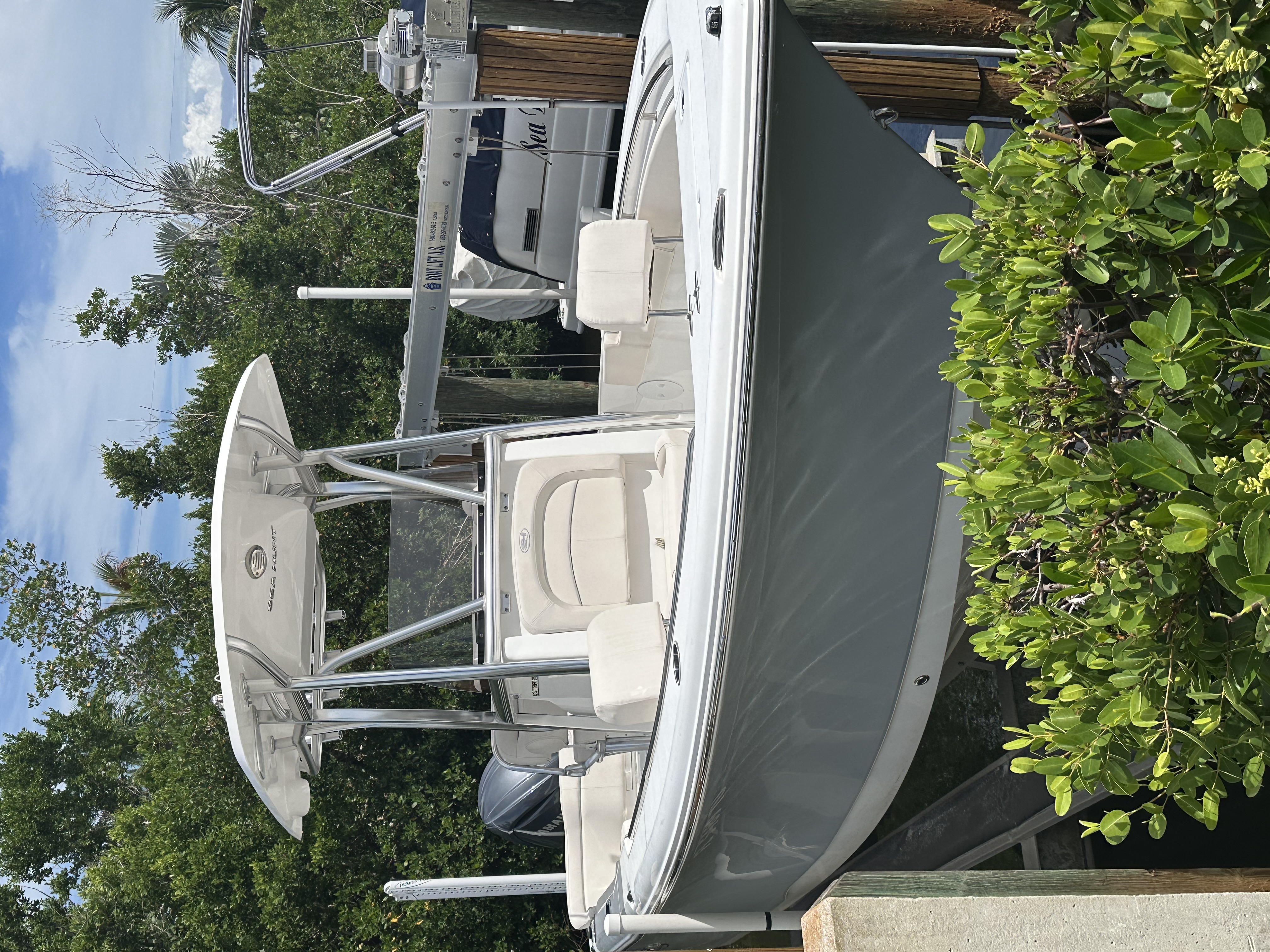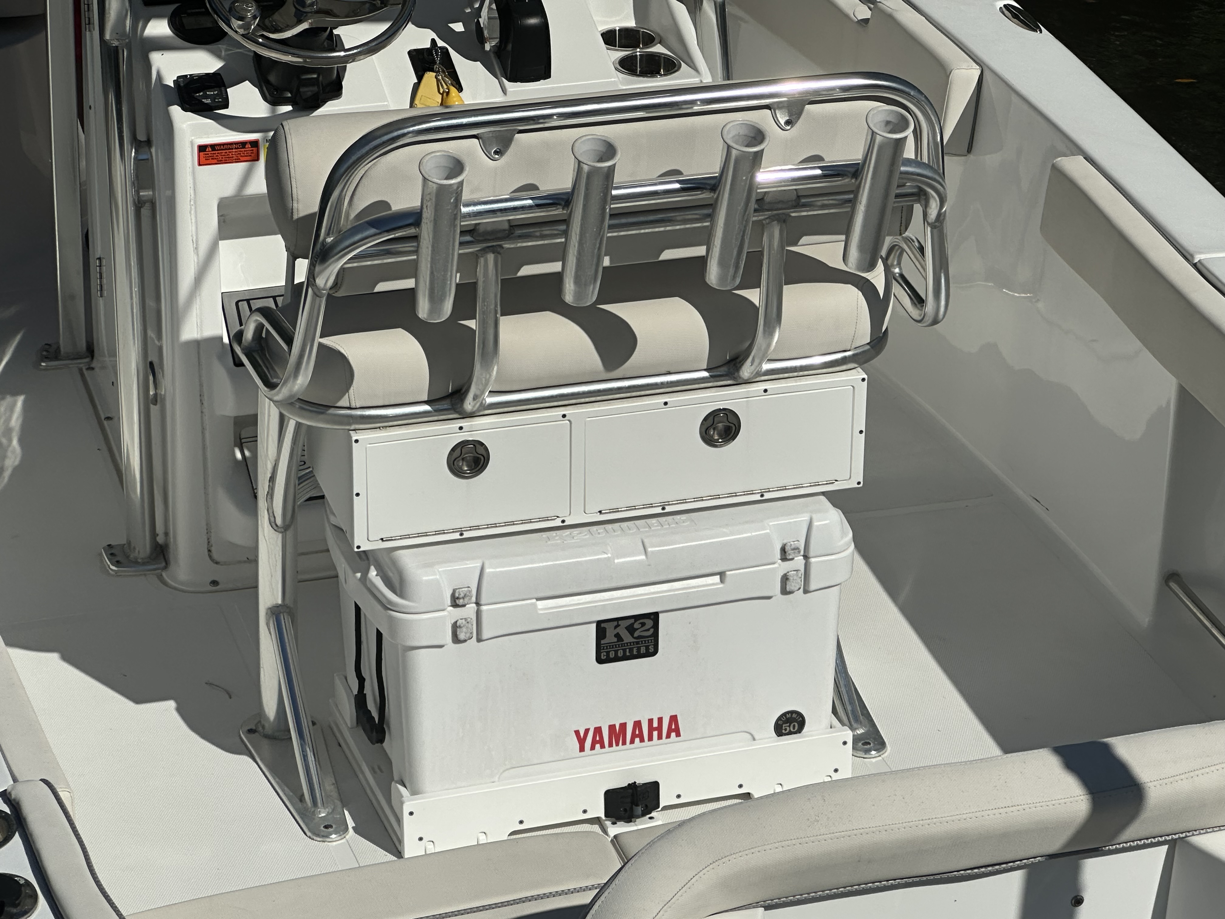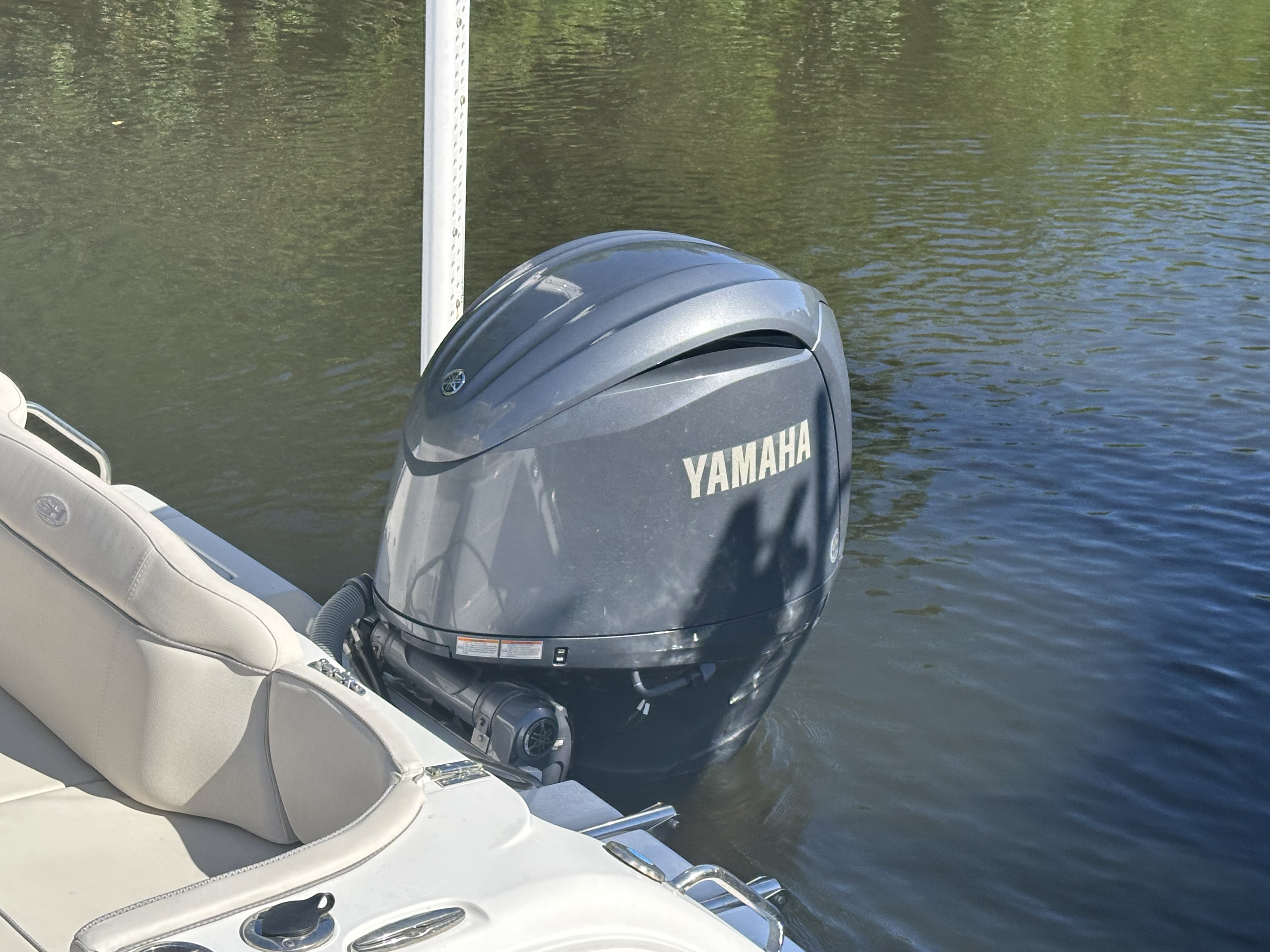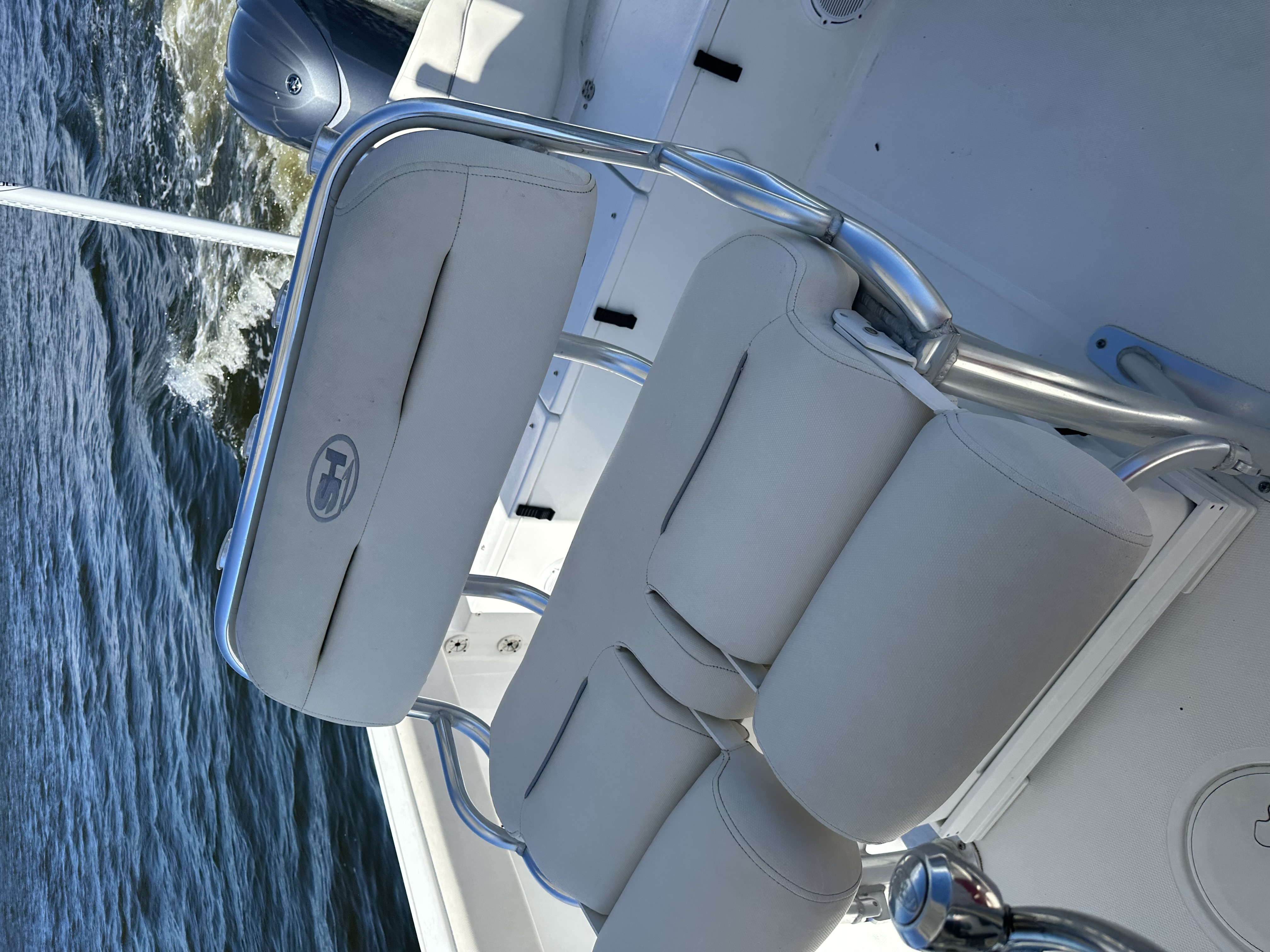 2024 Sea Hunt 239 Ultra Wuth 200 HP Yamaha 12 Garmin Touch Screen VHF Radio 20 Foot Power Pole Fiberglass T Top with Misters Spreader Lights Extended Warranty Blue /Grey Colored Hull Only 87 Hours Just serviced