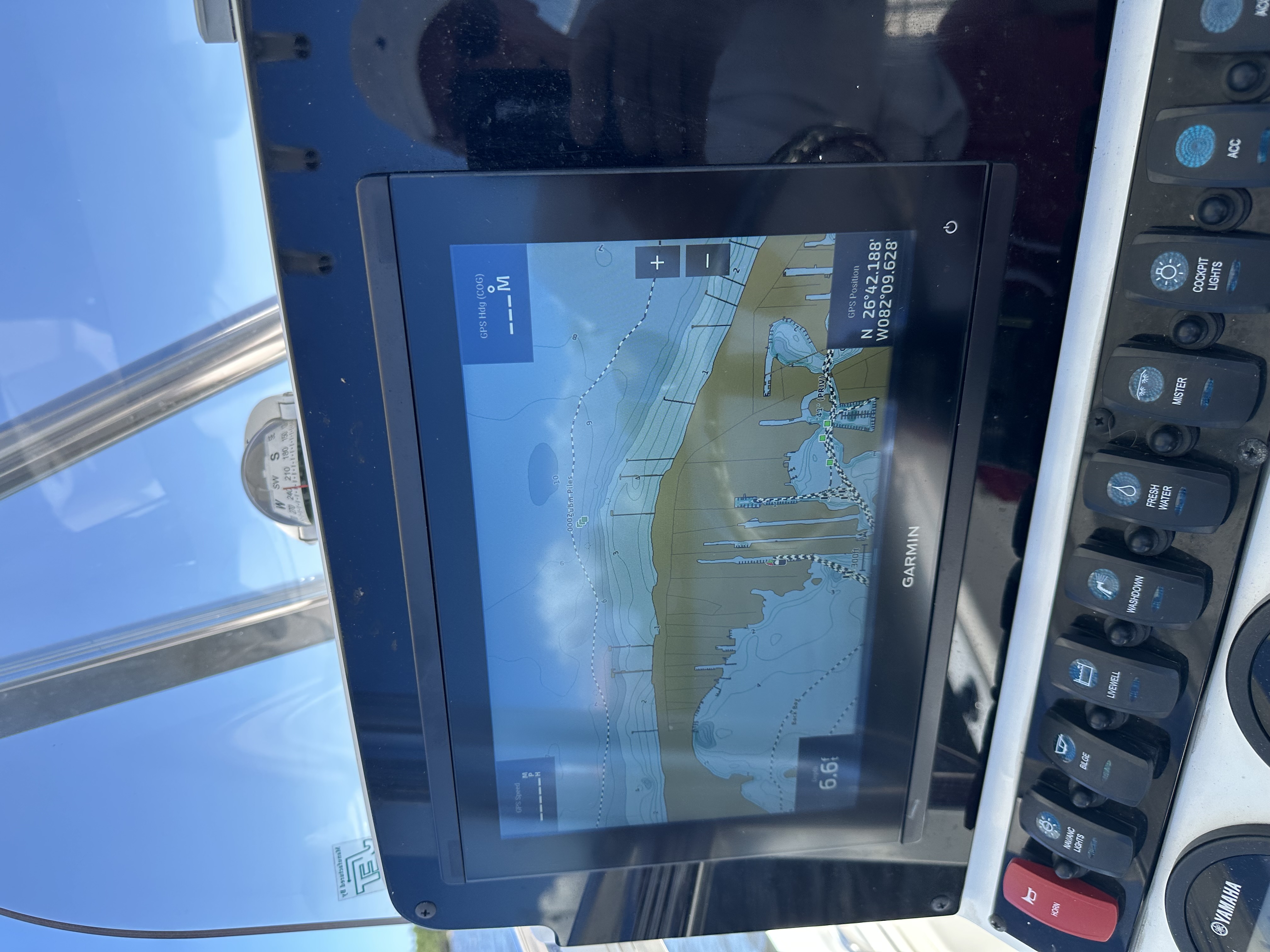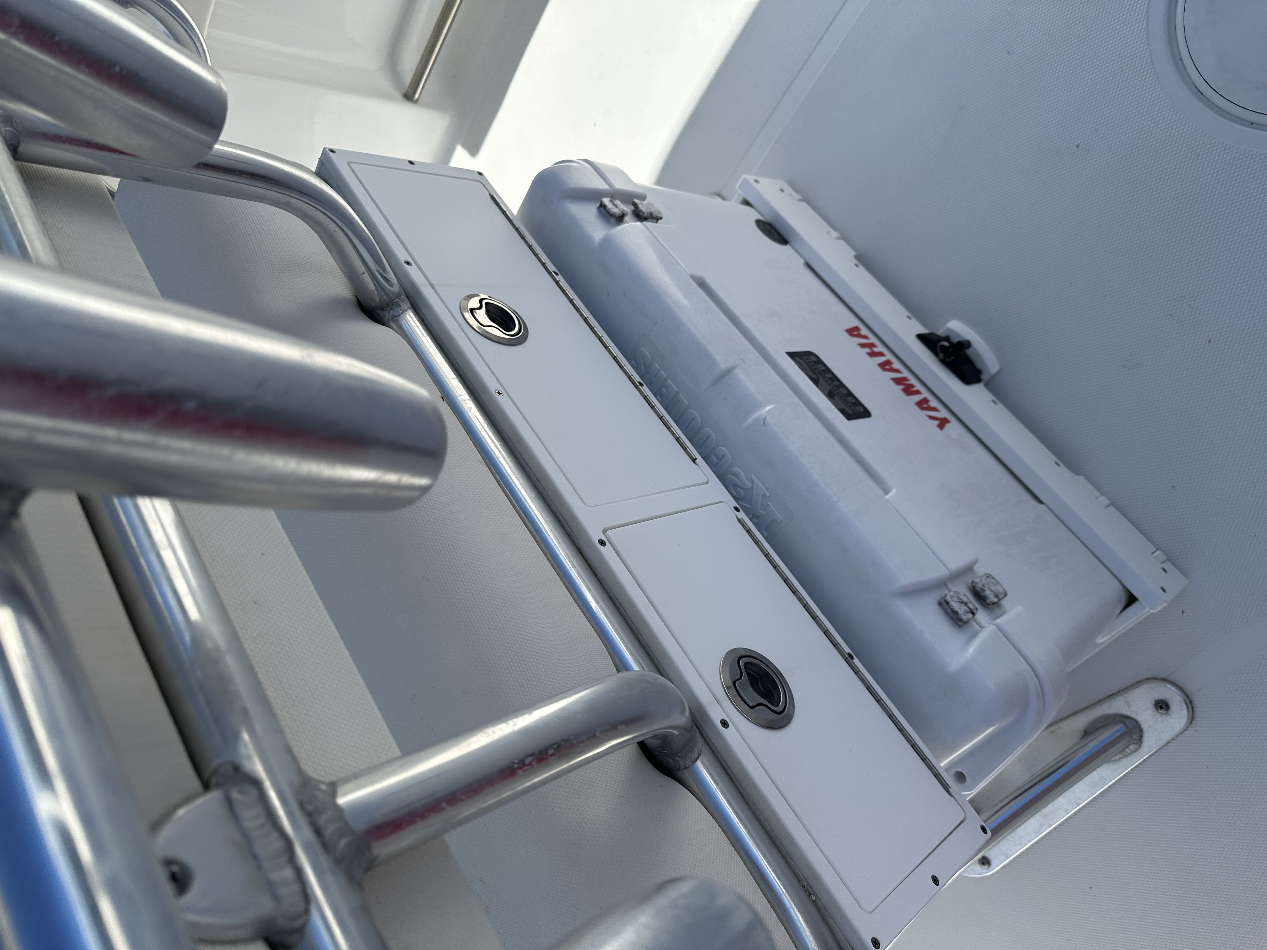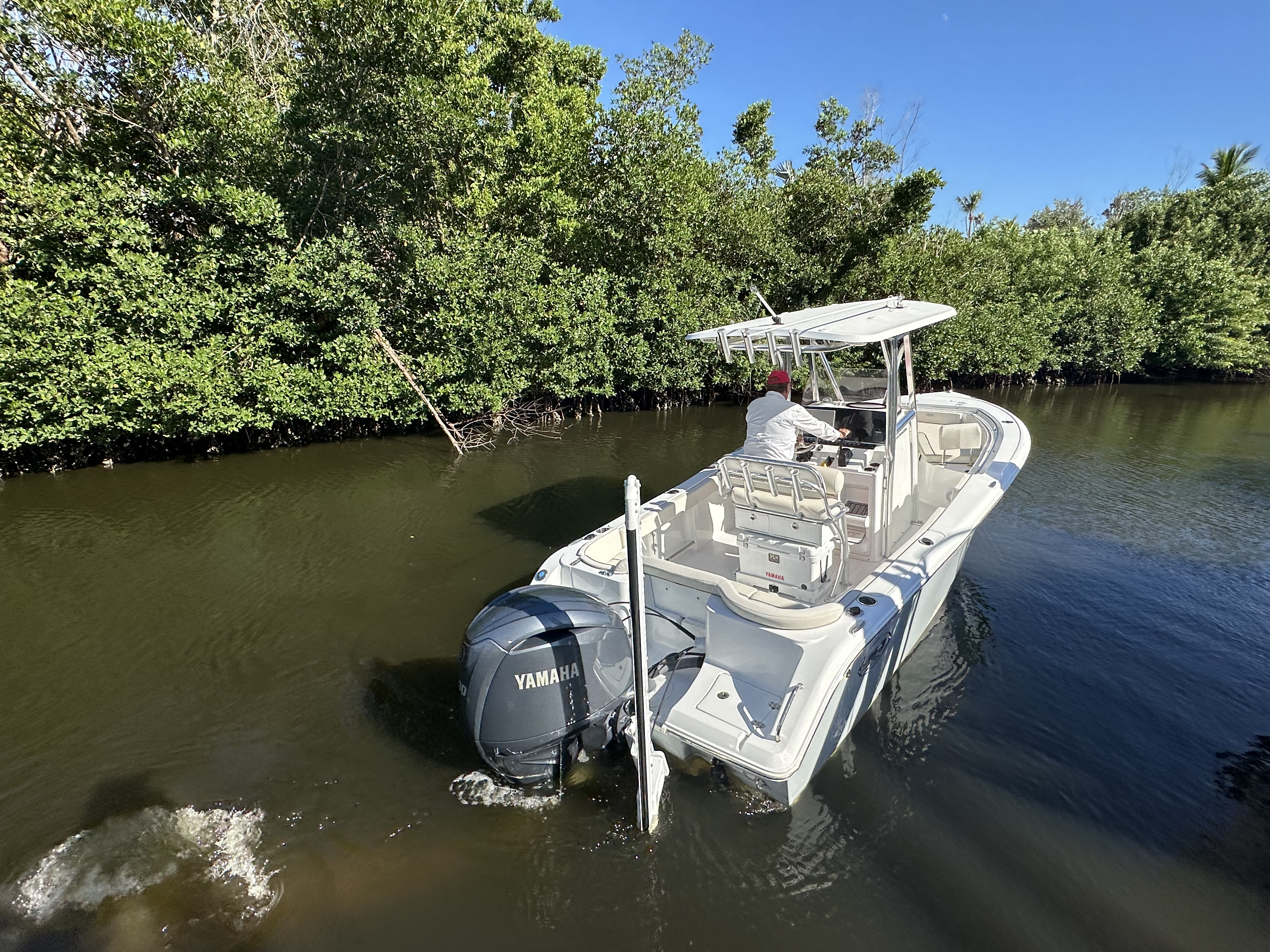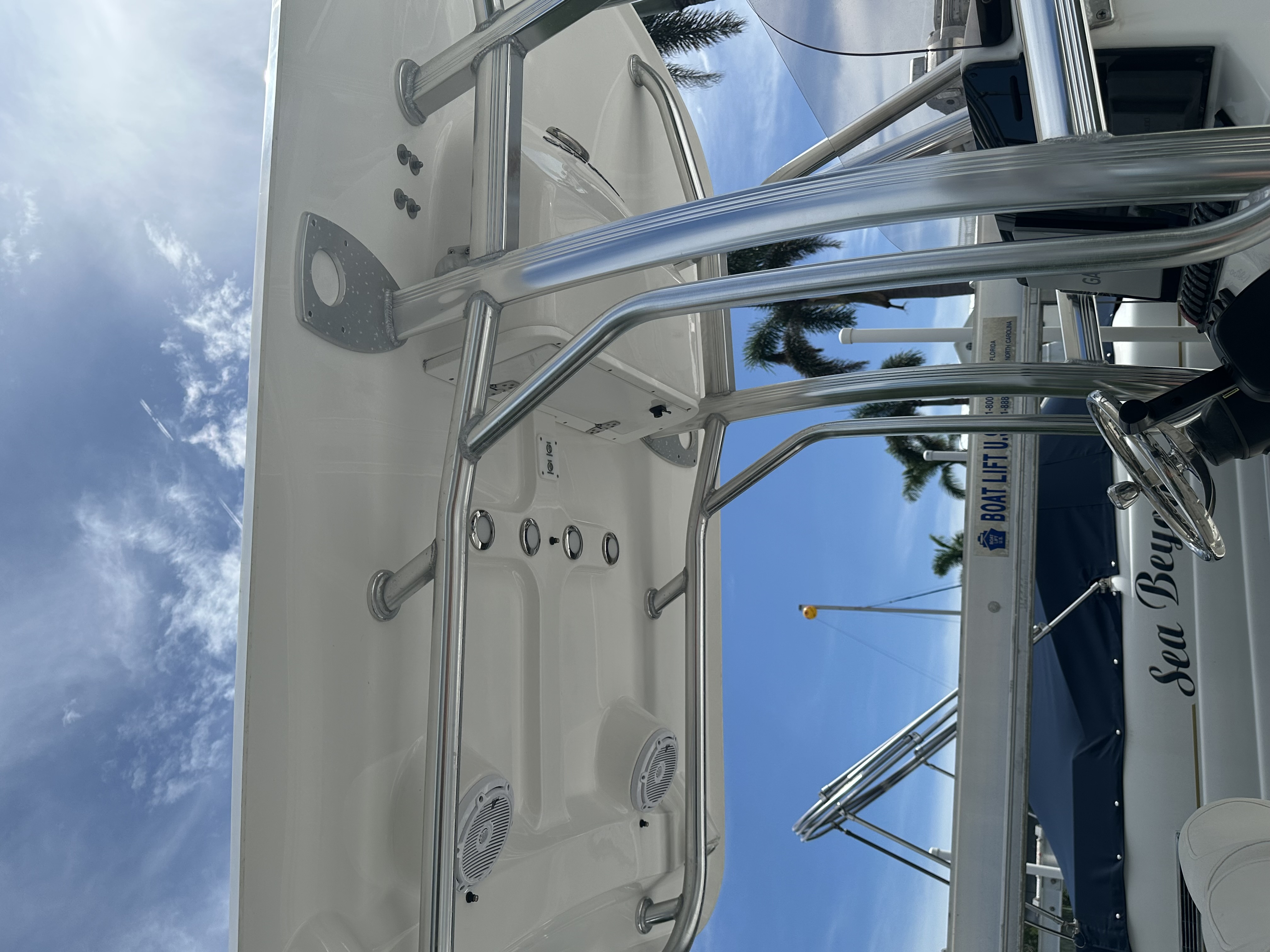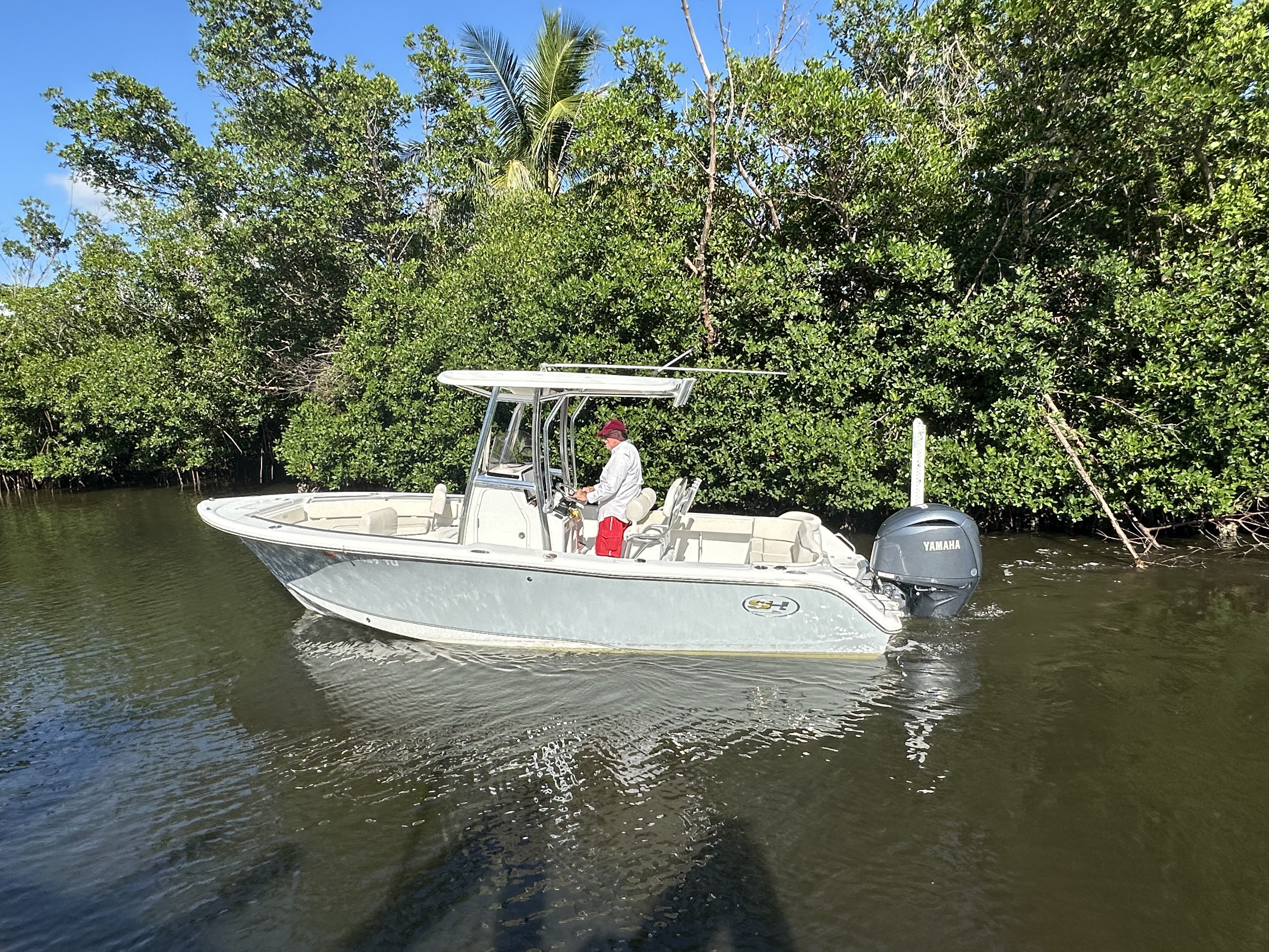 2024 Sea Hunt 239 Ultra Wuth 200 HP Yamaha 12 Garmin Touch Screen VHF Radio 20 Foot Power Pole Fiberglass T Top with Misters Spreader Lights Extended Warranty Blue /Grey Colored Hull Only 87 Hours Just serviced