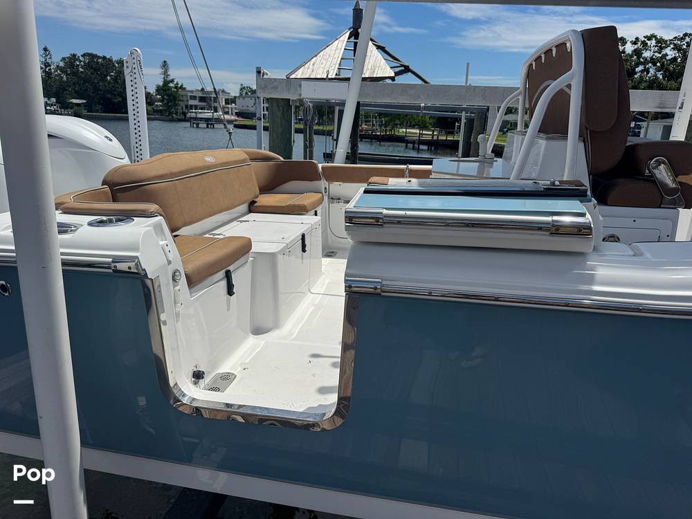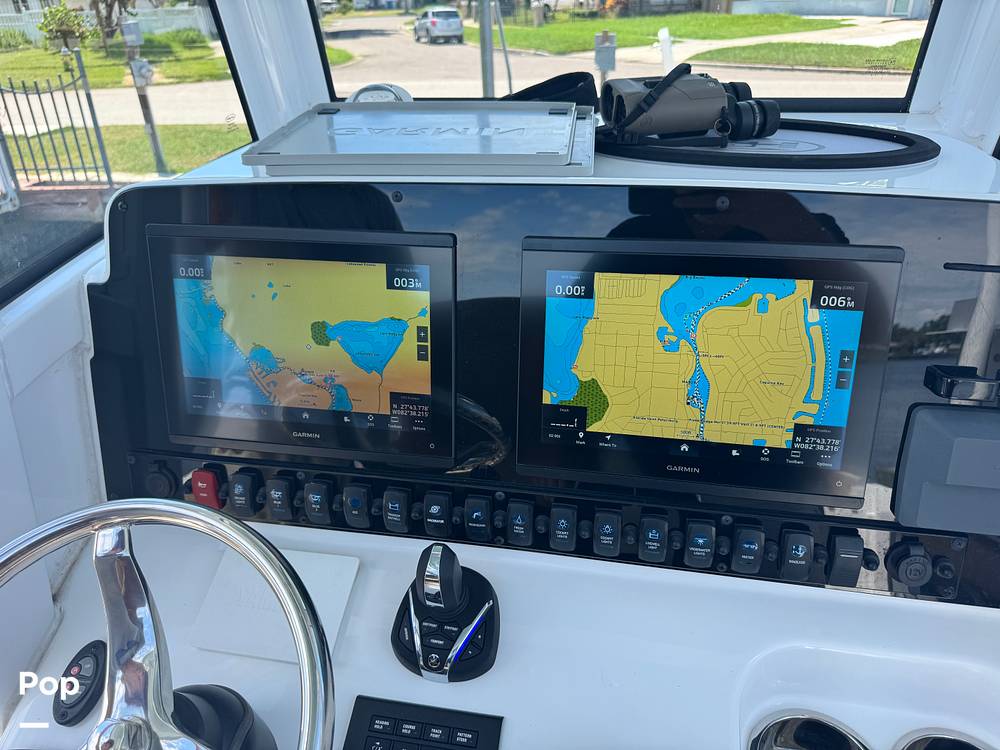 The seller added some key features such as the Joystick control, Auto-Pilot, and Cruise assist (TrackPoint Active Captain). She also has a windlass and a power pole with remote controls and misters in the cockpit to keep you cool on those hot summer days!